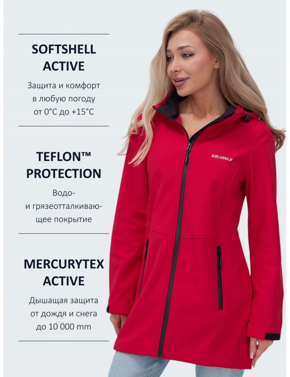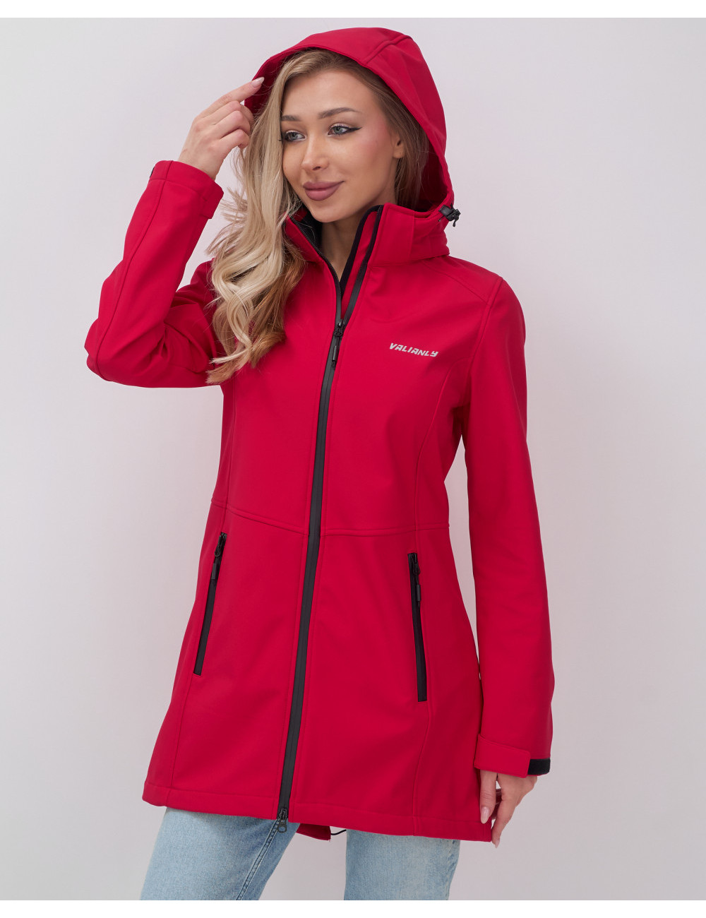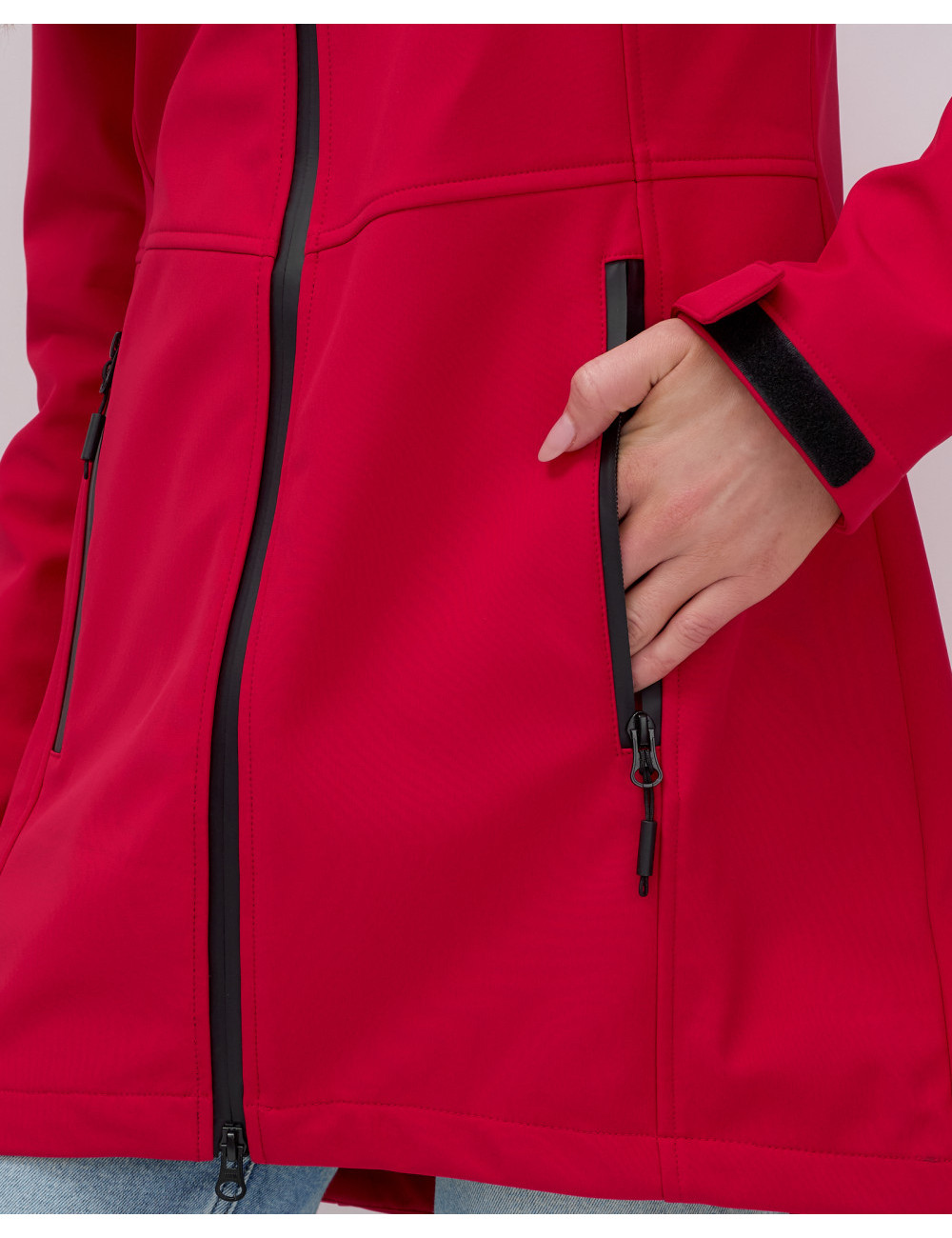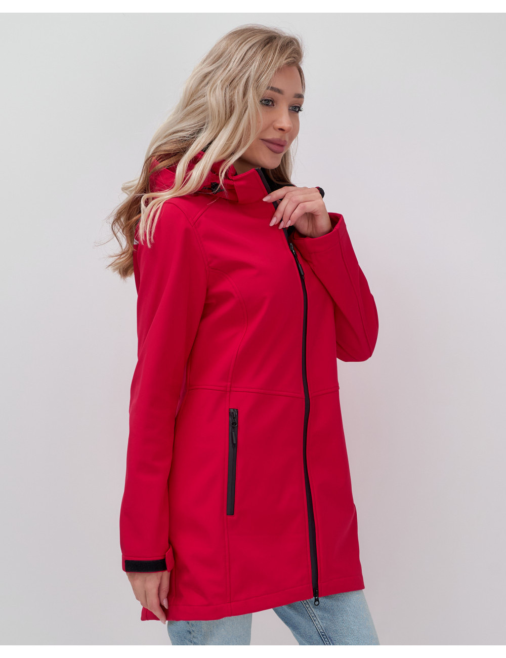 Доставка Женская спортивная парка с капюшоном softshell, красная, для активного отдыха по Тюмени и Тюменской области СДЭК