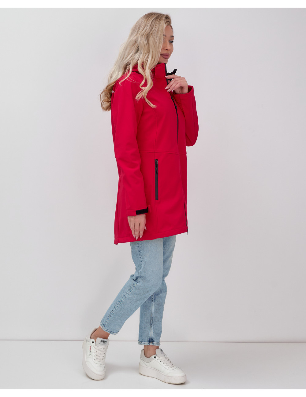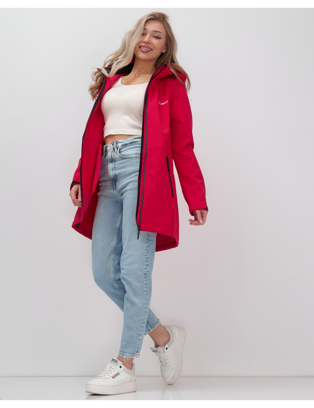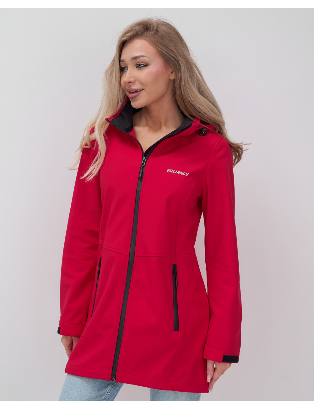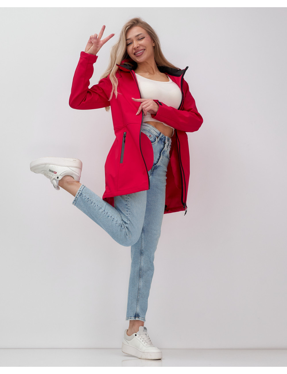 Доставка Женская спортивная парка с капюшоном softshell, красная, для активного отдыха по Тюмени и Тюменской области СДЭК