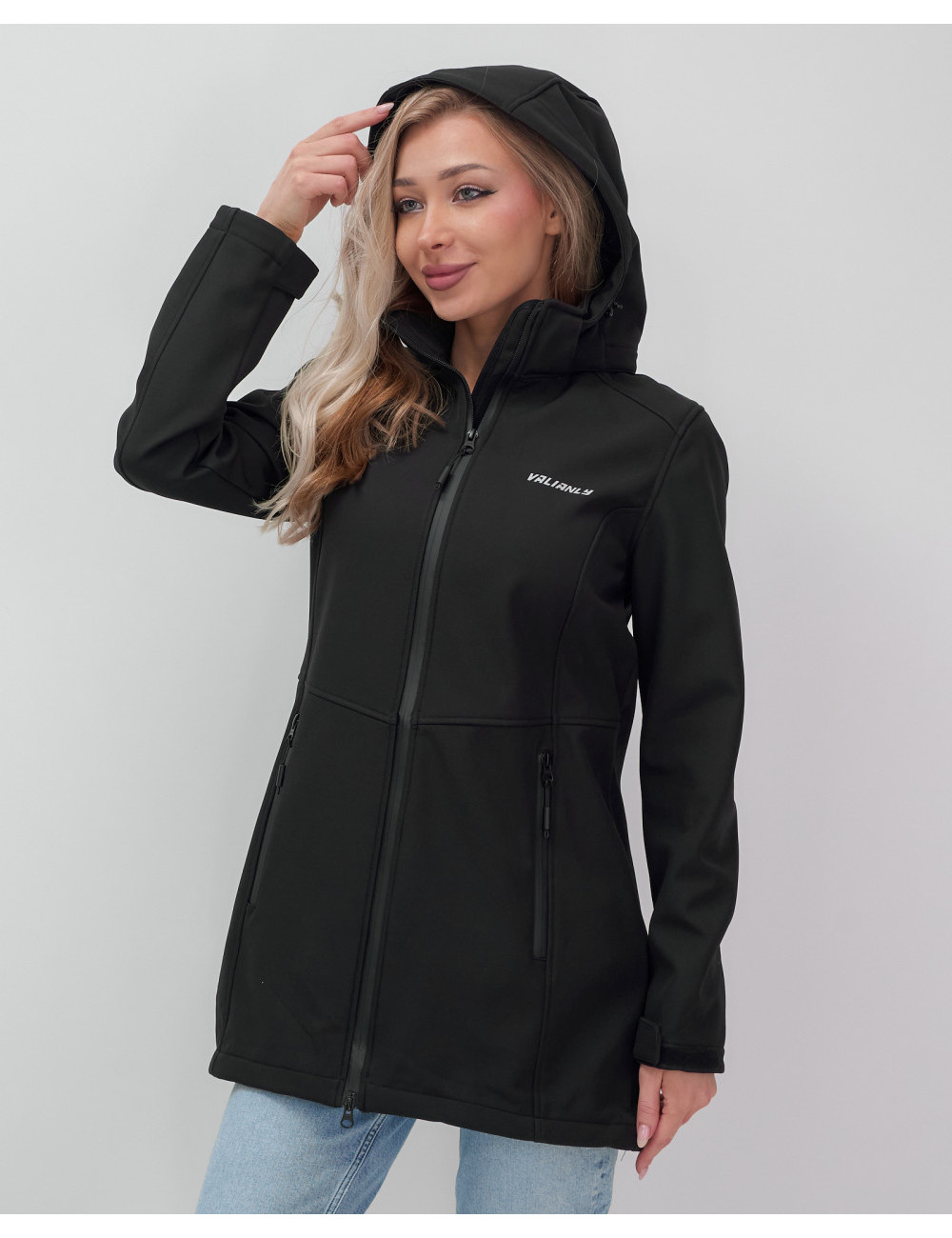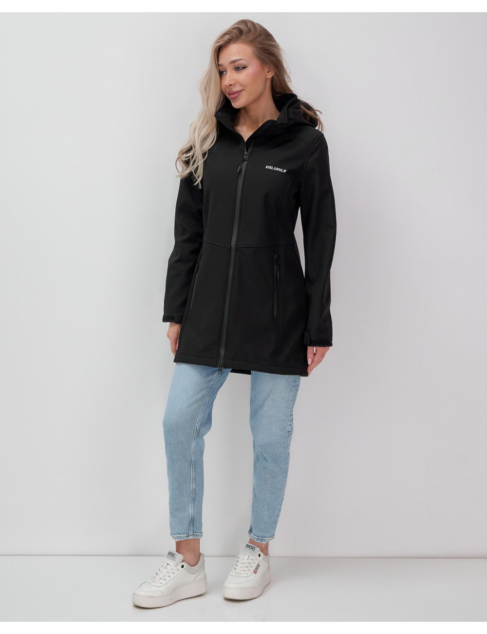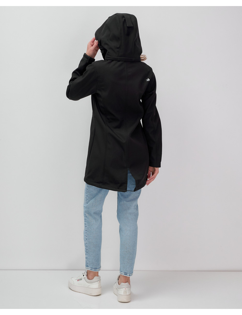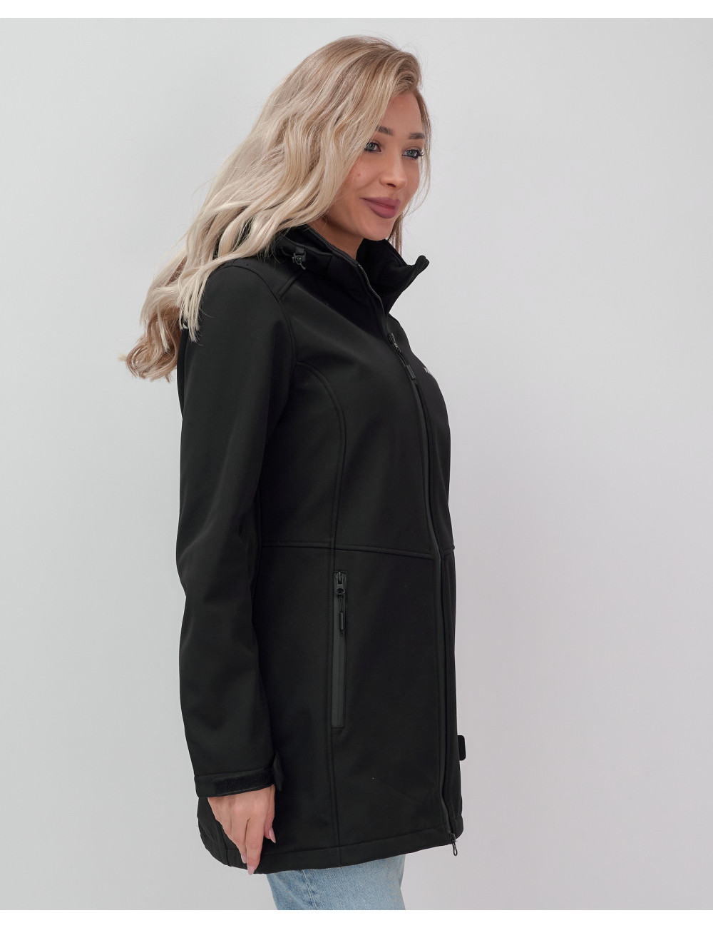 Доставка Женская спортивная парка с капюшоном softshell, чёрная, для активного отдыха по Тюмени и Тюменской области СДЭК