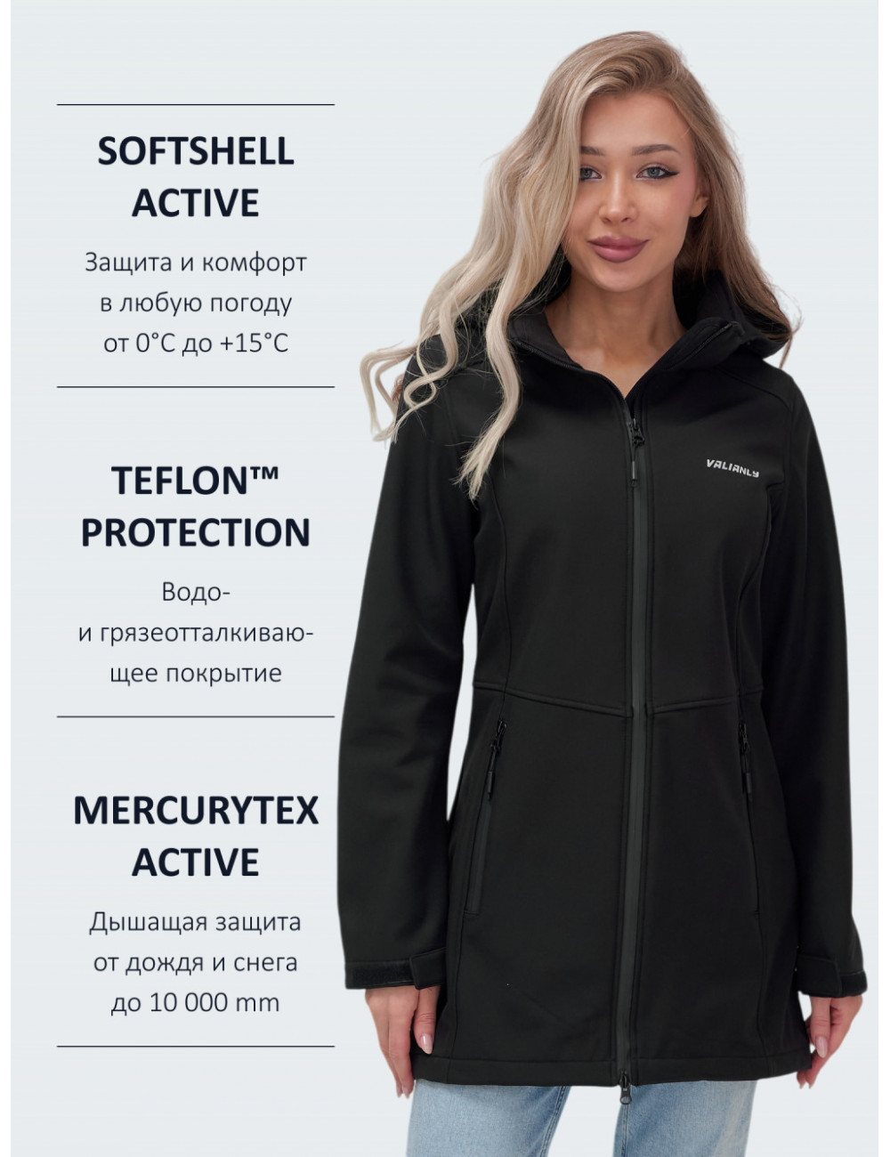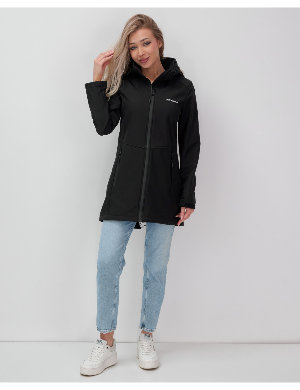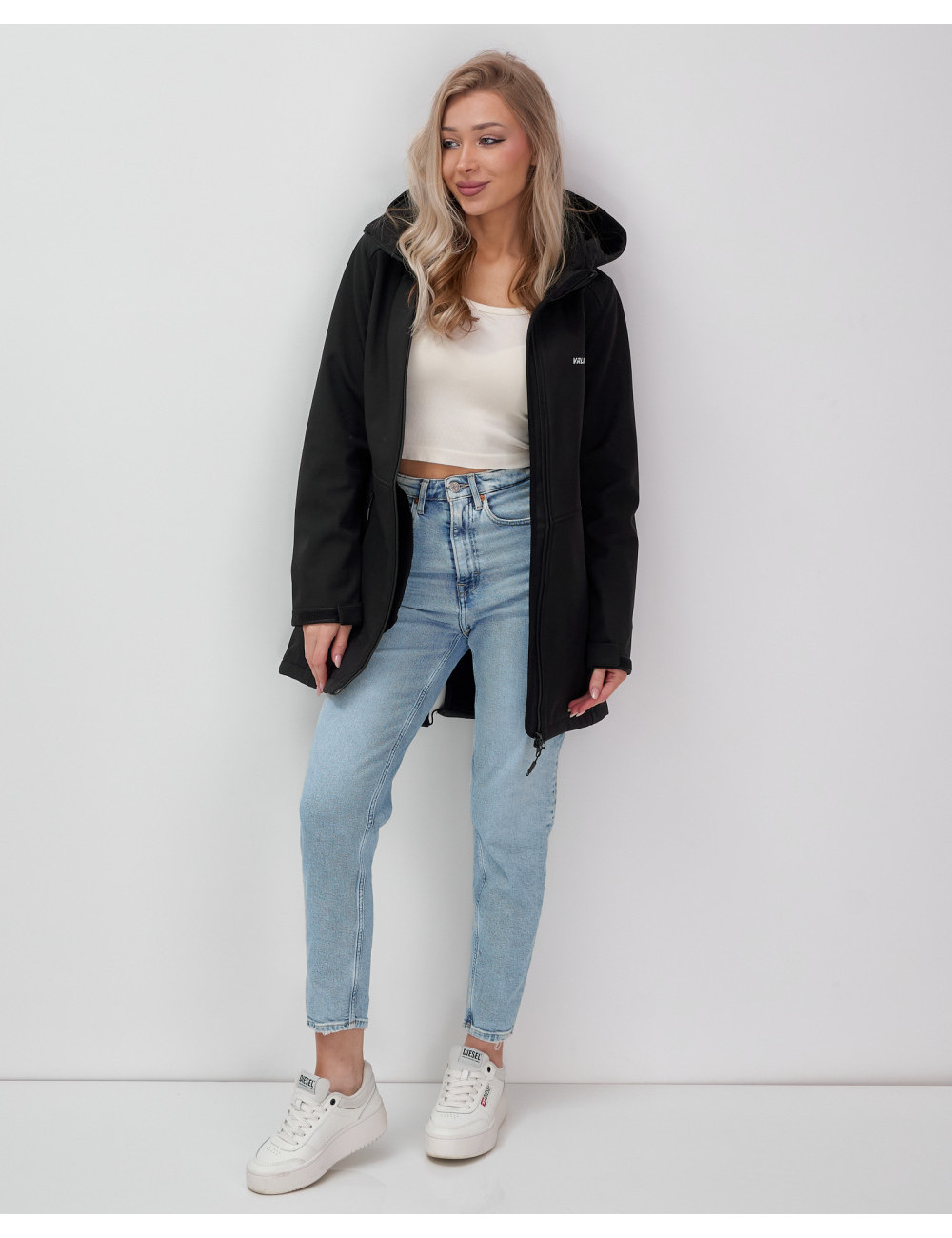 Доставка Женская спортивная парка с капюшоном softshell, чёрная, для активного отдыха по Тюмени и Тюменской области СДЭК