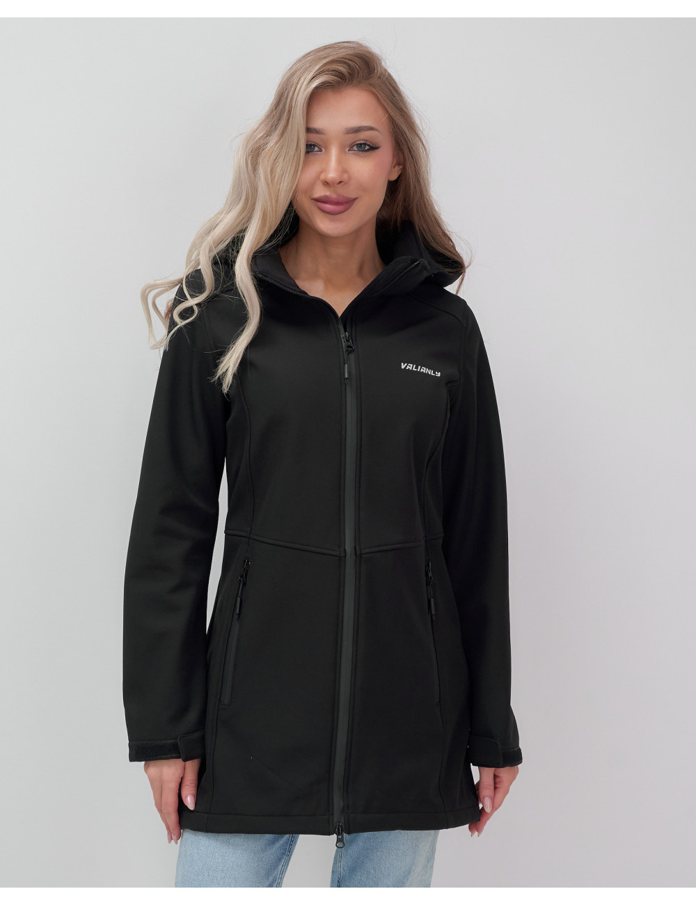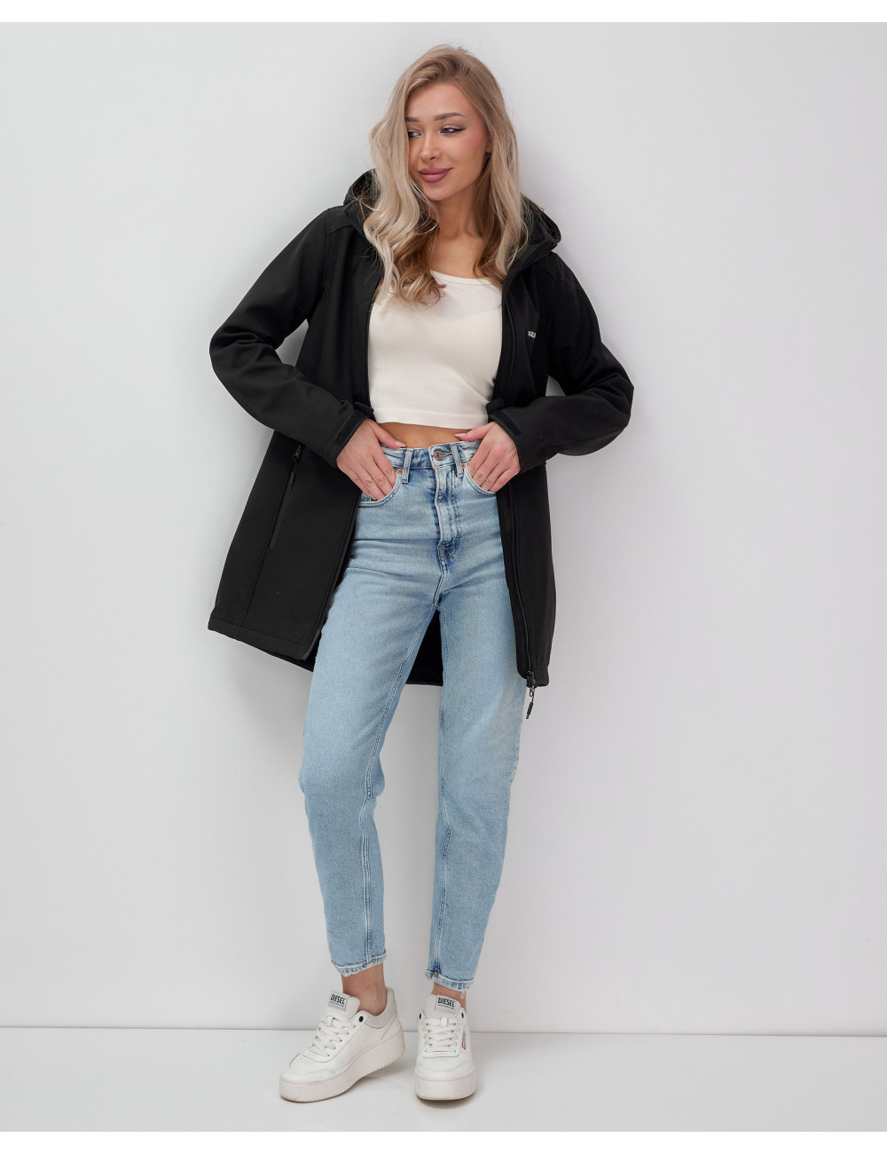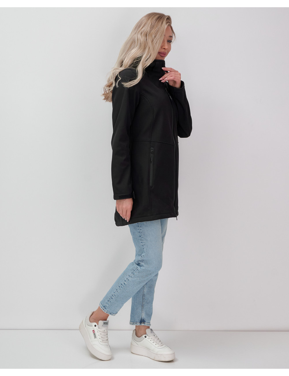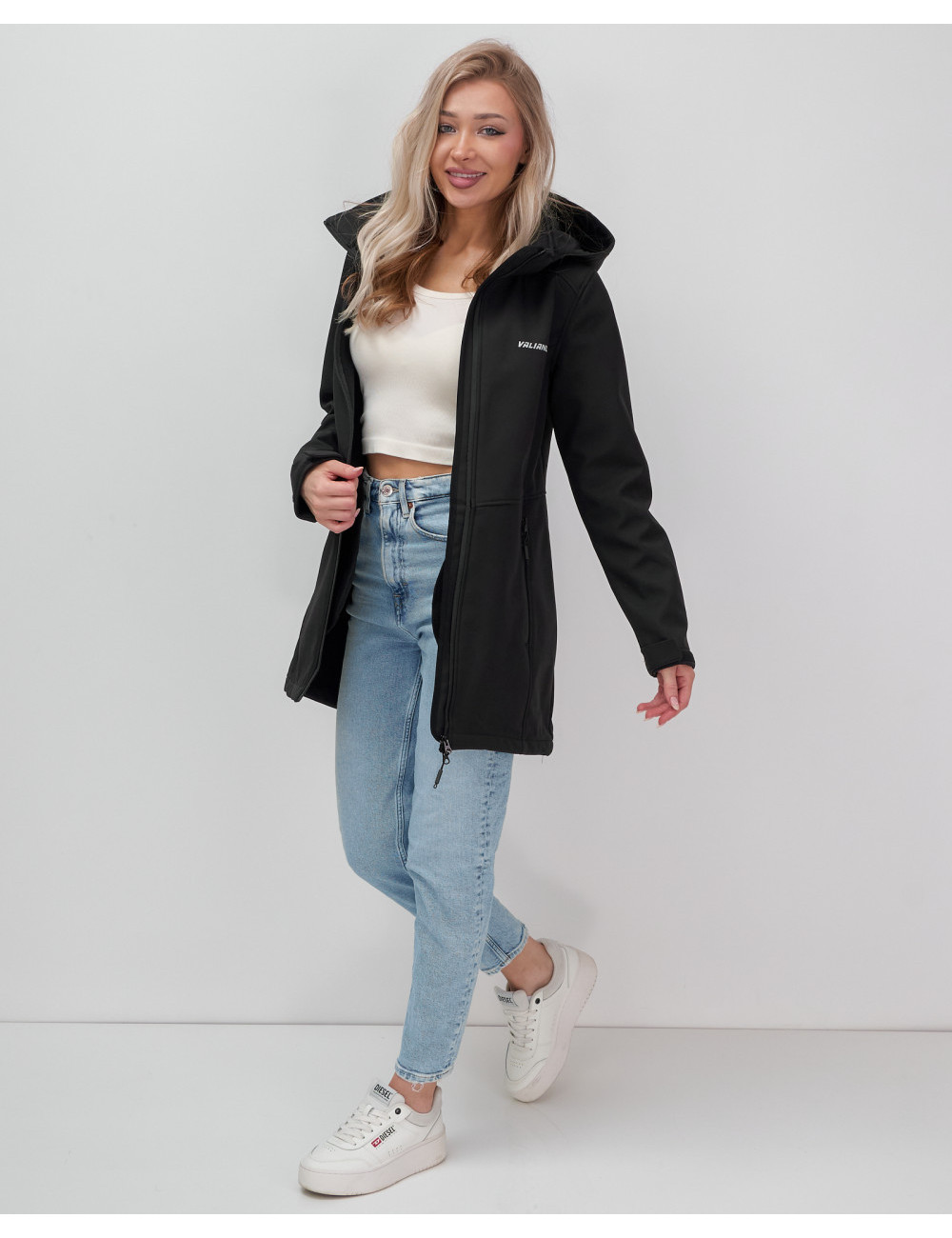 Доставка Женская спортивная парка с капюшоном softshell, чёрная, для активного отдыха по Тюмени и Тюменской области СДЭК