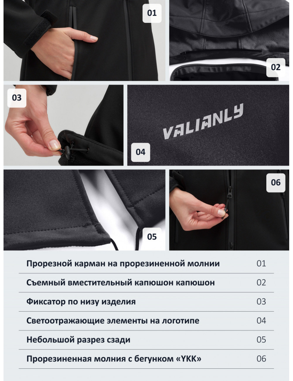 - Хлястик на капюшоне добавляет стиль и функциональность.
