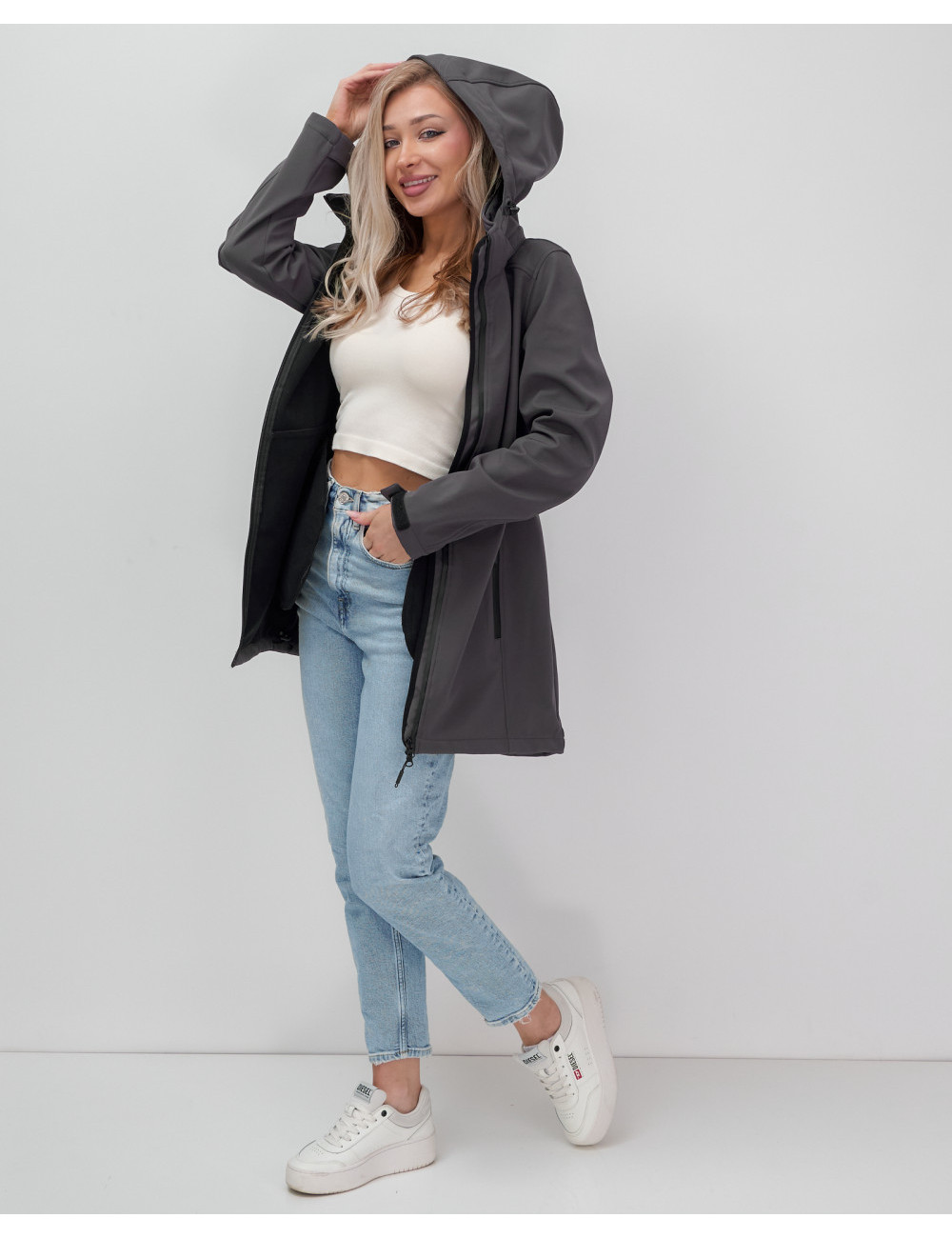 Купите спортивную женскую парку и ощутите комфорт и стиль каждый день! Доставка по Москве и Московской области Женская спортивная парка с капюшоном softshell тёмно-серого цвета