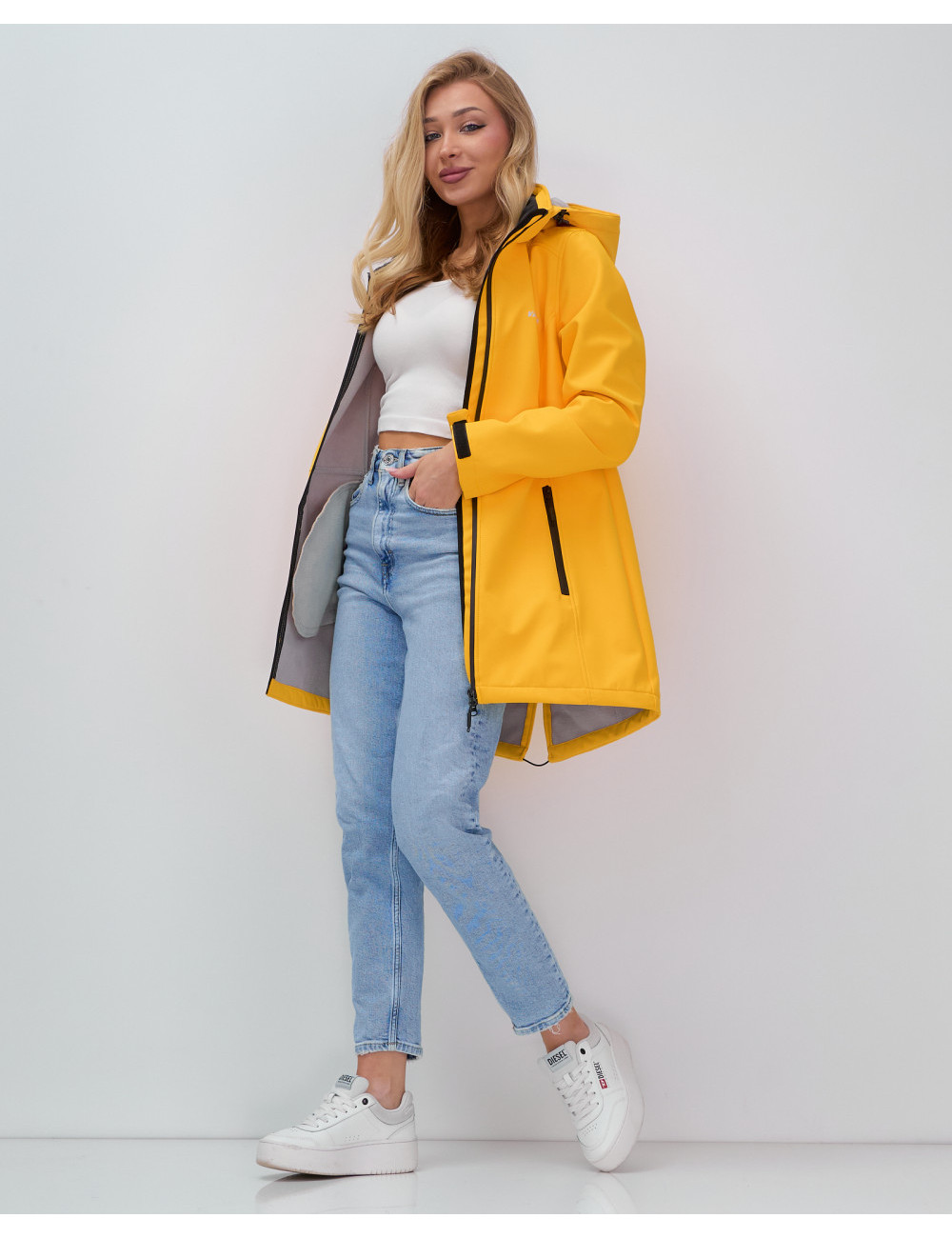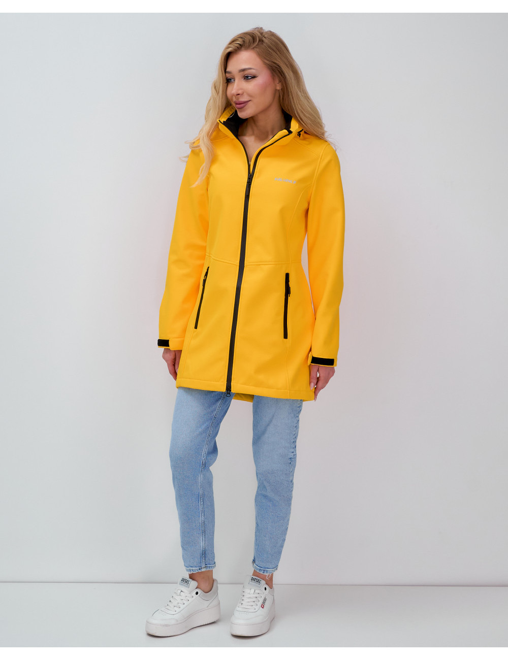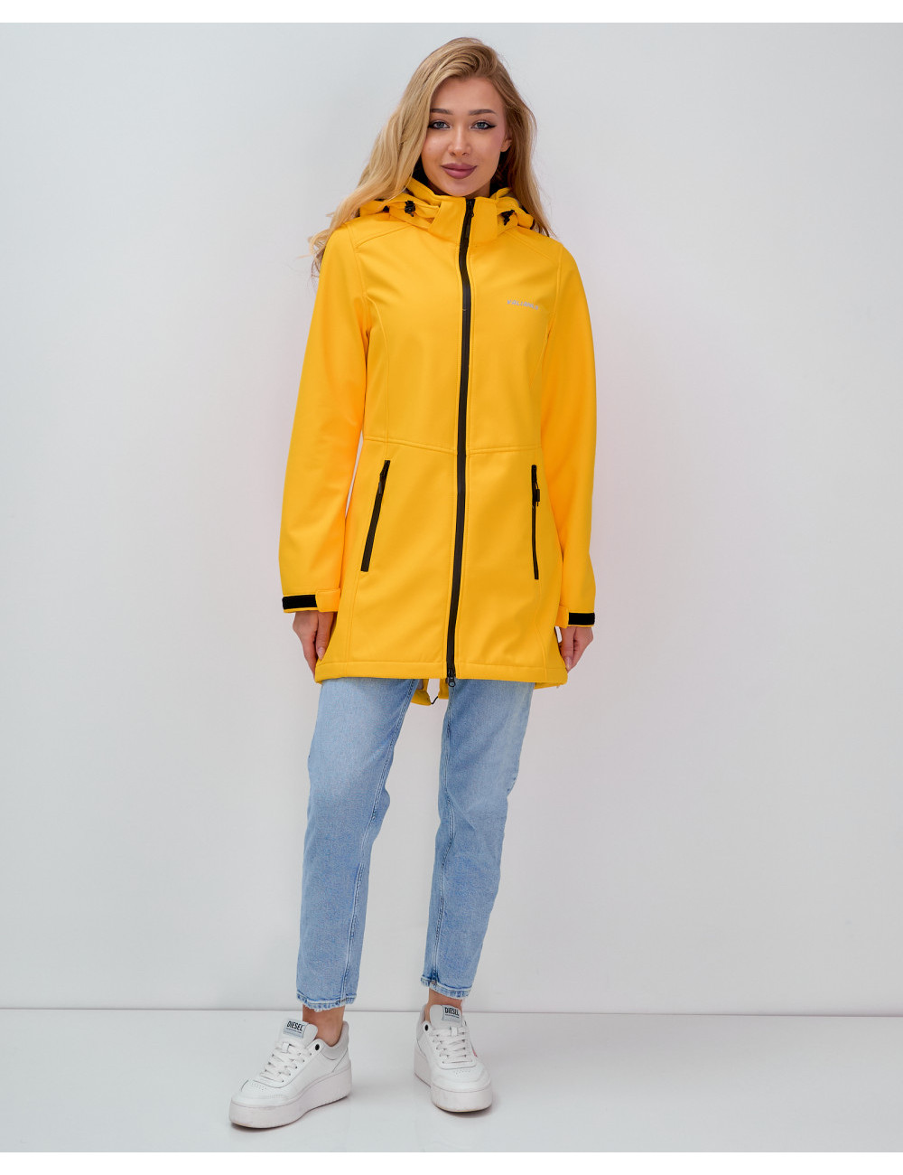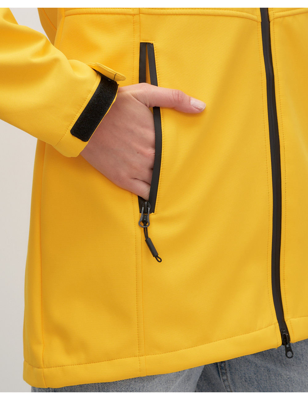 Доставка Женская спортивная парка с капюшоном softshell, жёлтая, для активного отдыха по Тюмени и Тюменской области СДЭК