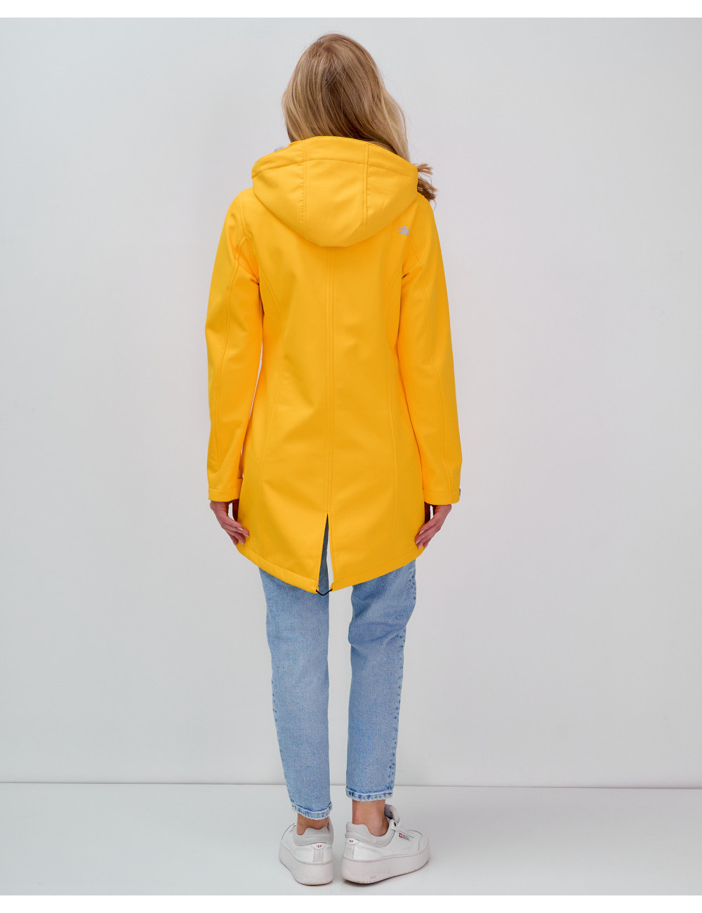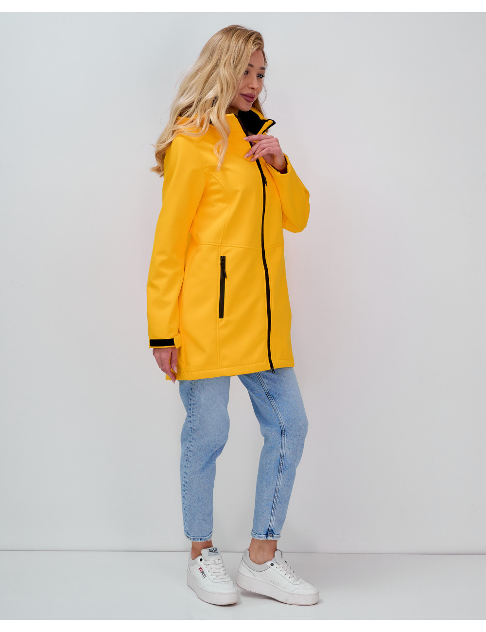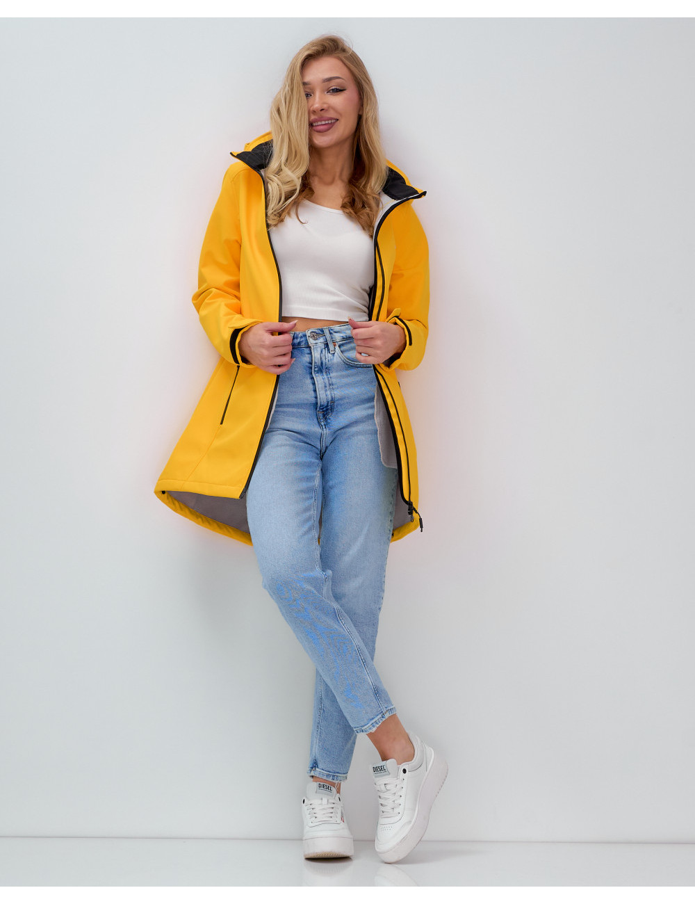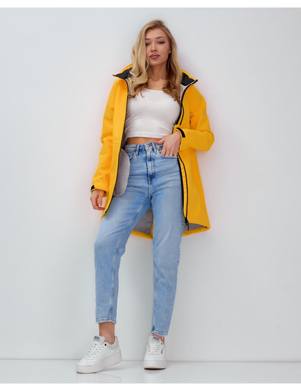 Доставка Женская спортивная парка с капюшоном softshell, жёлтая, для активного отдыха по Тюмени и Тюменской области СДЭК