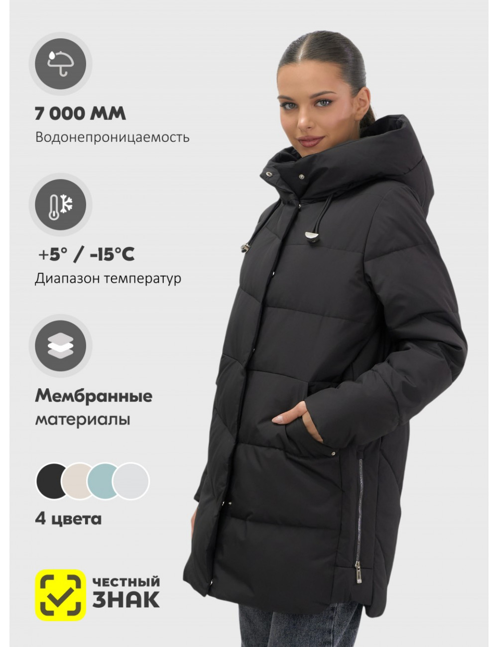 - Дышащая ткань, обеспечивающая комфорт в переменчивую погоду.