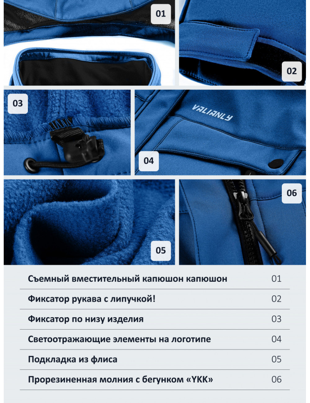 - Softshell с мембранными компонентами, полиэстером и тефлоновым покрытием (95% полиэстер, 5% спандекс) — лёгкий, эластичный и прочный материал.
