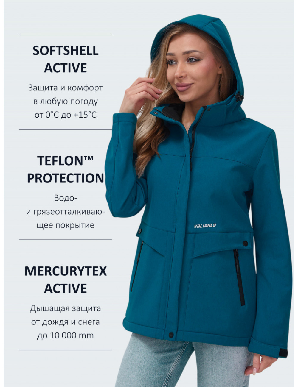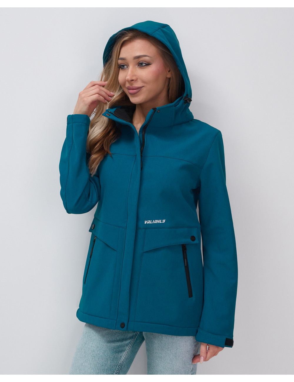 Доставка Женская спортивная ветровка с капюшоном softshell, синяя, для активного отдыха по Тюмени и Тюменской области СДЭК