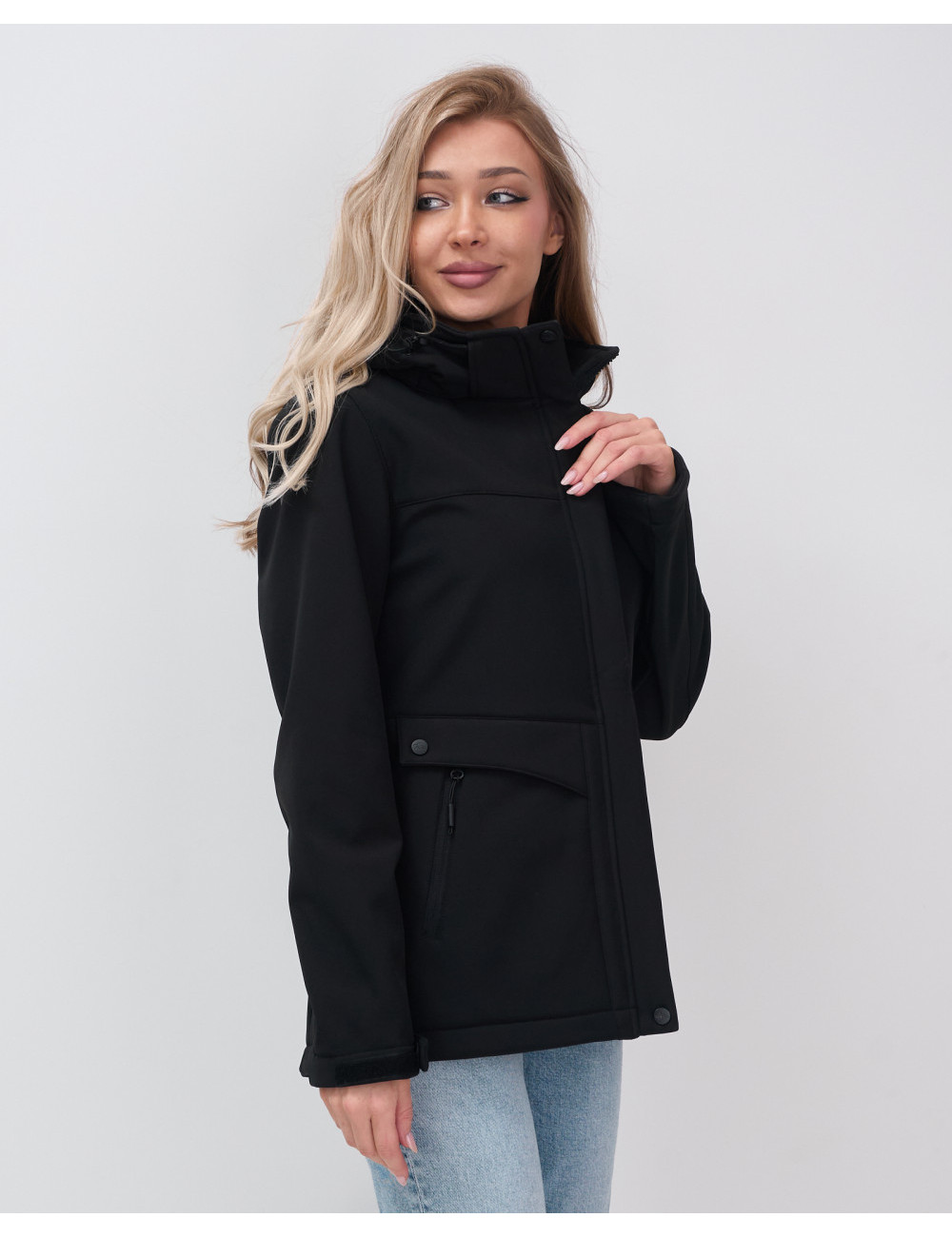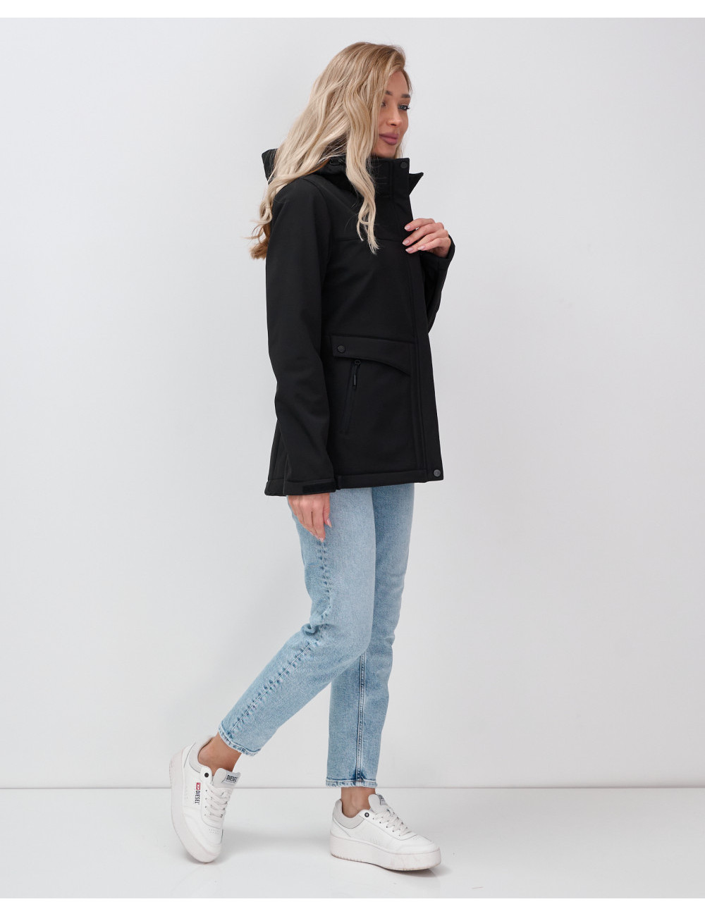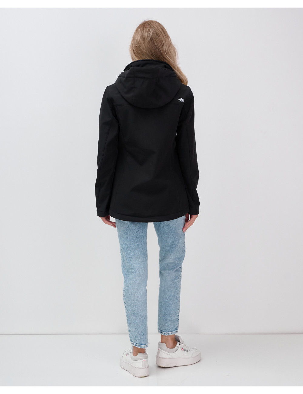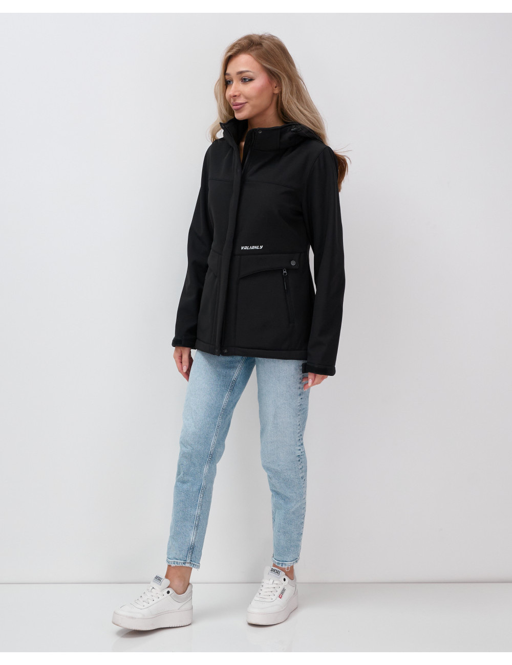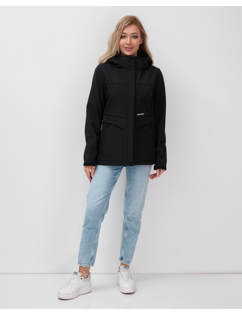 Доставка Женская спортивная ветровка с капюшоном softshell, чёрная, для активного отдыха по Тюмени и Тюменской области СДЭК