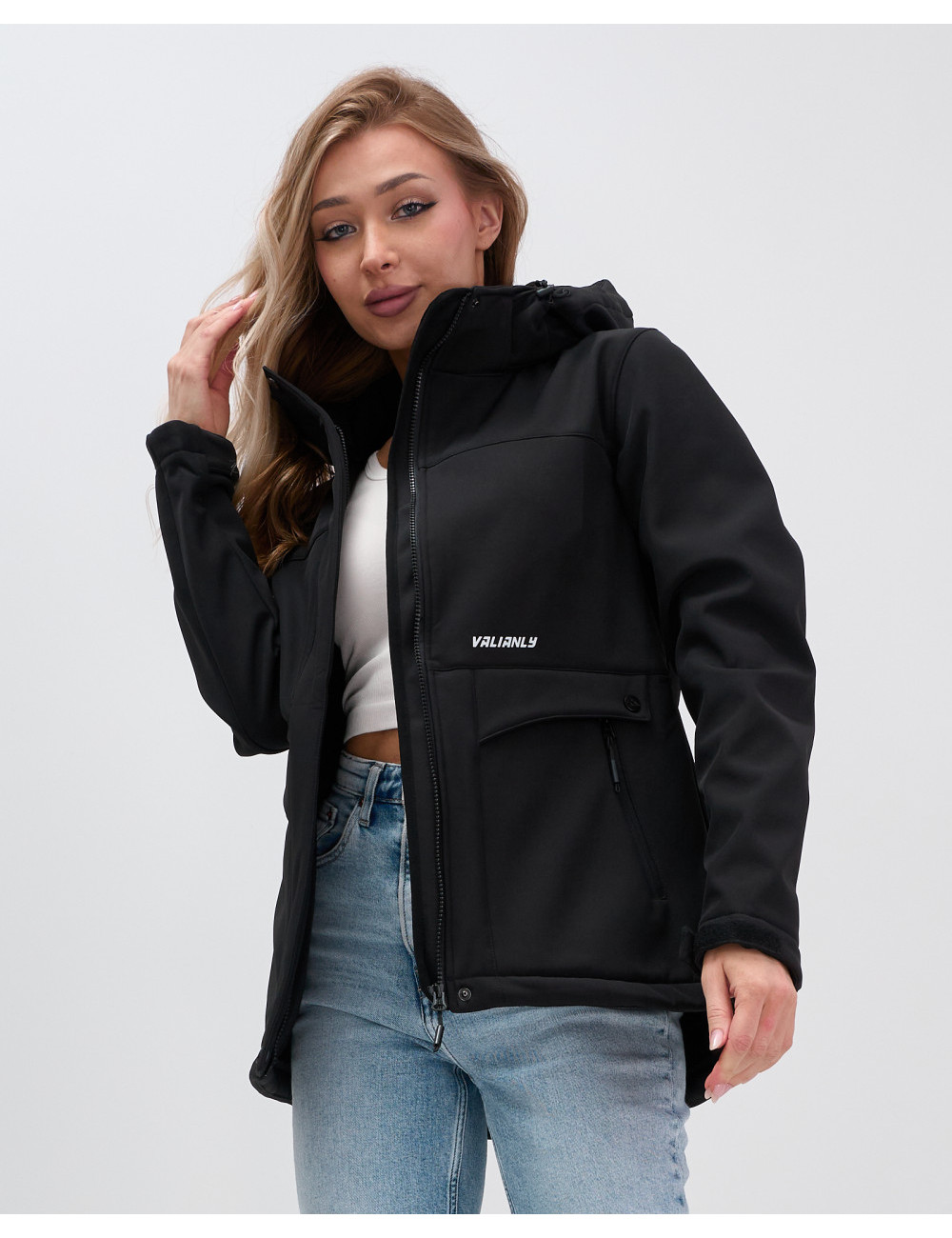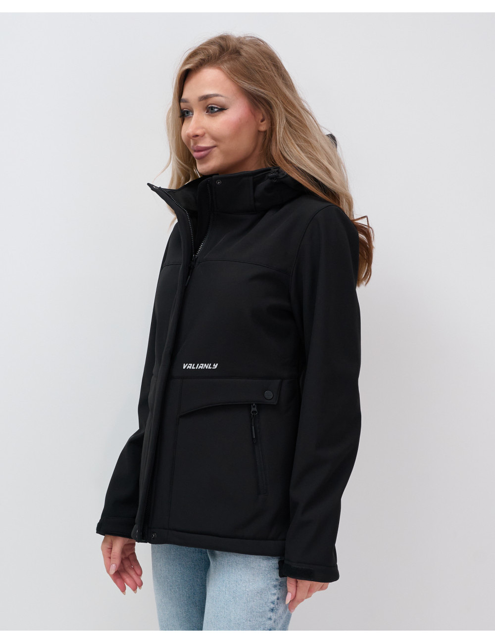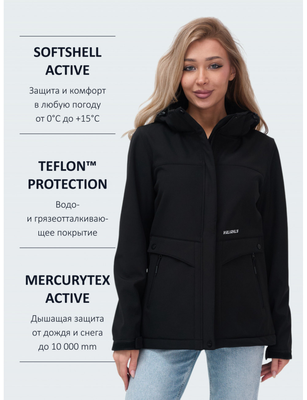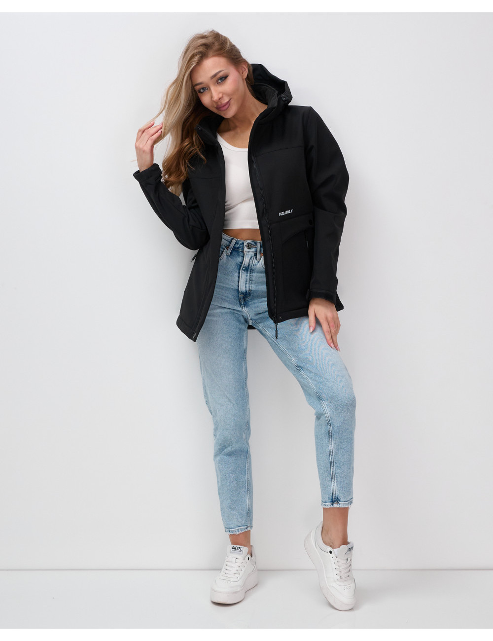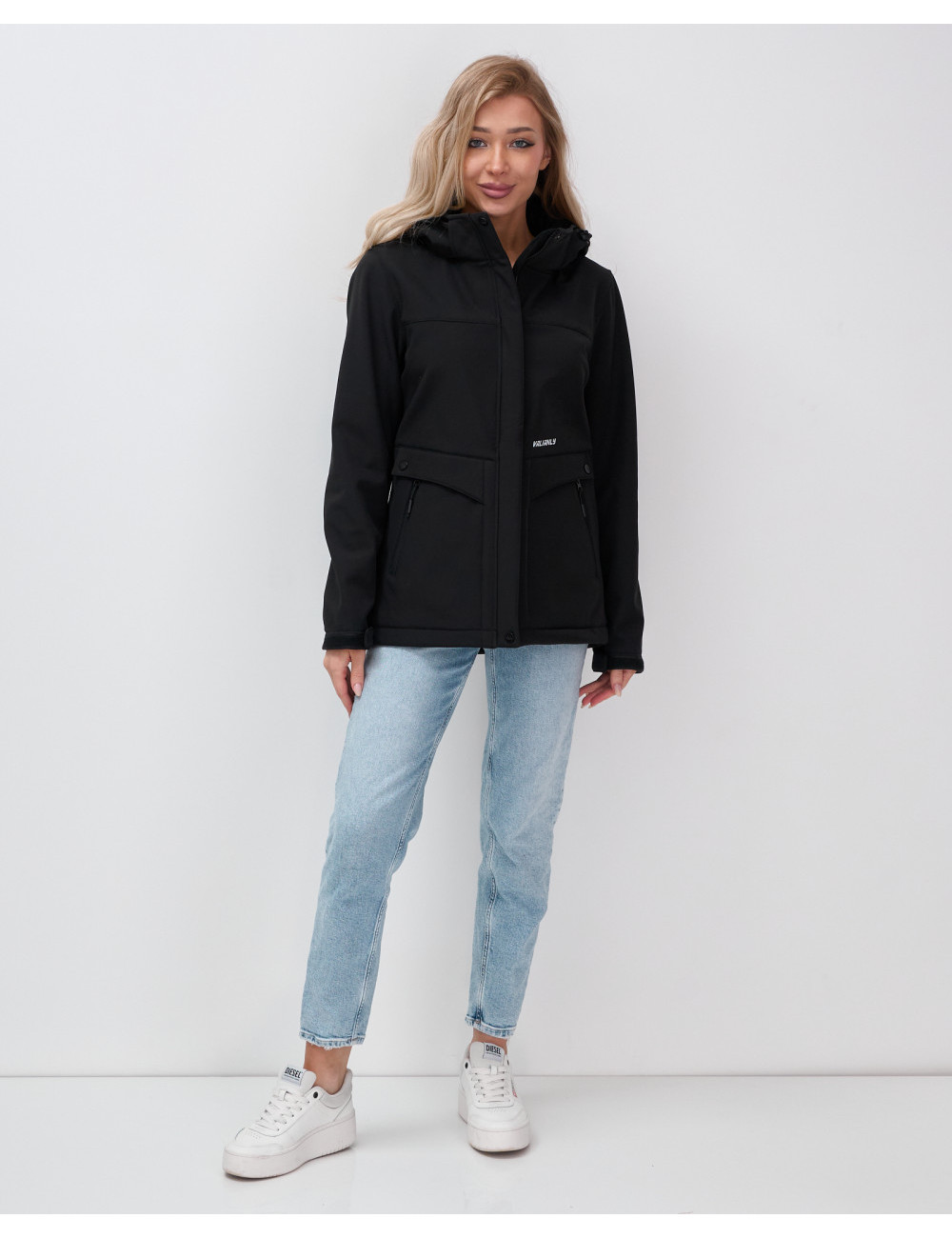 Доставка Женская спортивная ветровка с капюшоном softshell, чёрная, для активного отдыха по Тюмени и Тюменской области СДЭК