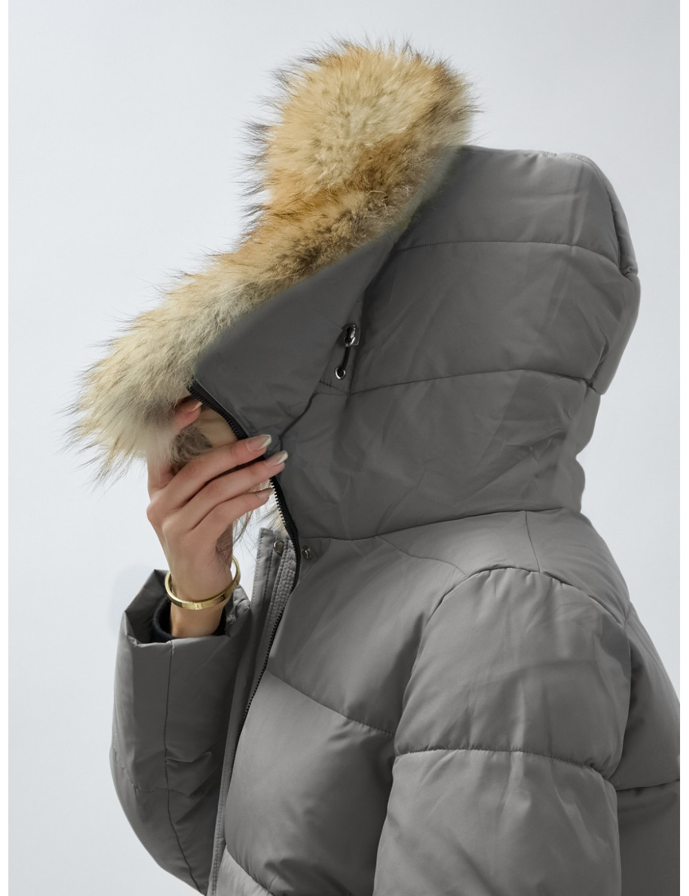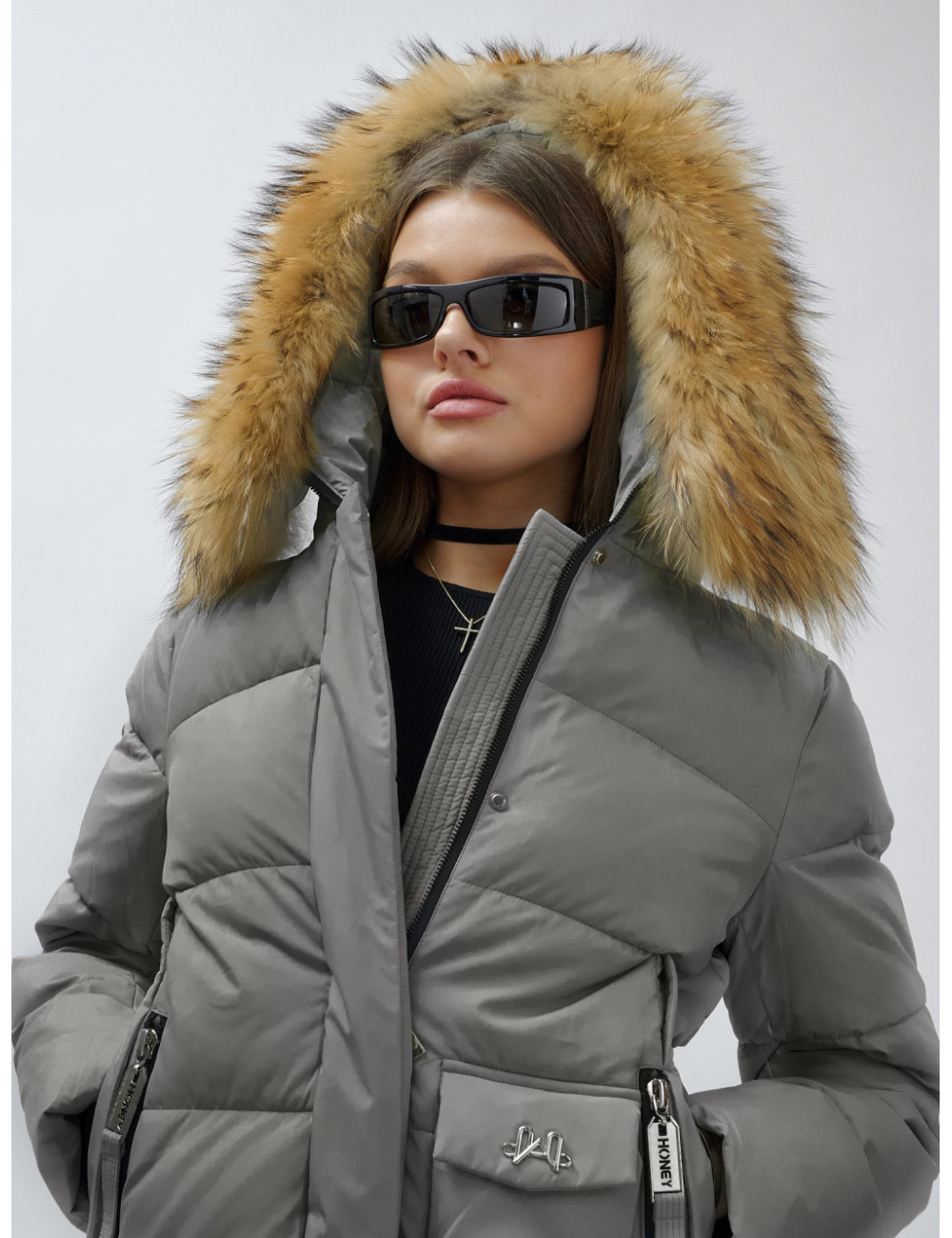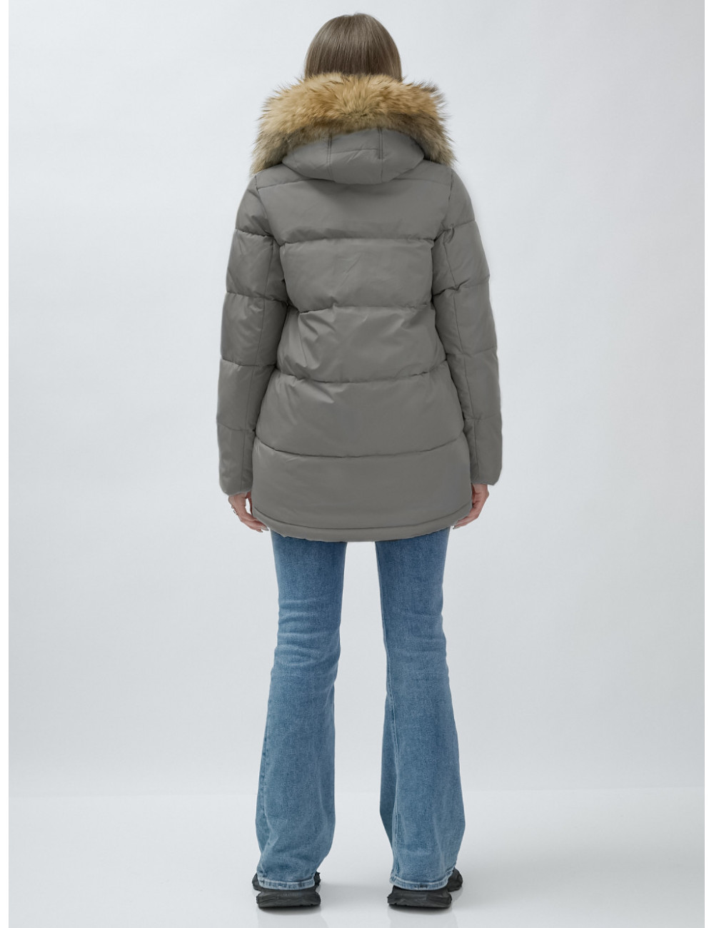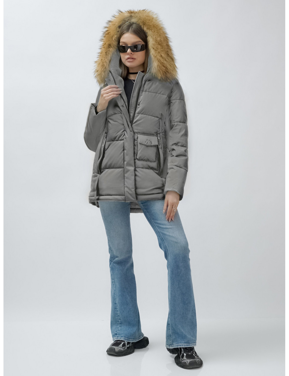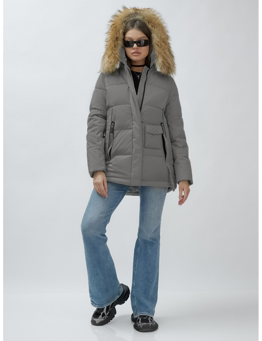 Доставка Пуховик женский зимний с мехом енота премиум-класса, серый. по Тюмени и Тюменской области СДЭК
