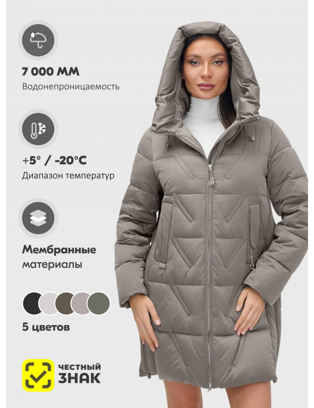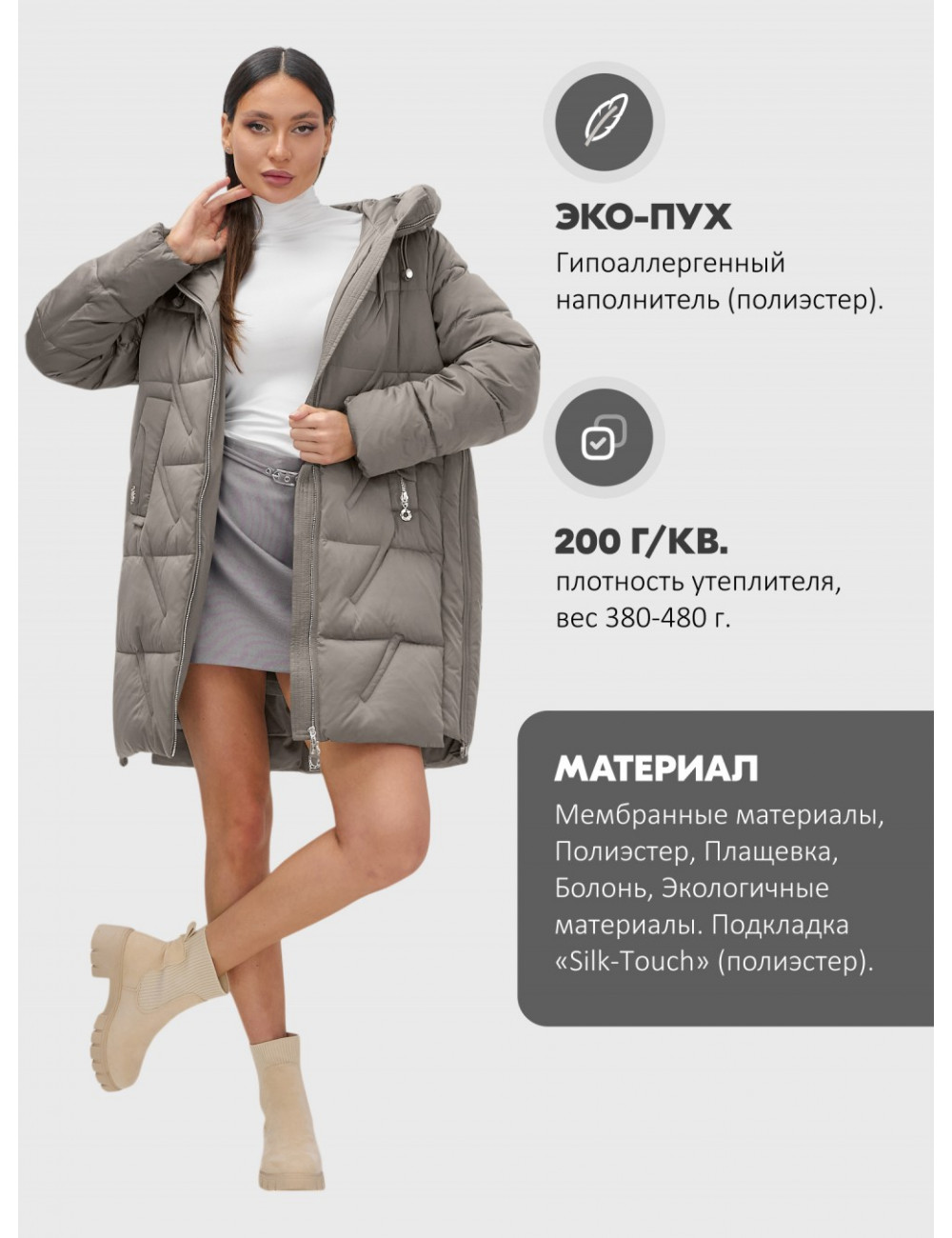 Эта модель выполнена в элегантном стиле, который подойдёт как для офиса, так и для повседневной носки. Декоративные элементы, такие как капюшон и молния, придают куртке современный вид.
