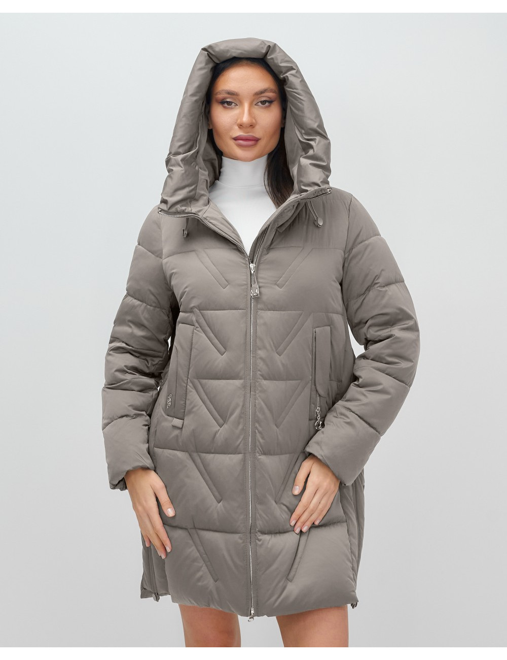Доставка Пуховик зимний женский с капюшоном, серый. по Тюмени и Тюменской области СДЭК