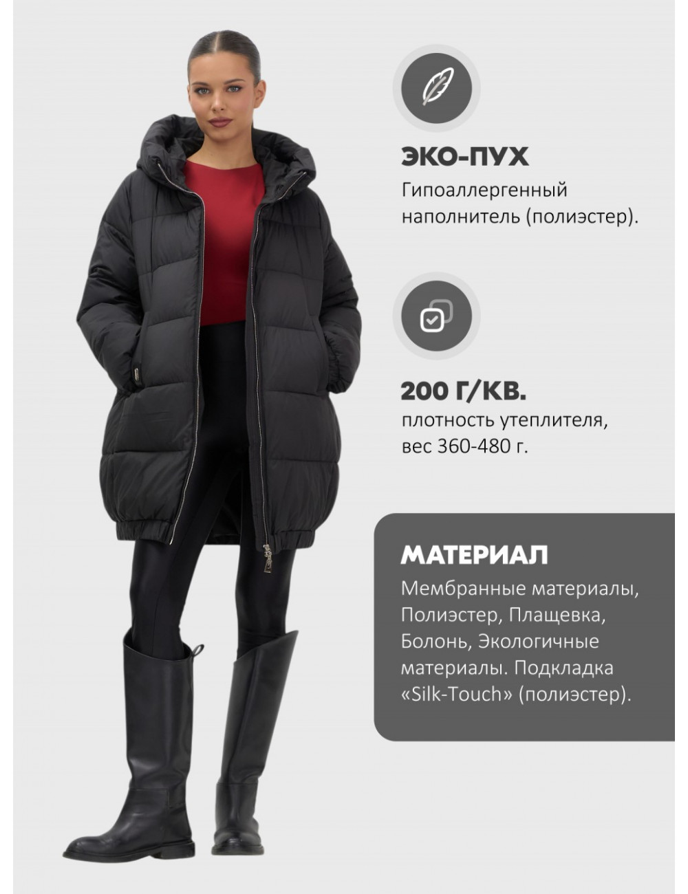 Доставка Пуховик женский зимний большой размер чёрный по Тюмени и Тюменской области СДЭК