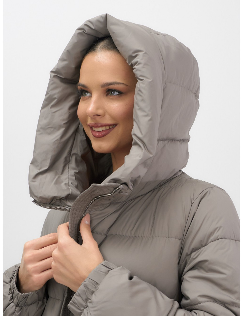 Доставка Пуховик женский зимний большого размера коричневый по Тюмени и Тюменской области СДЭК
