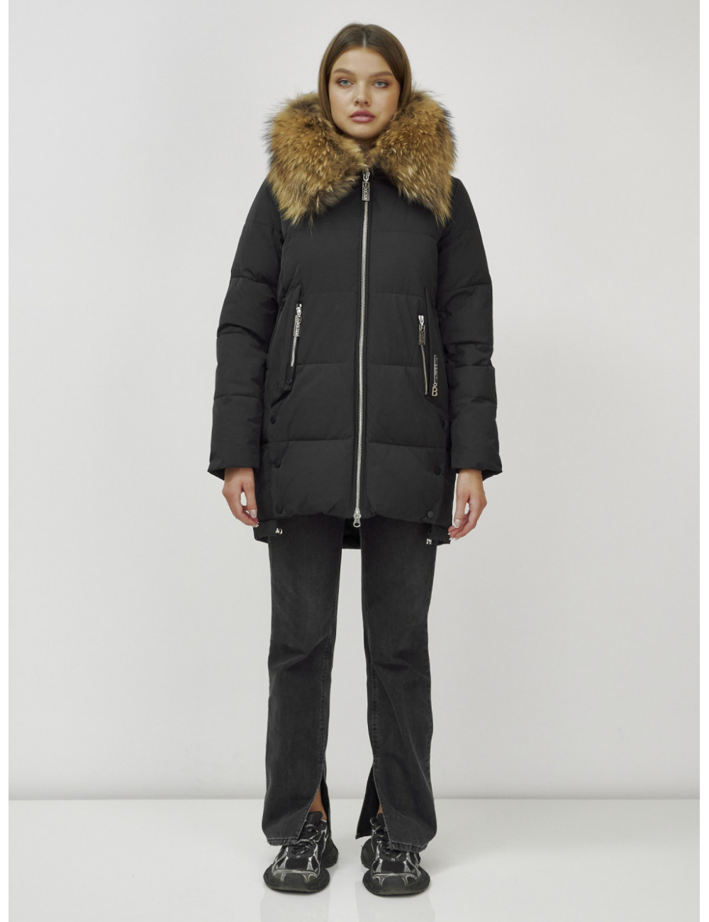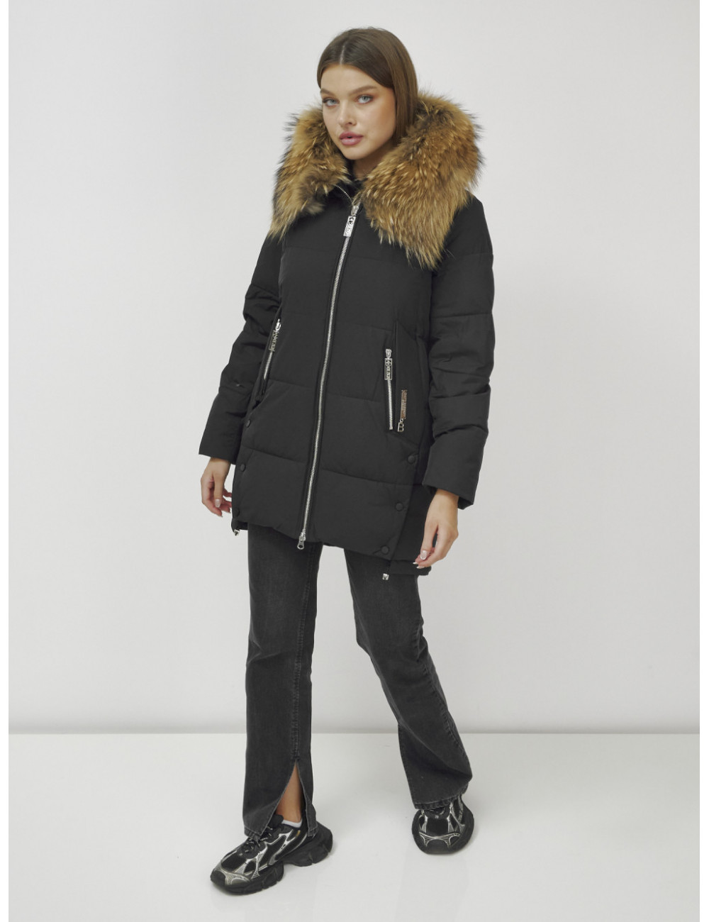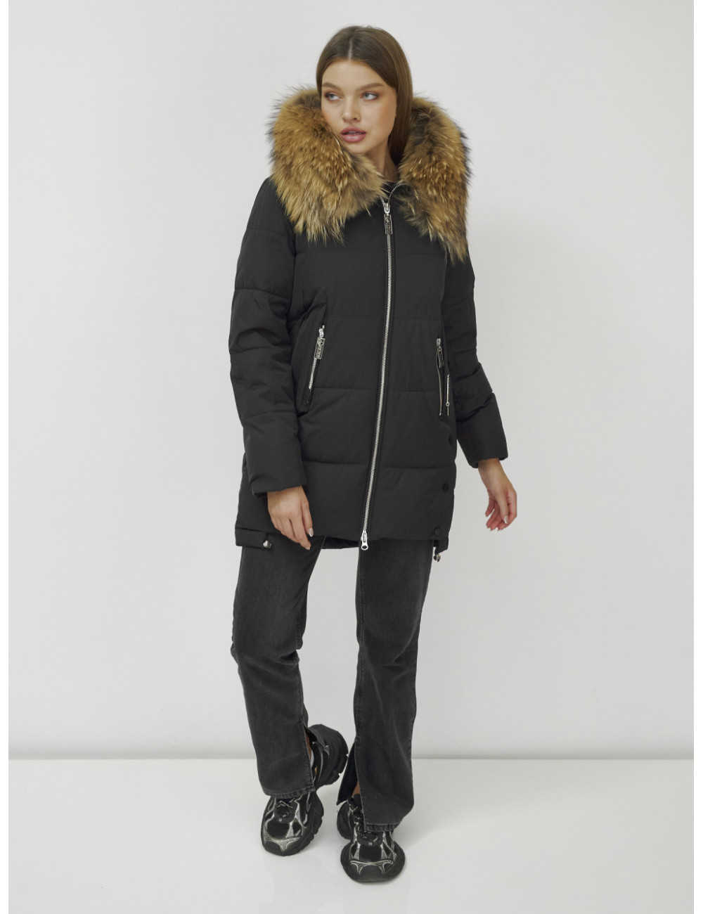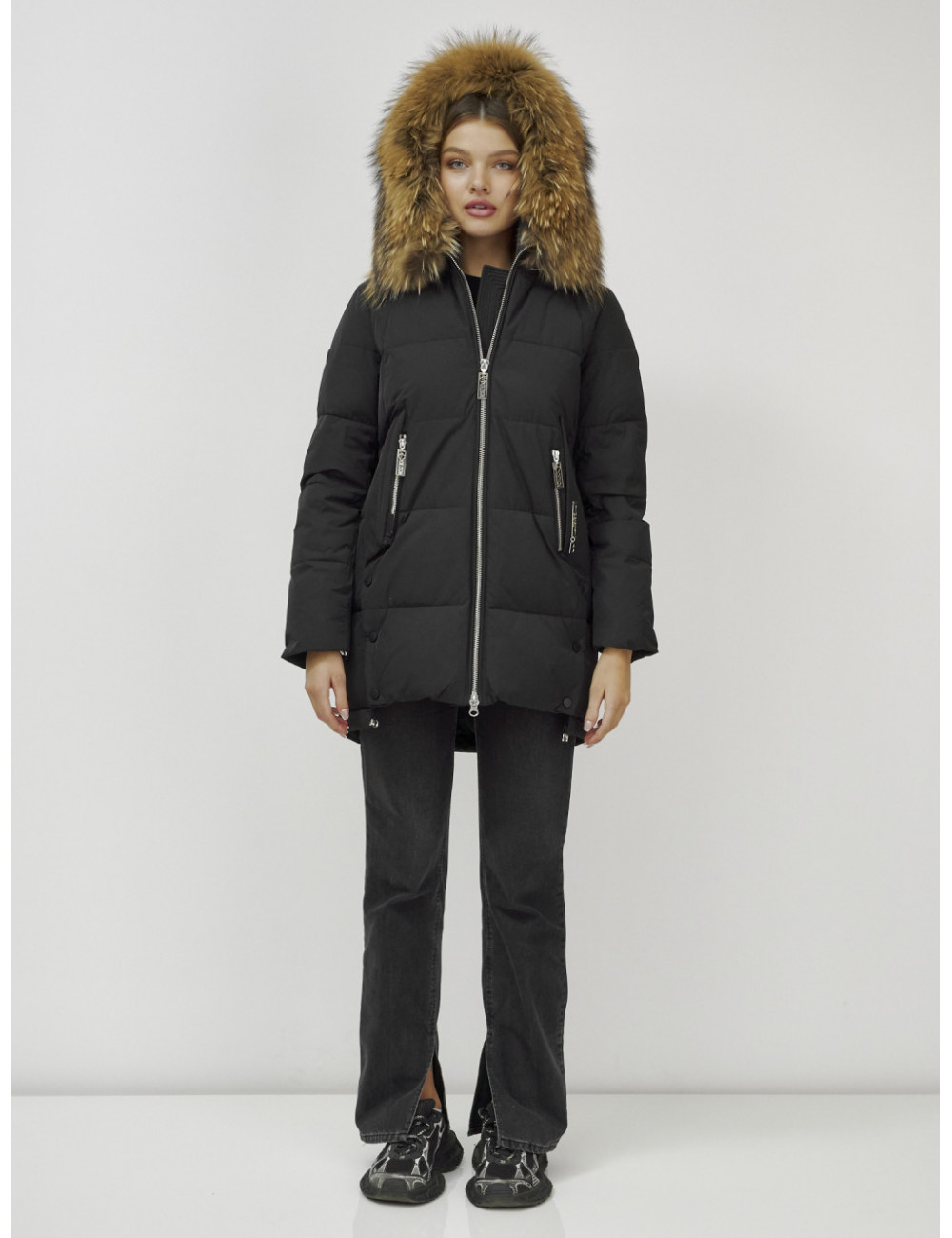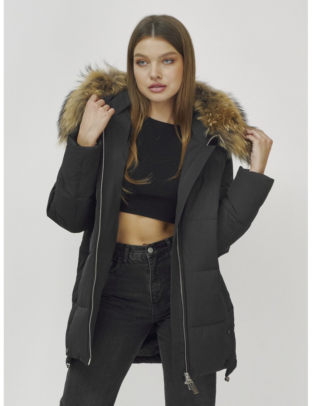 Доставка Пуховик женский зимний с мехом енота, чёрный премиум-класса по Тюмени и Тюменской области СДЭК