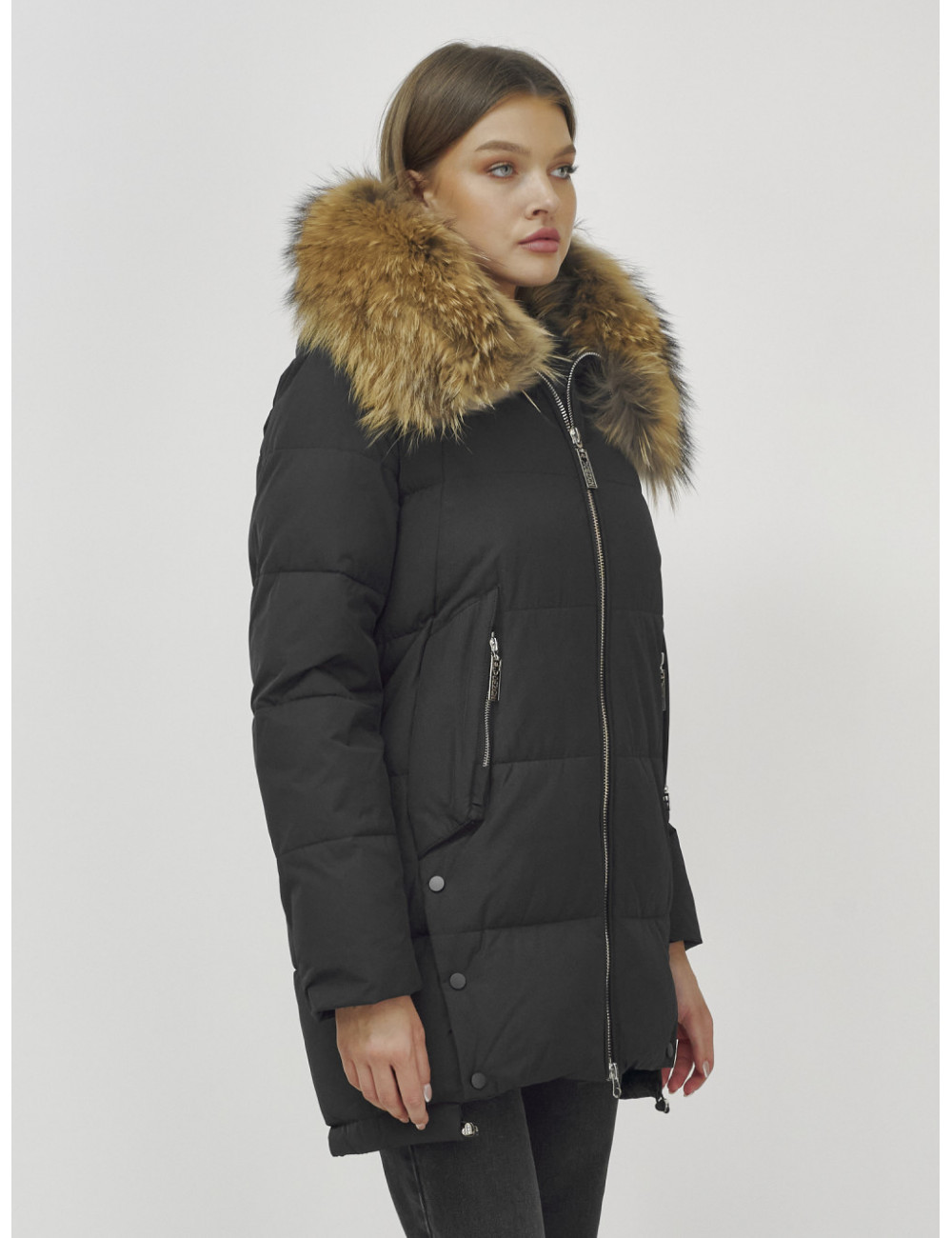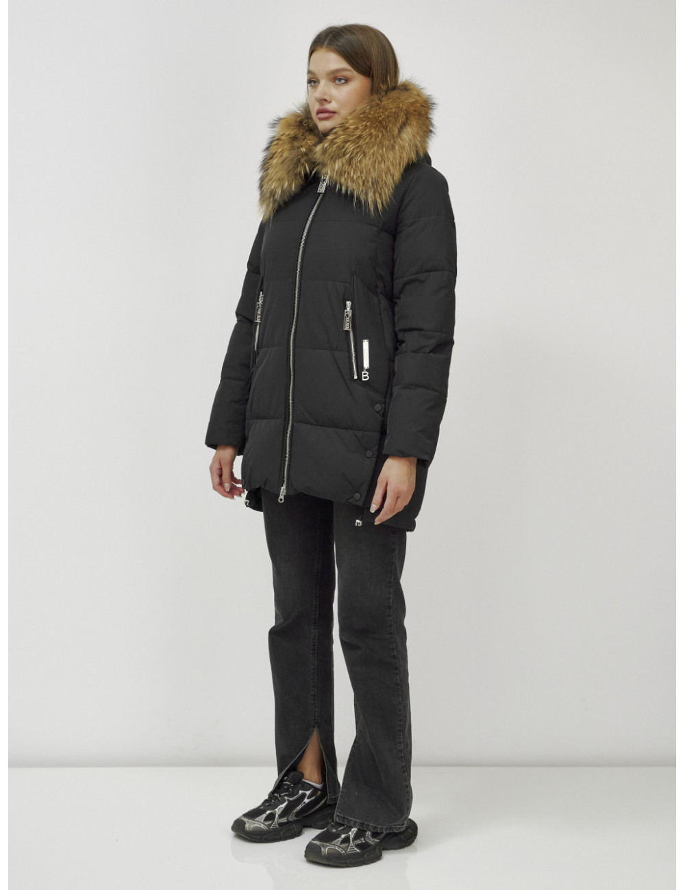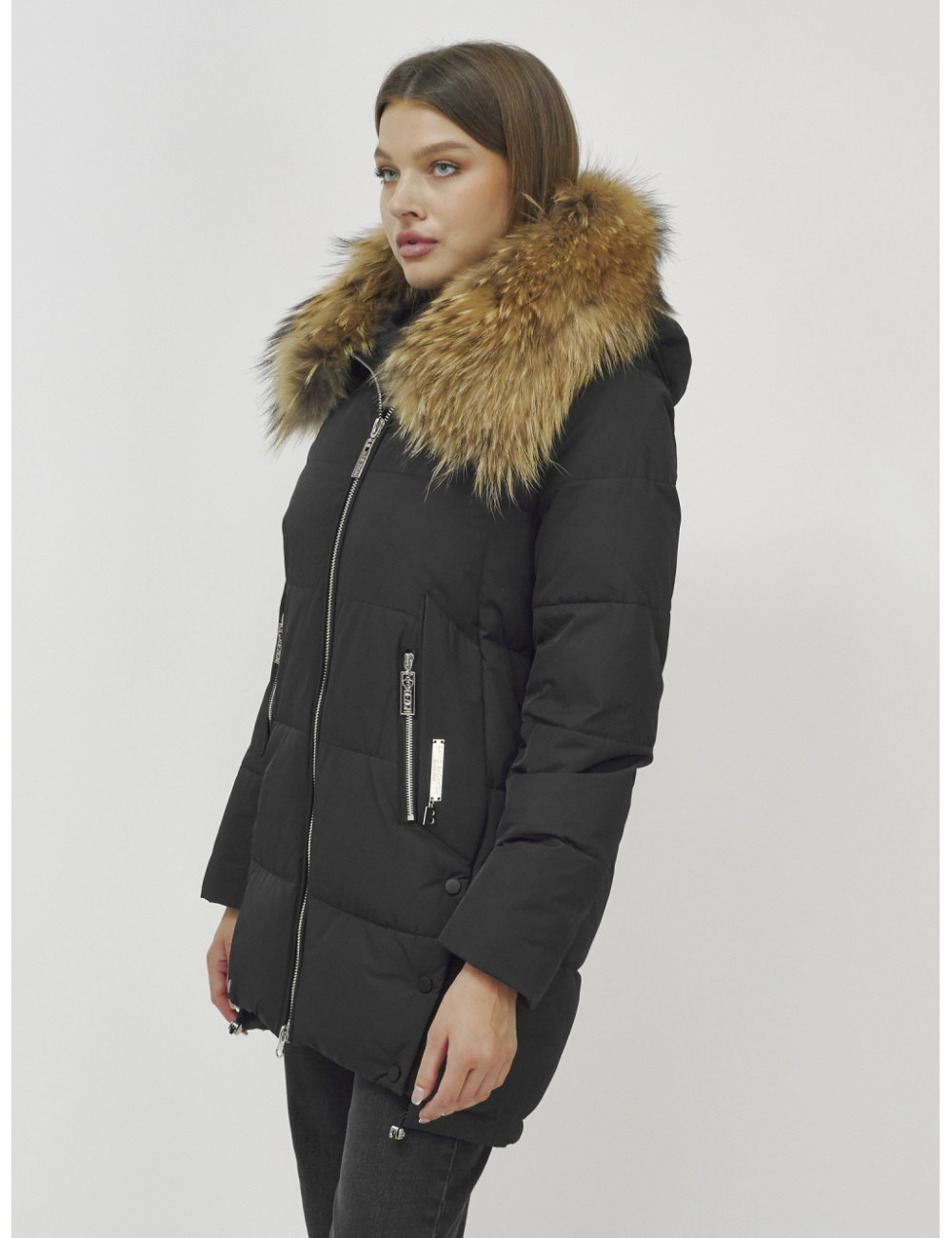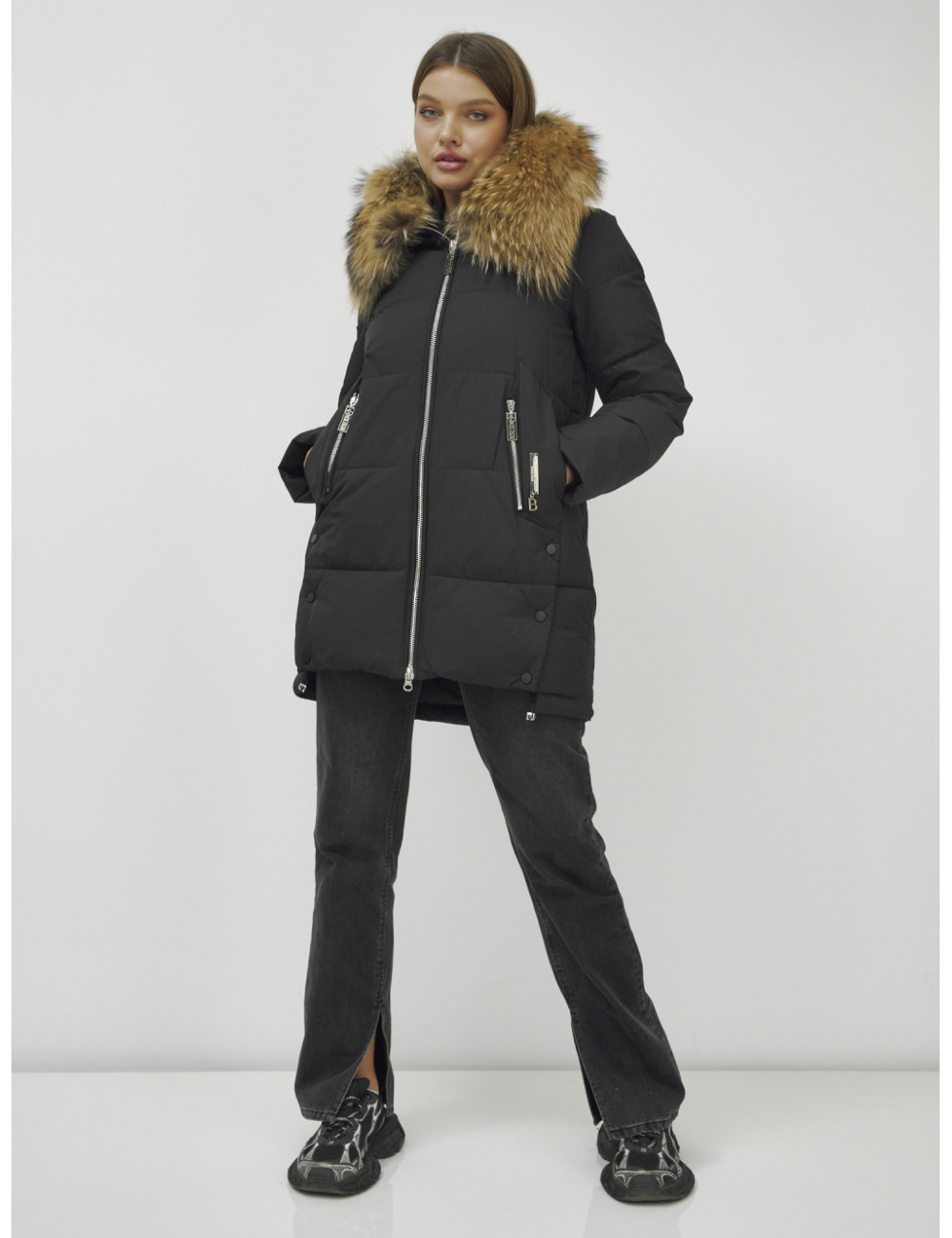Доставка Пуховик женский зимний с мехом енота, чёрный премиум-класса по Тюмени и Тюменской области СДЭК