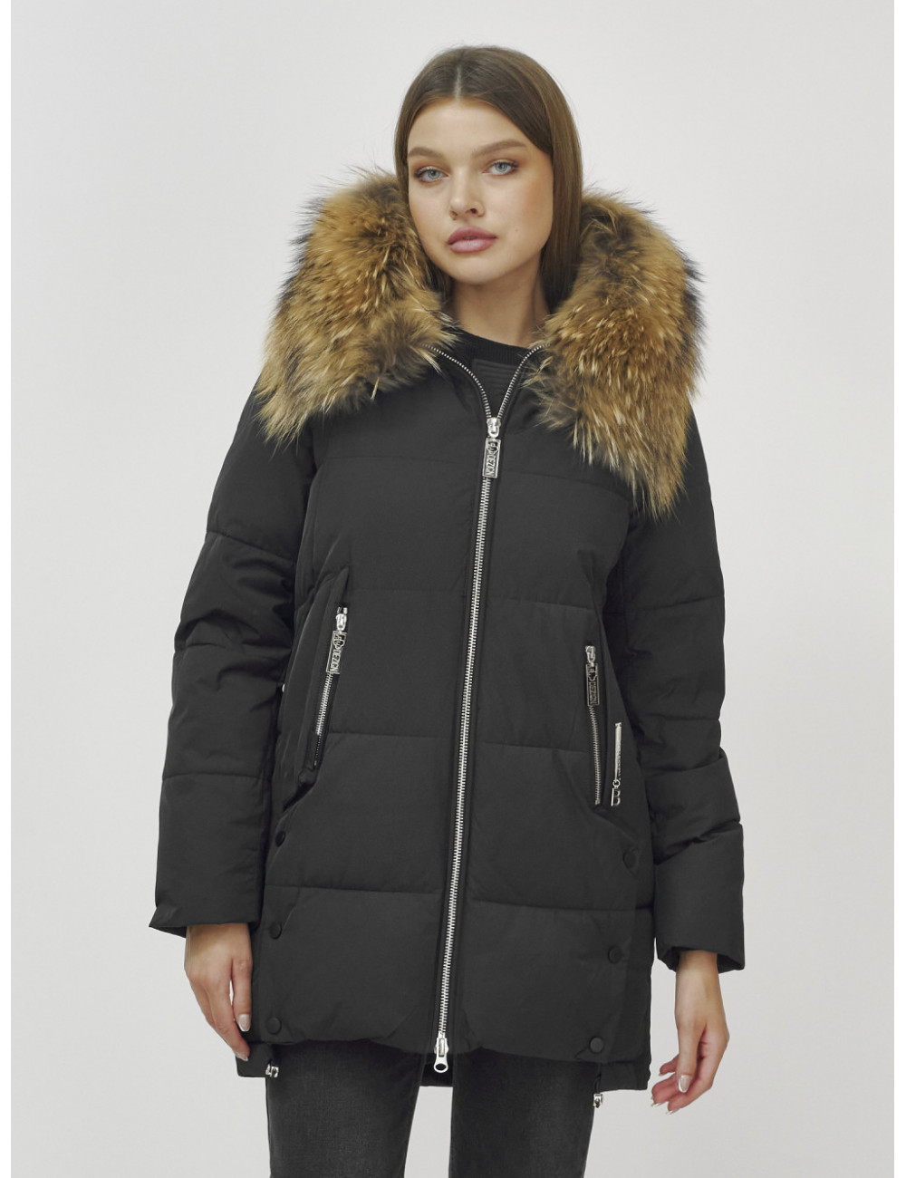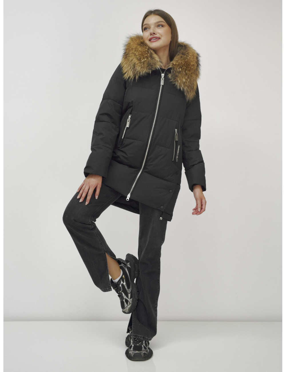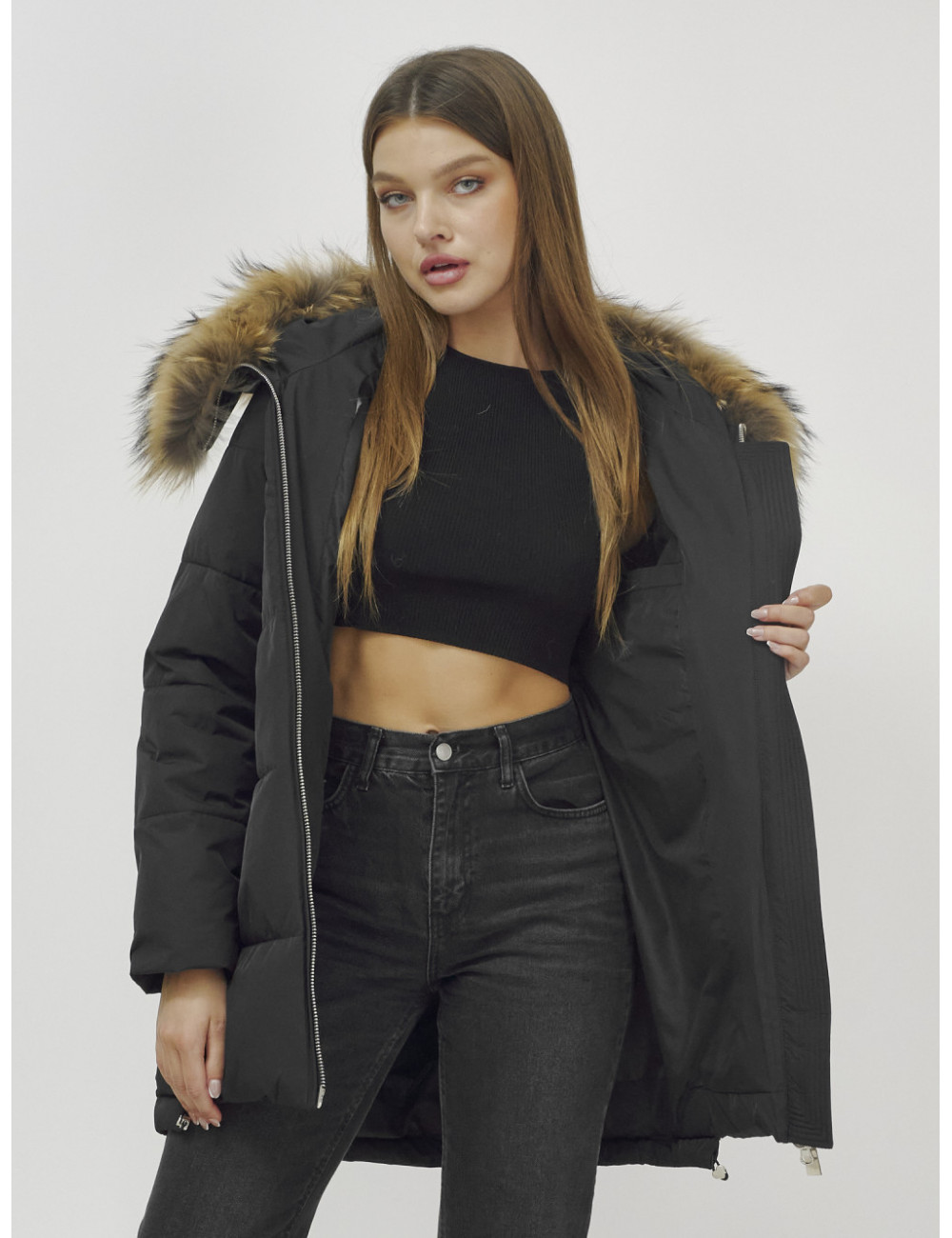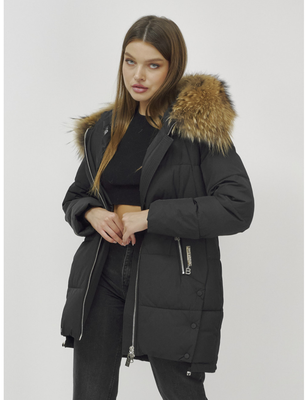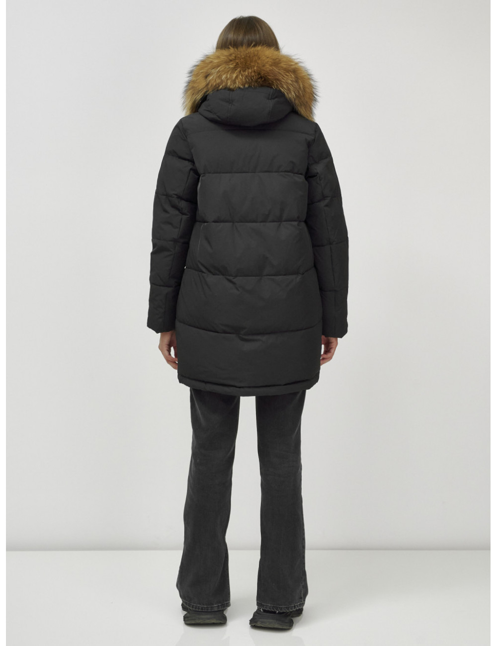 Доставка Пуховик женский зимний с мехом енота, чёрный премиум-класса по Тюмени и Тюменской области СДЭК