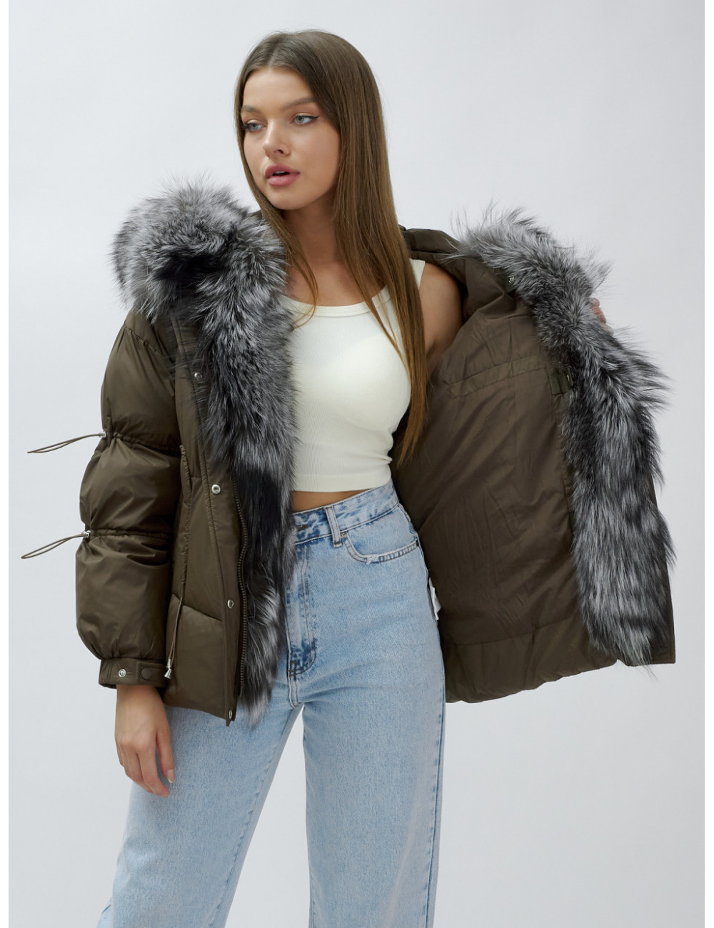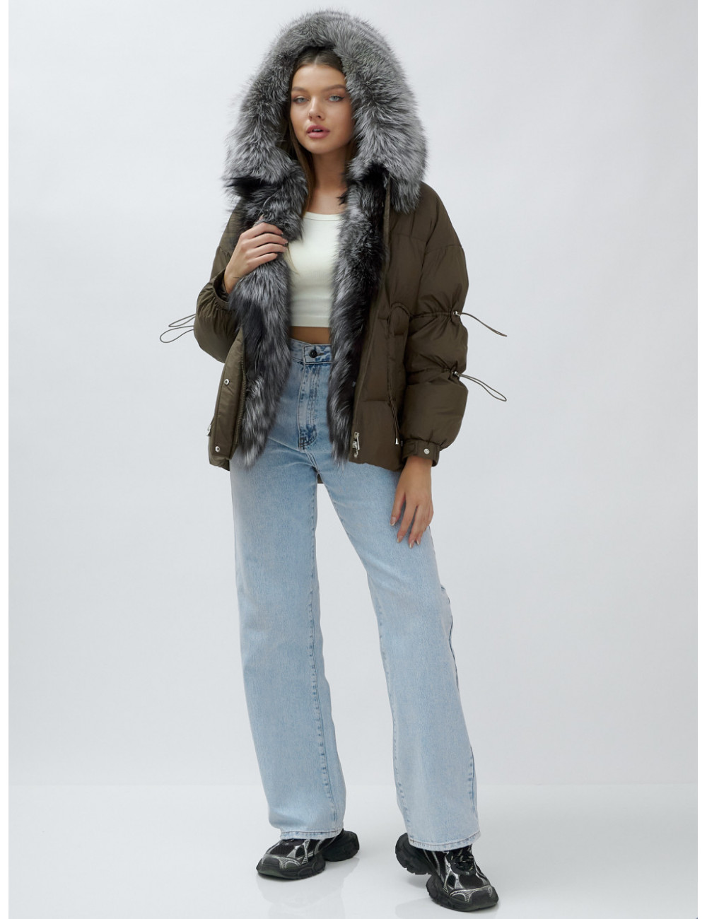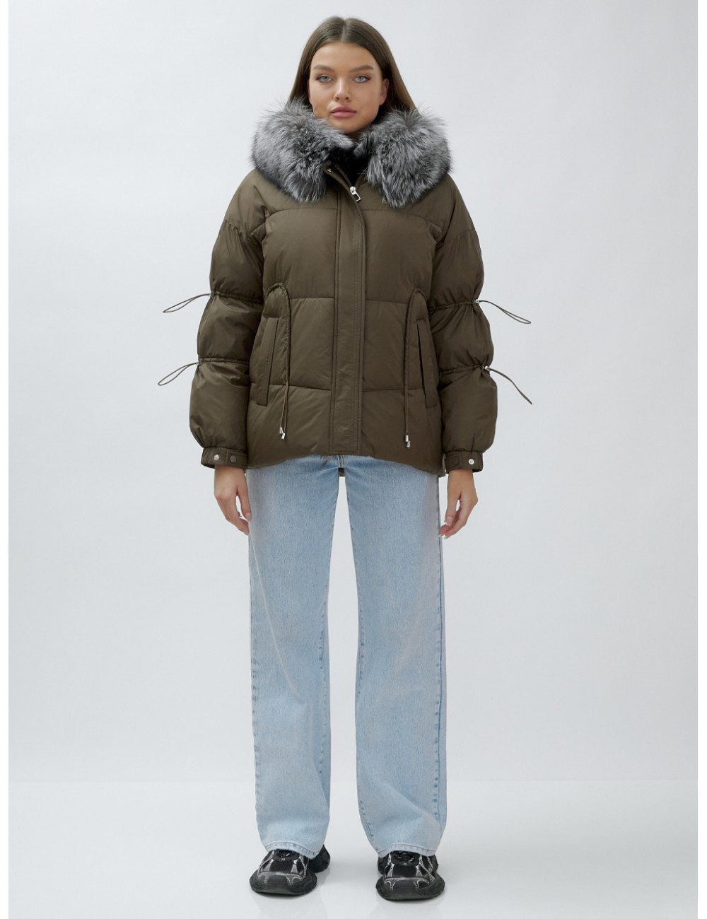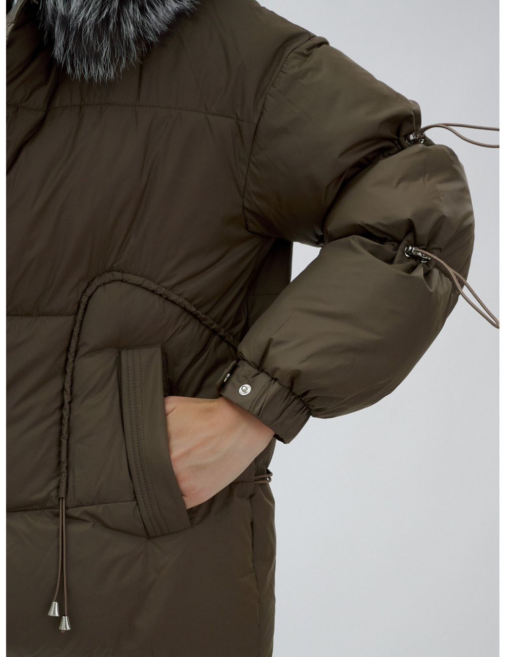 Доставка Пуховик женский коричневый с чернобуркой по Тюмени и Тюменской области СДЭК