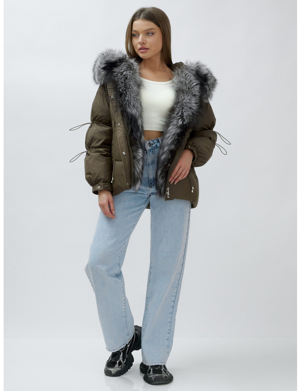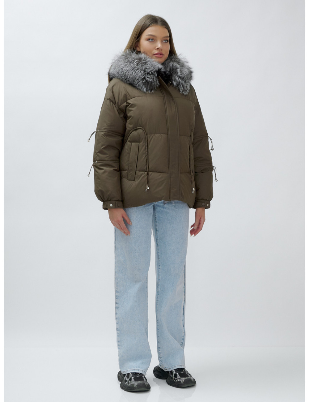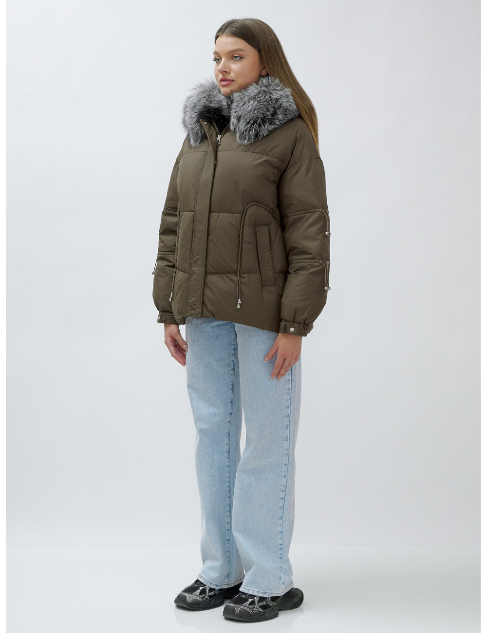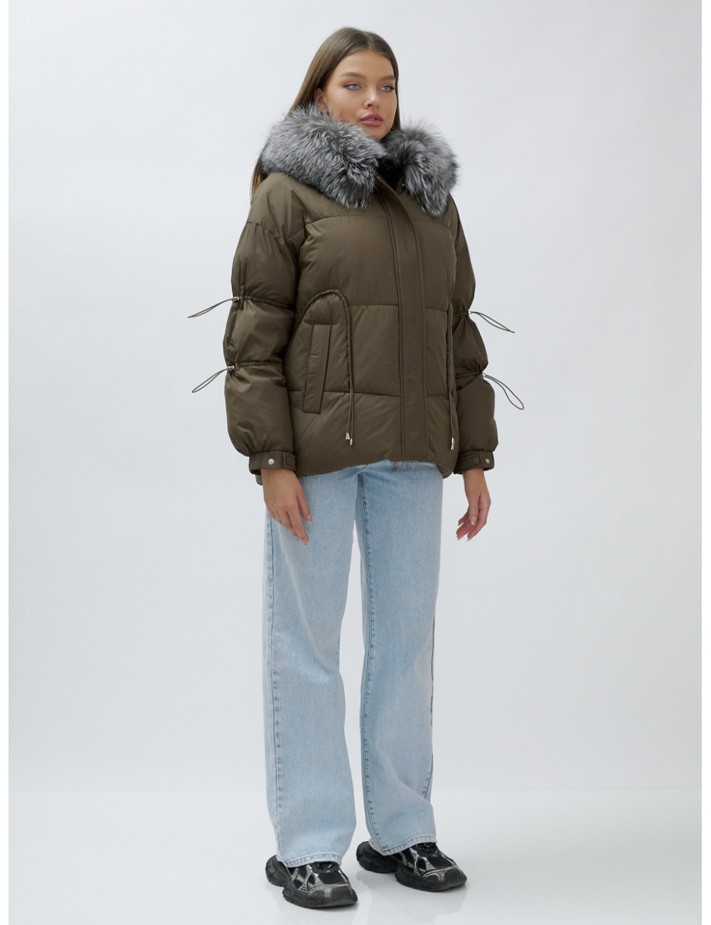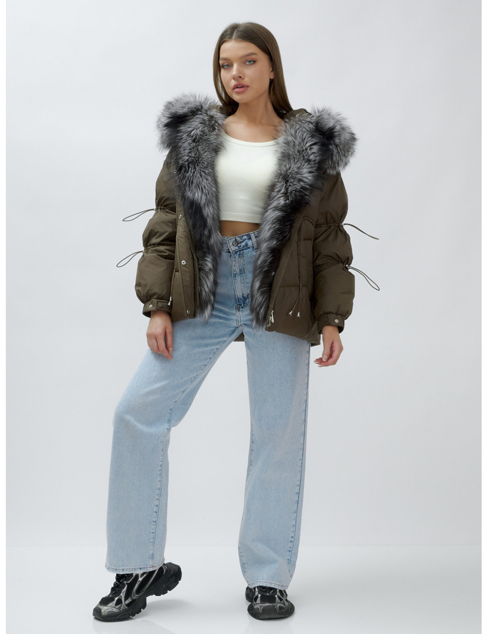 Доставка Пуховик женский коричневый с чернобуркой по Тюмени и Тюменской области СДЭК