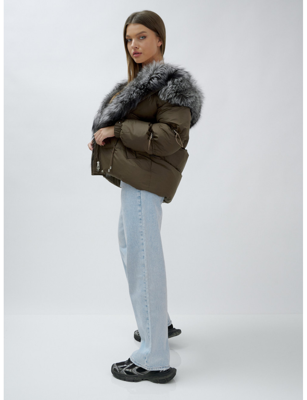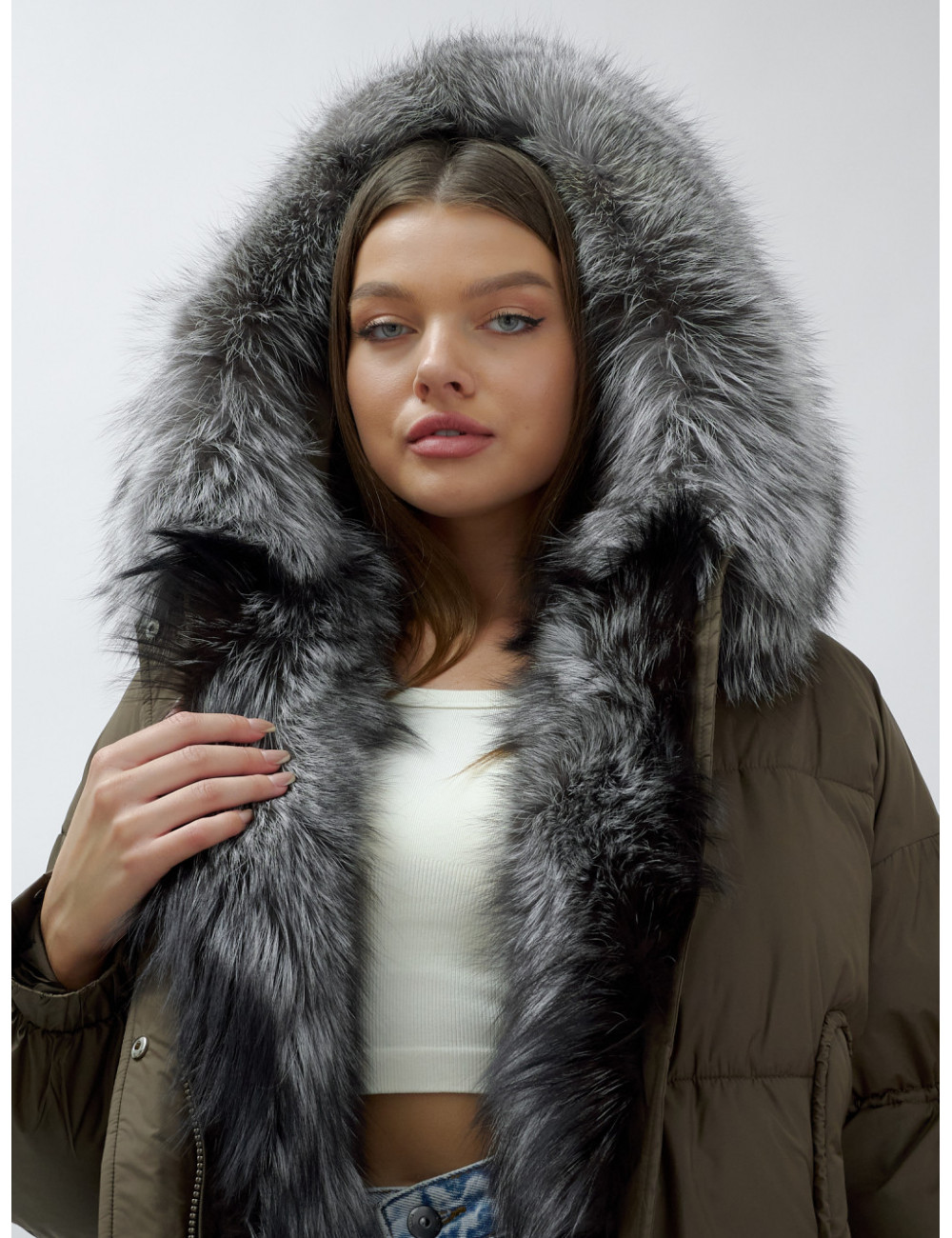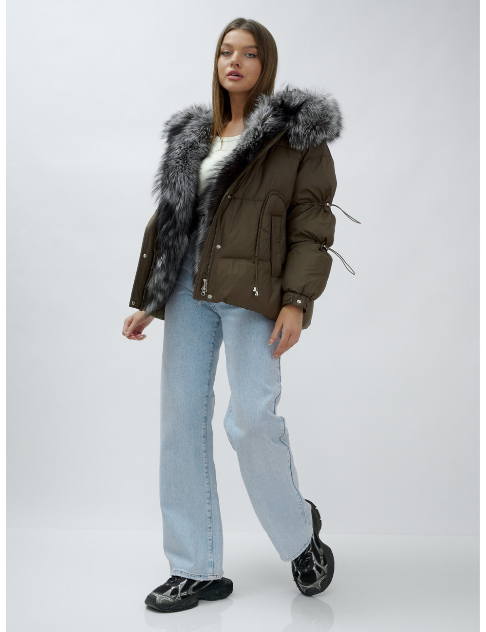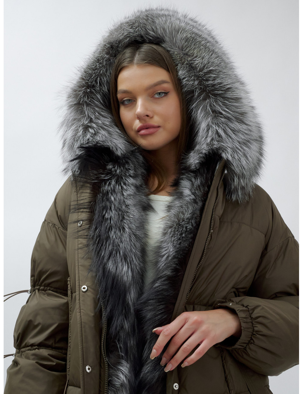 - Опушка из меха чернобурки: элегантная опушка добавляет изысканности и стиля, подчёркивая вашу индивидуальность. Мех согревает не только голову, но и грудь.