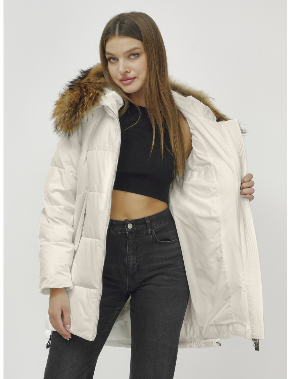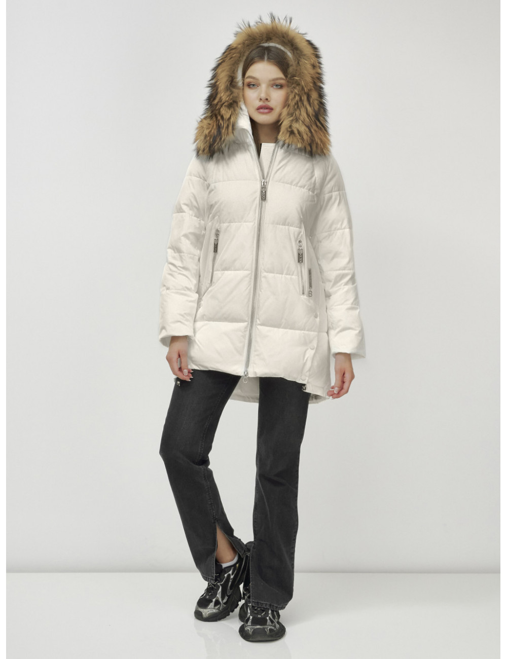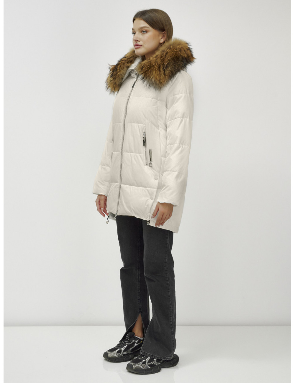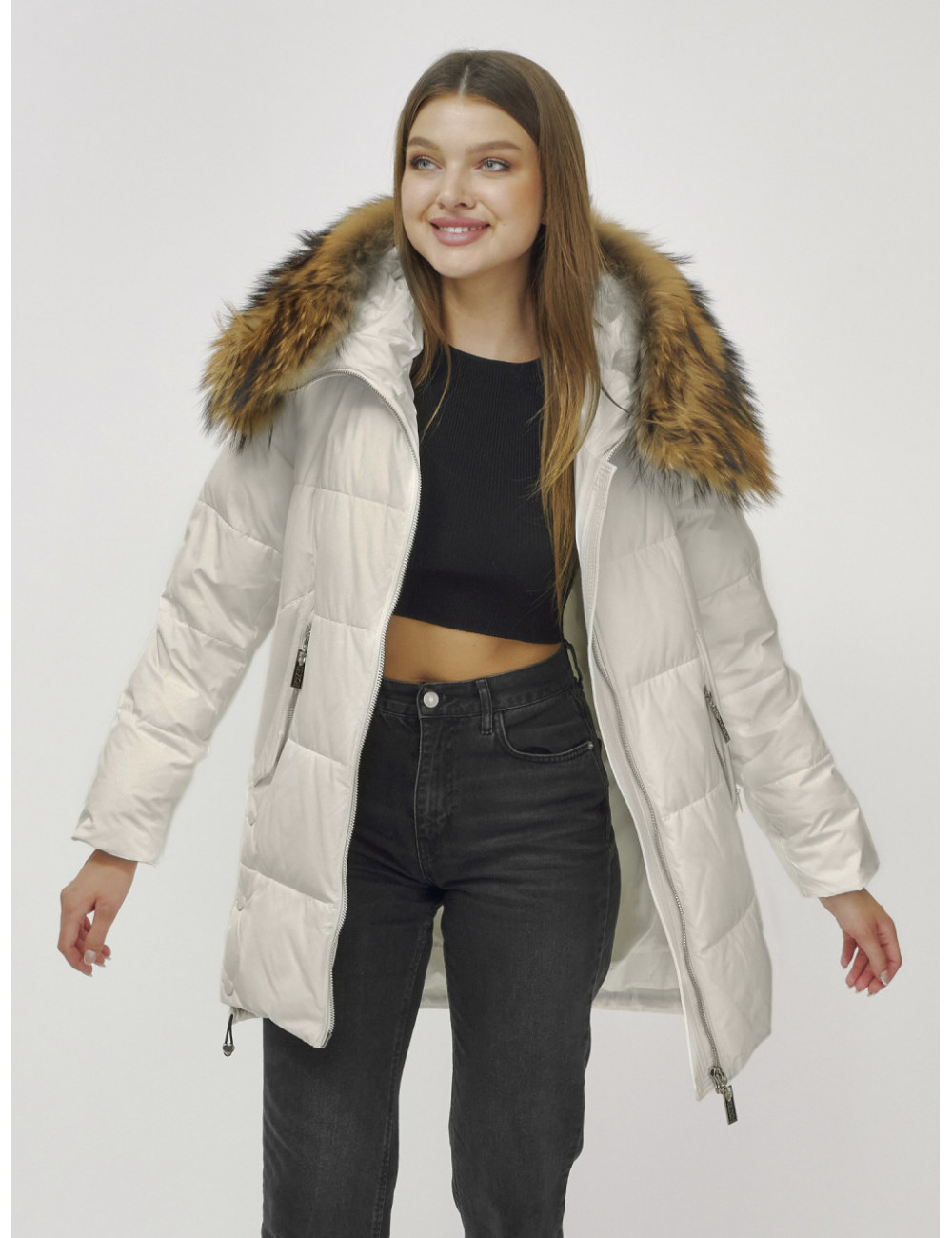 Доставка Пуховик женский зимний с мехом енот бежевый премиум по Тюмени и Тюменской области СДЭК