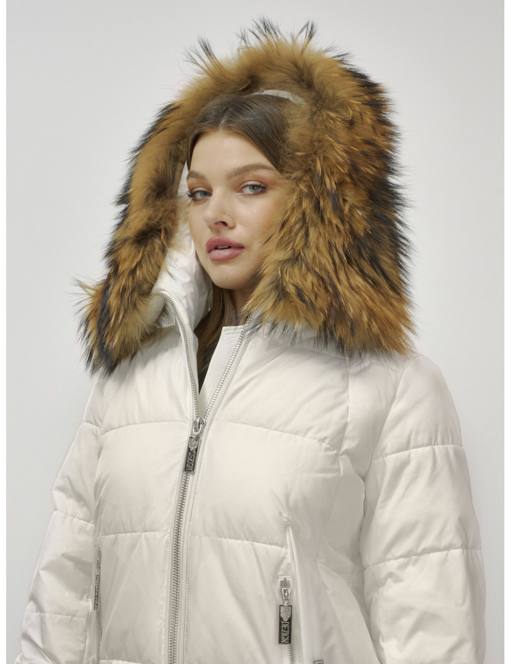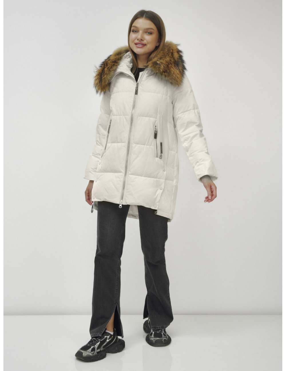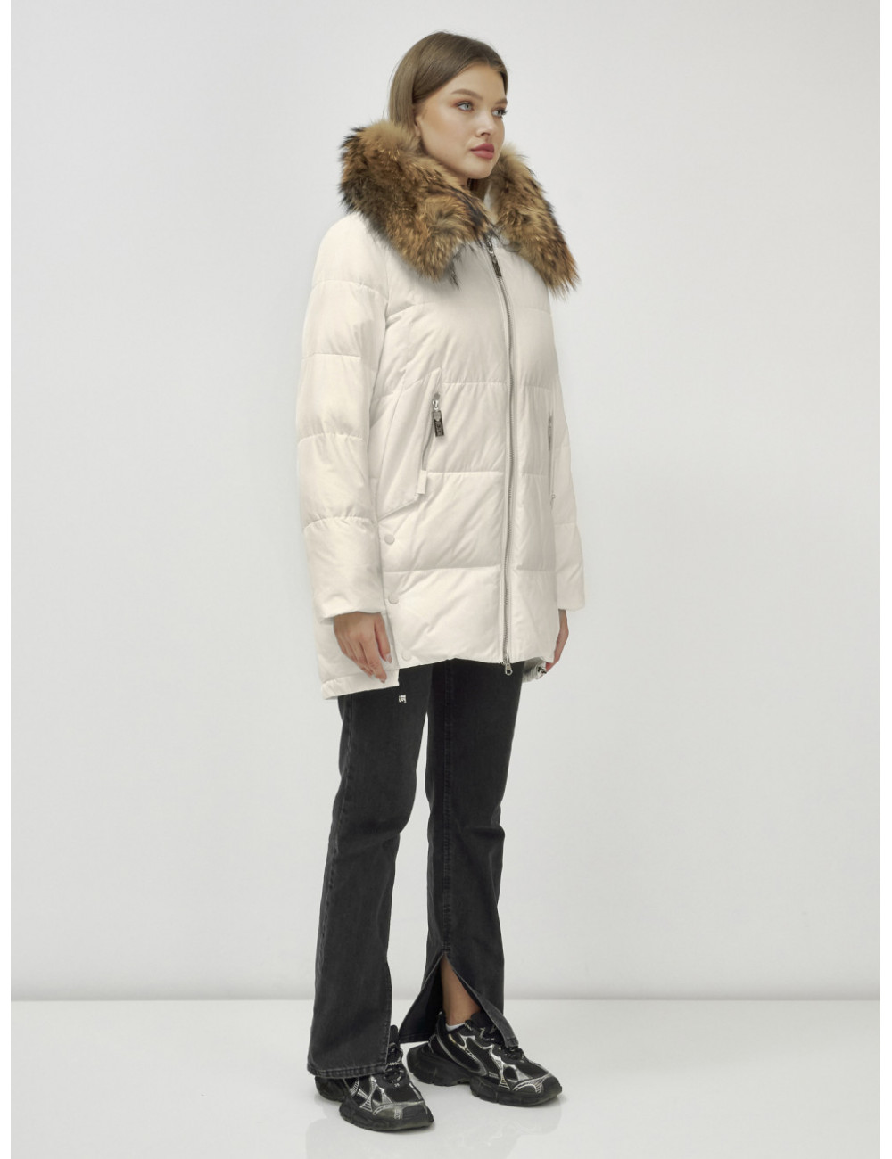 Доставка Пуховик женский зимний с мехом енот бежевый премиум по Тюмени и Тюменской области СДЭК