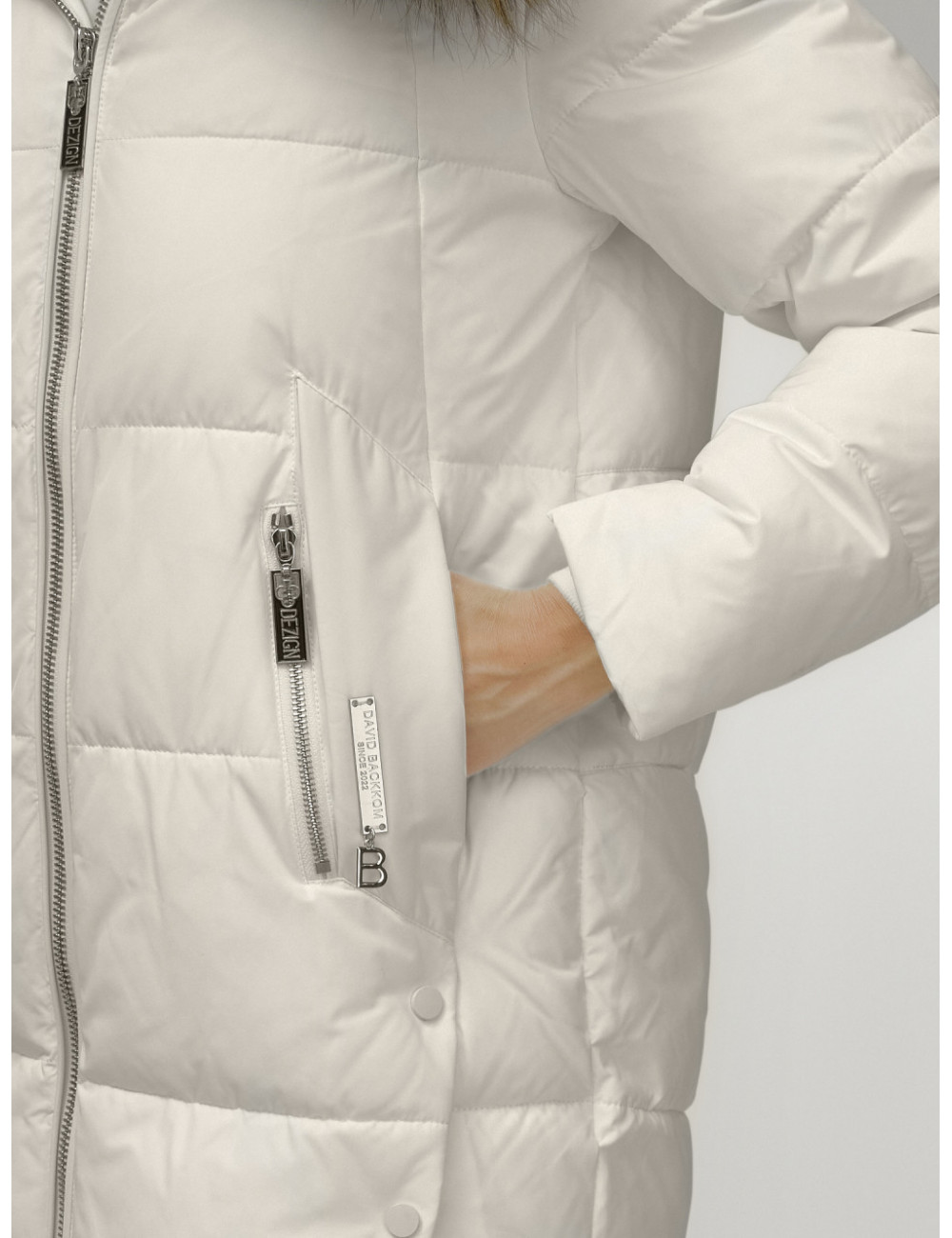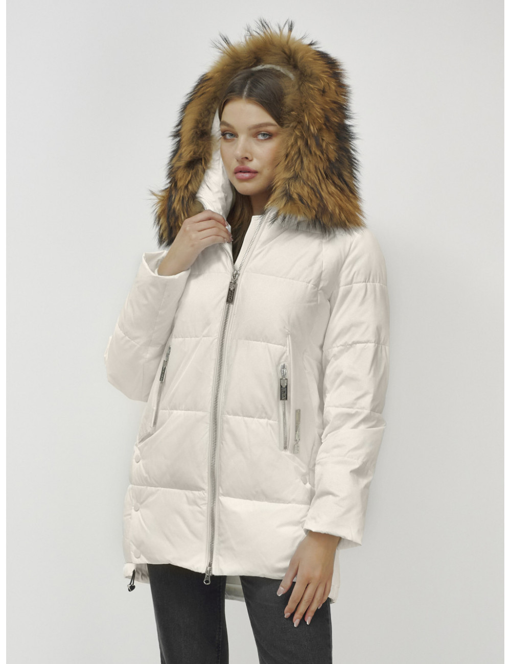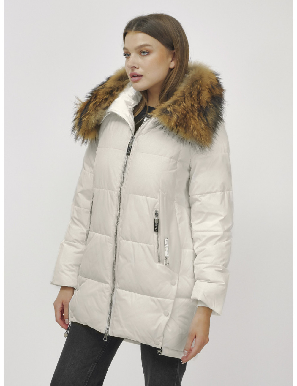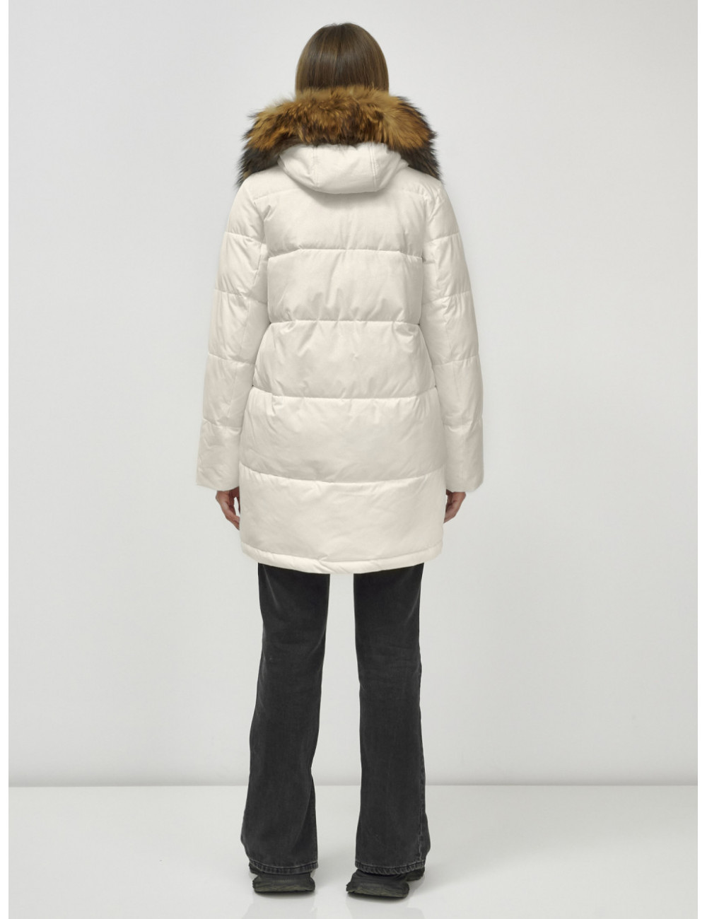 Доставка Пуховик женский зимний с мехом енот бежевый премиум по Тюмени и Тюменской области СДЭК