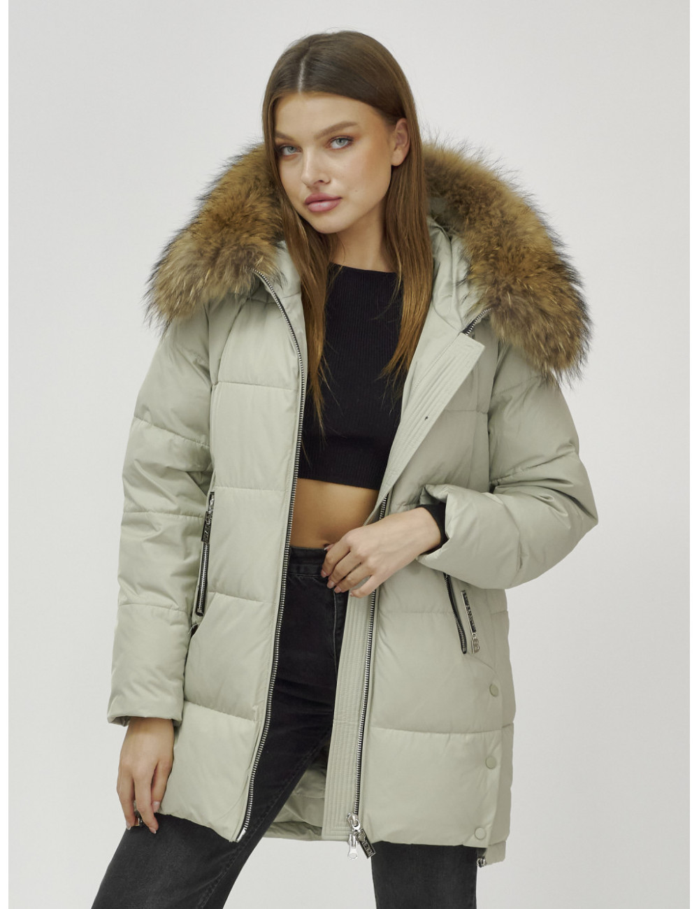 Доставка Пуховик женский зимний премиум светло-зелёный. по Тюмени и Тюменской области СДЭК