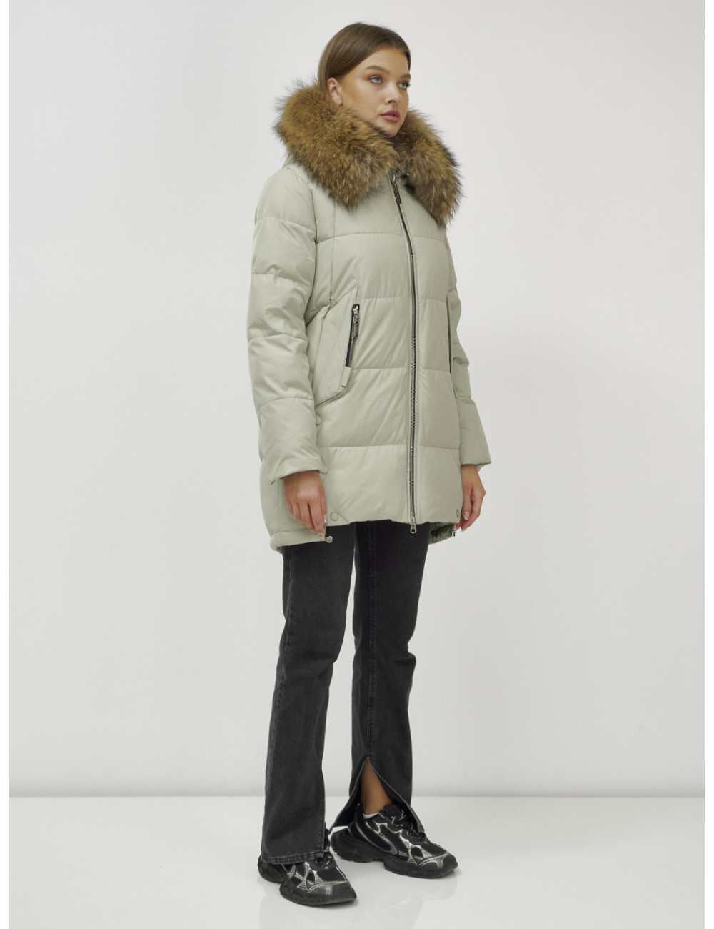 - Натуральная съёмная меховая опушка из енота добавляет роскоши и тепла.