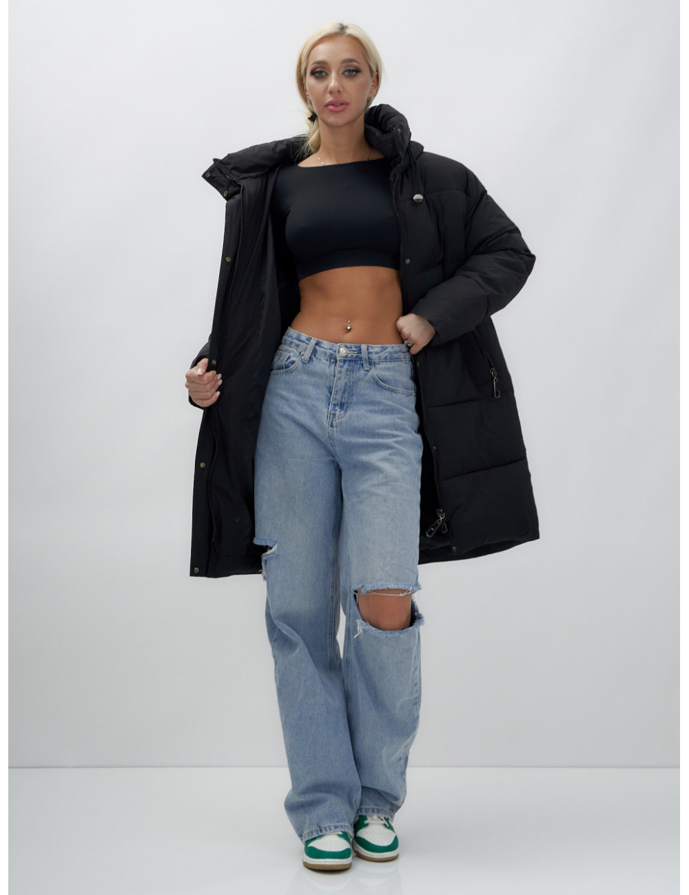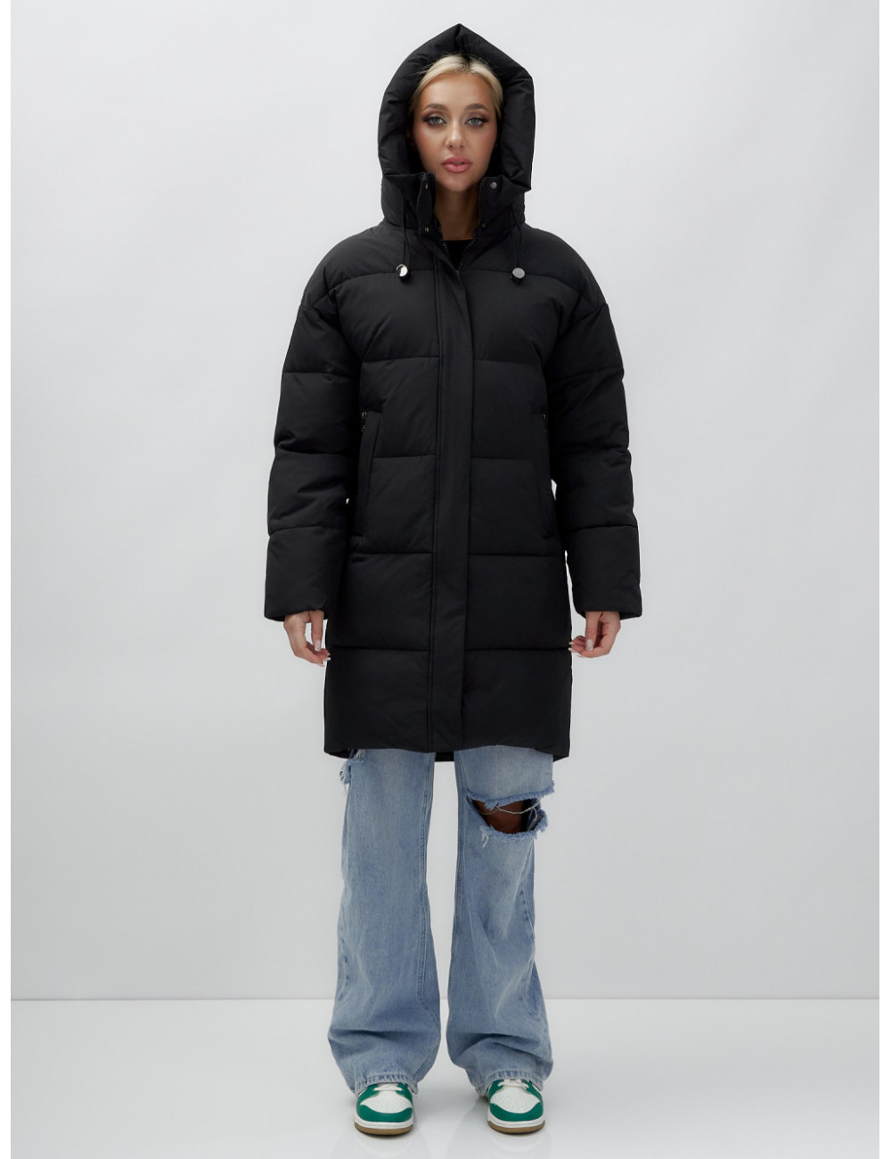 Доставка Пуховик женский зимний удлинённый с капюшоном, чёрный. по Тюмени и Тюменской области СДЭК