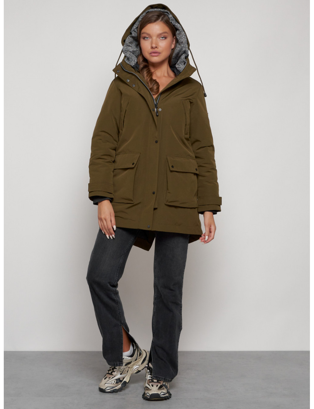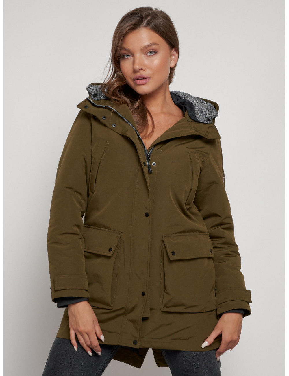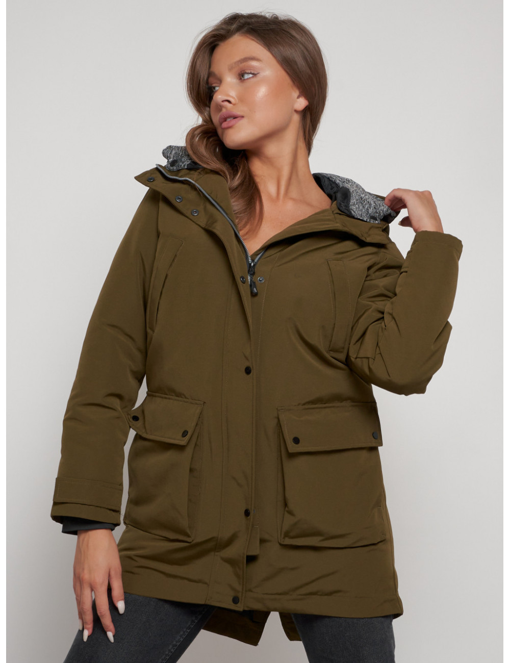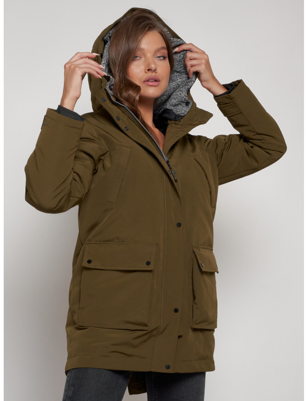 Доставка Женская зимняя парка с капюшоном, хаки, для активного отдыха. по Тюмени и Тюменской области СДЭК