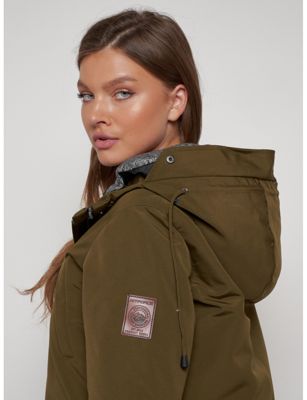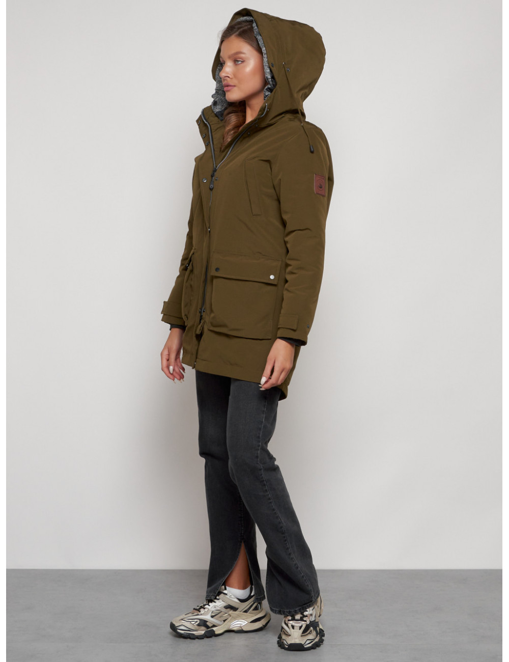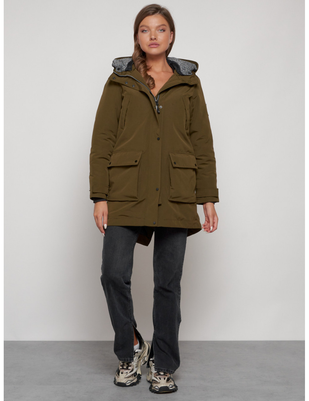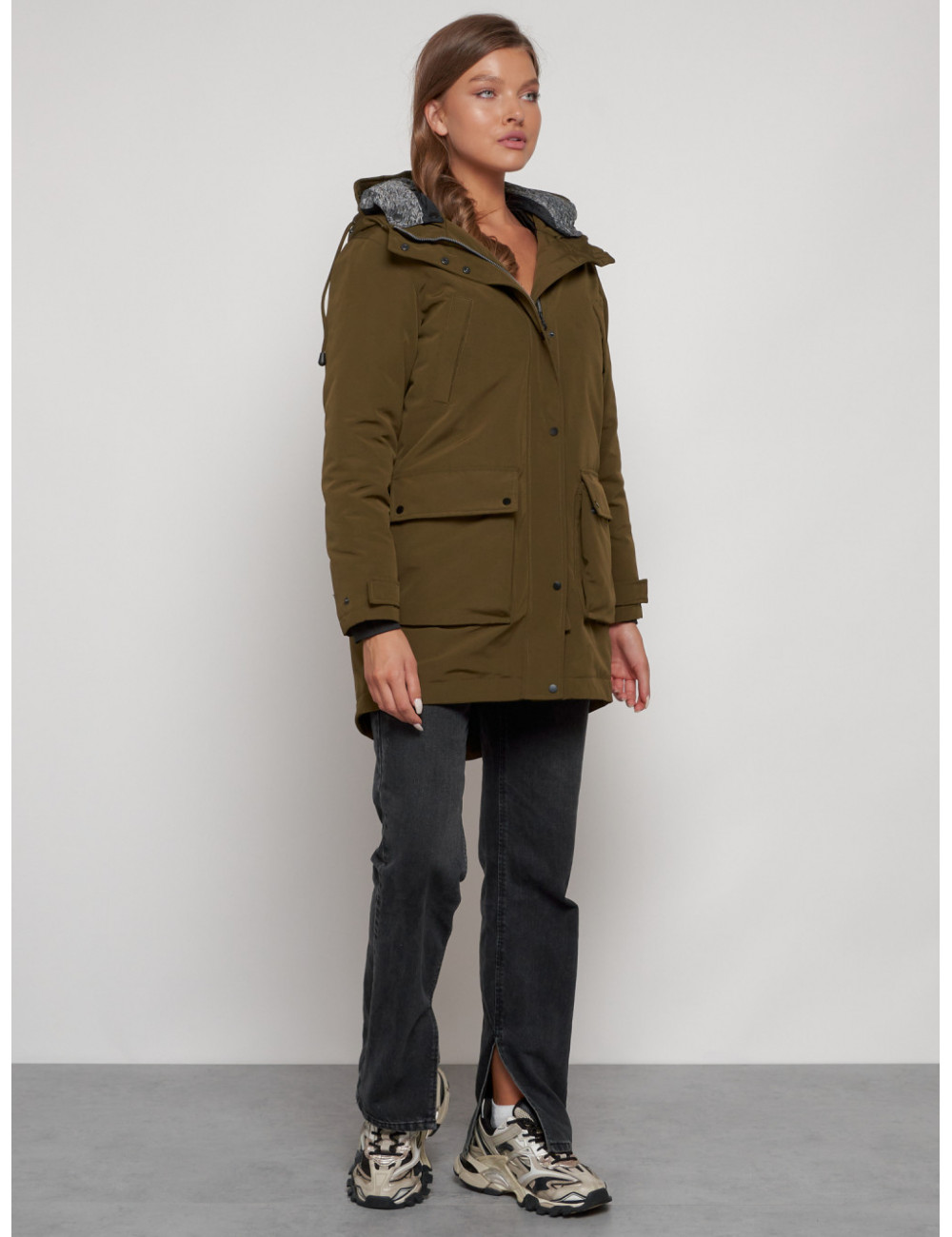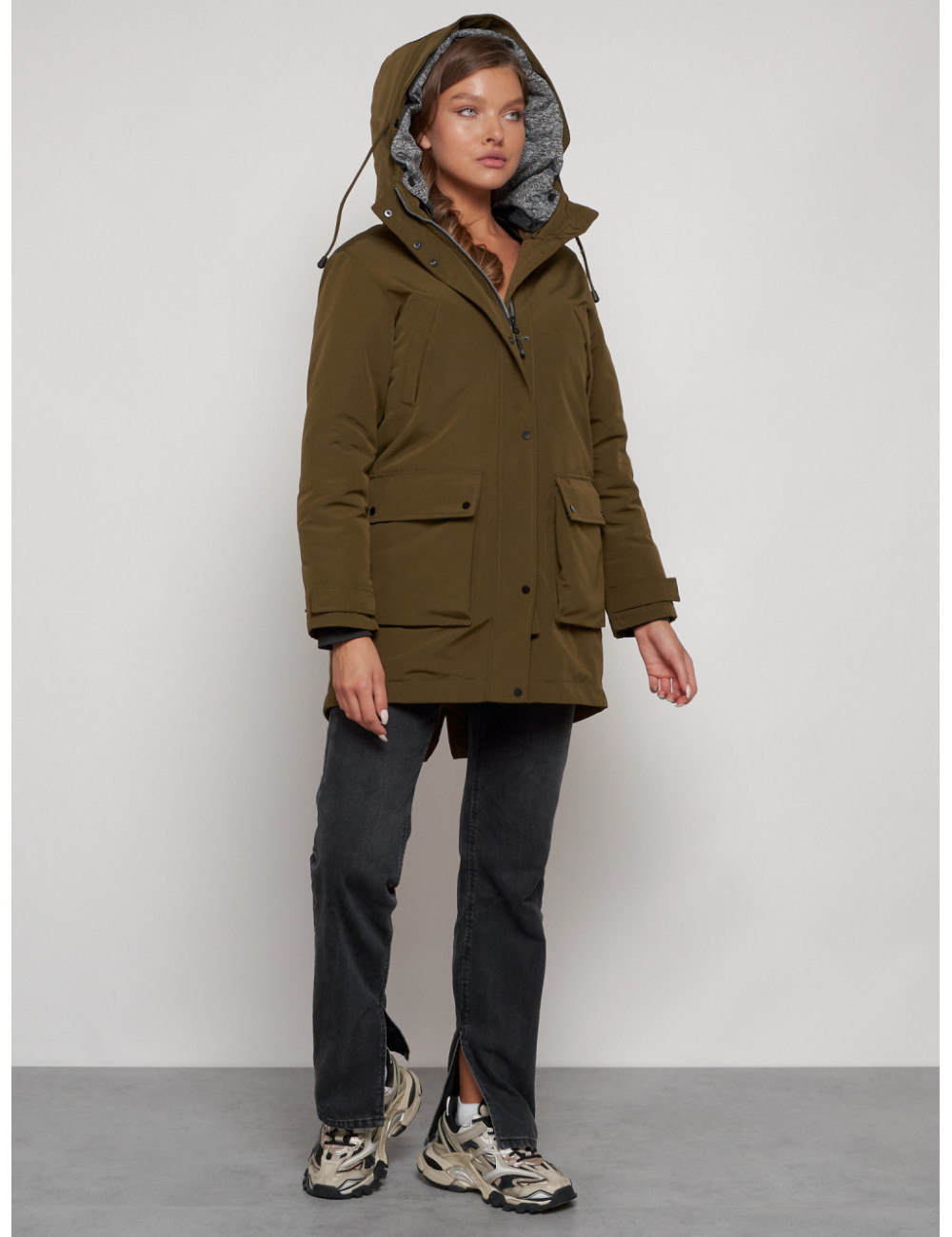 Доставка Женская зимняя парка с капюшоном, хаки, для активного отдыха. по Тюмени и Тюменской области СДЭК