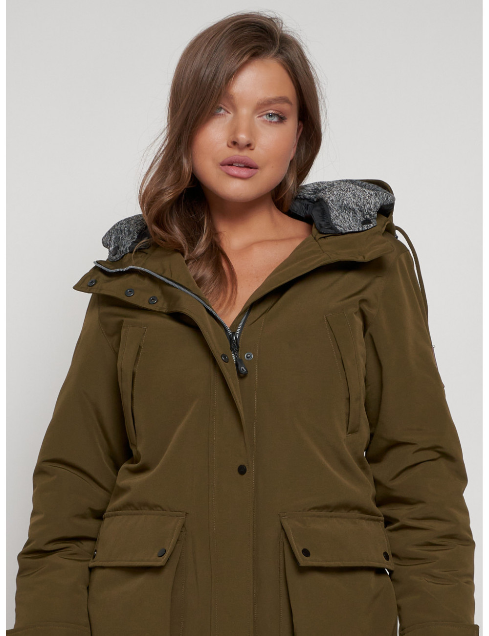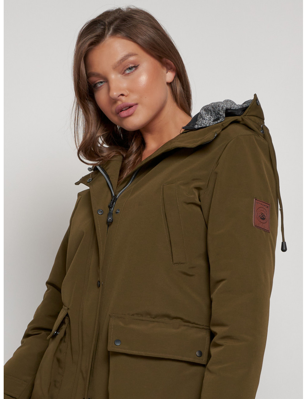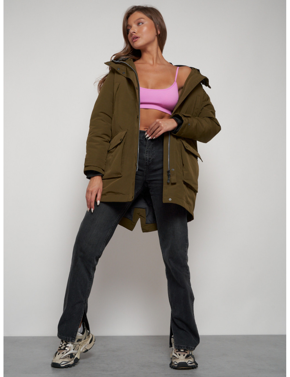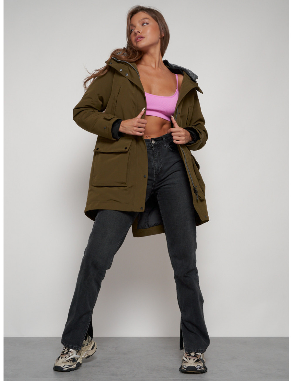 Доставка Женская зимняя парка с капюшоном, хаки, для активного отдыха. по Тюмени и Тюменской области СДЭК
