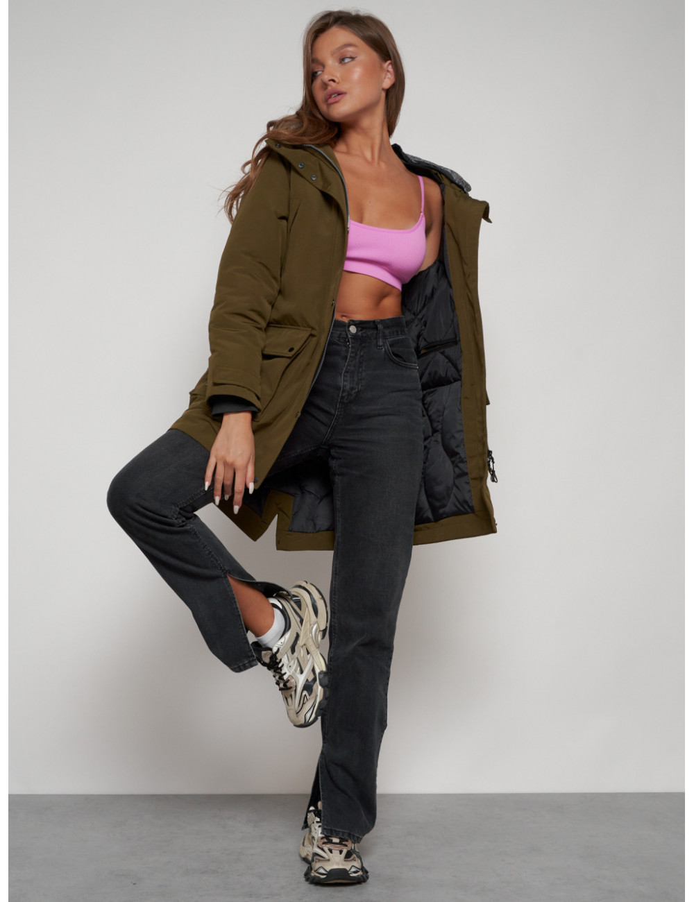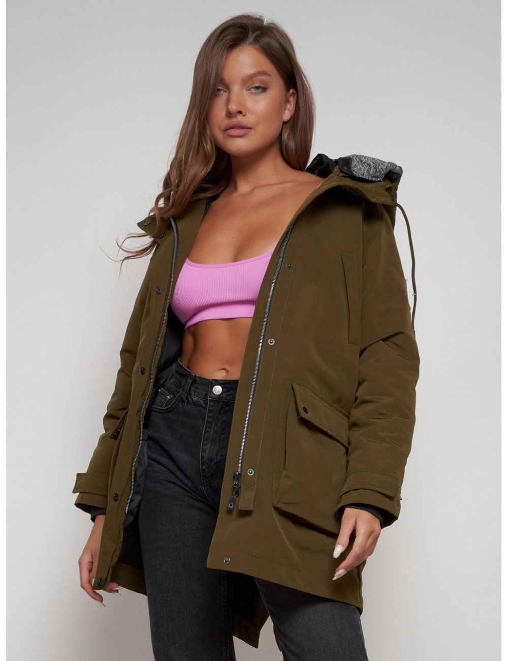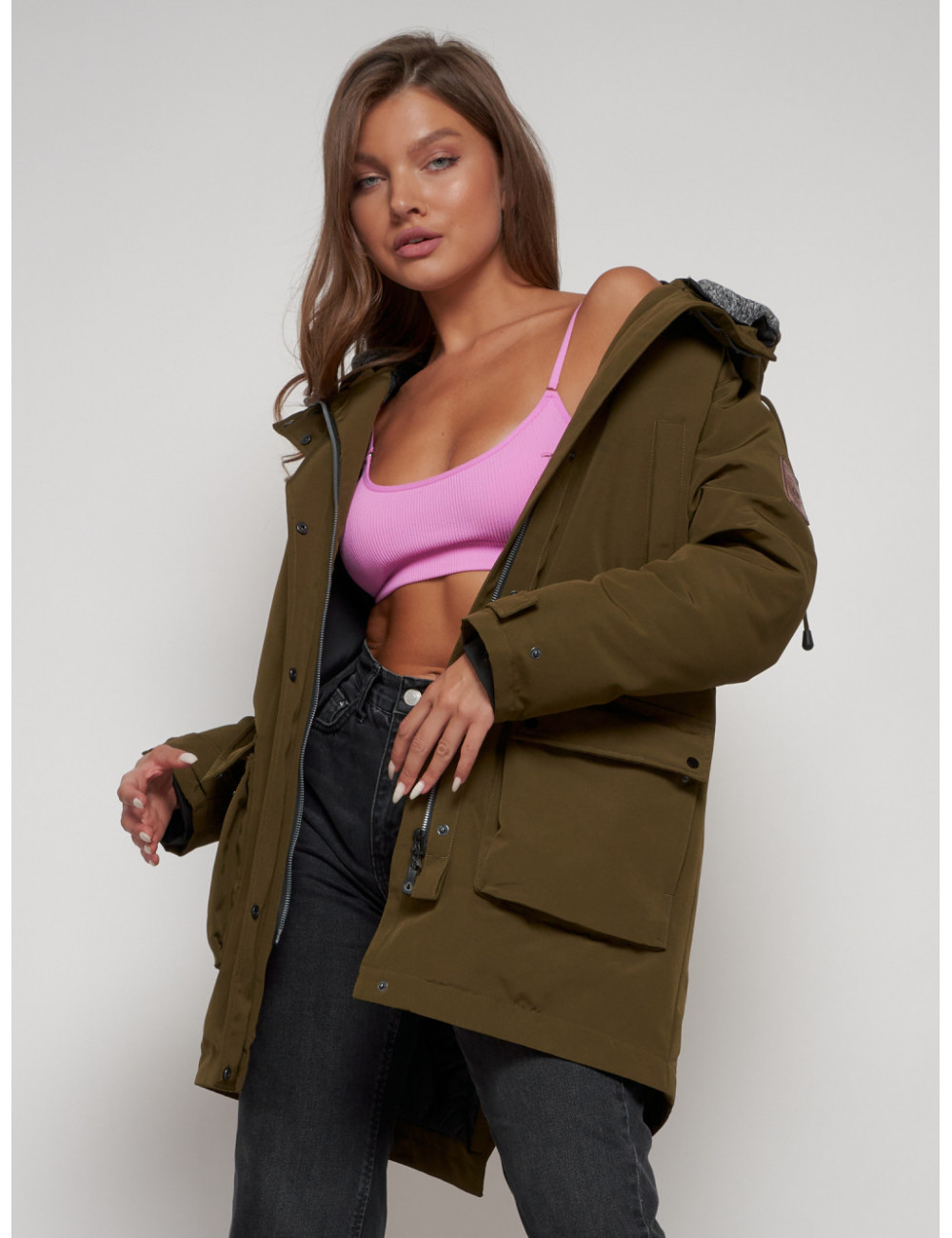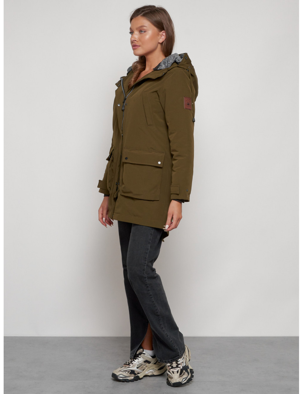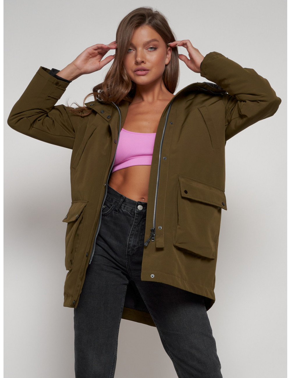 Доставка Женская зимняя парка с капюшоном, хаки, для активного отдыха. по Тюмени и Тюменской области СДЭК