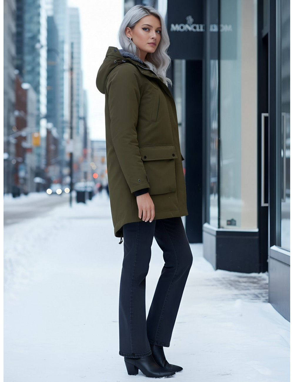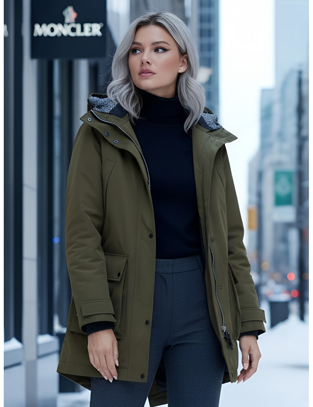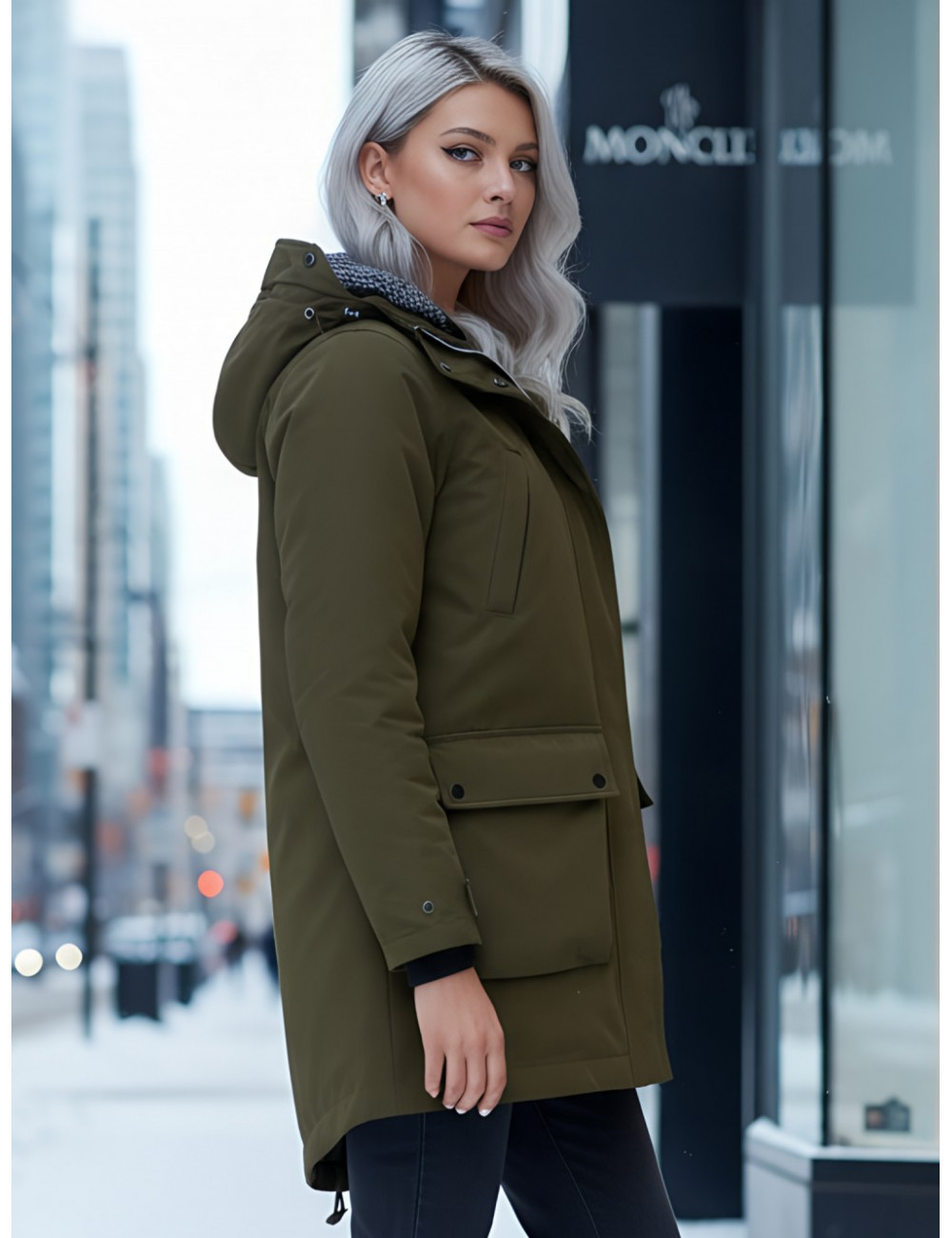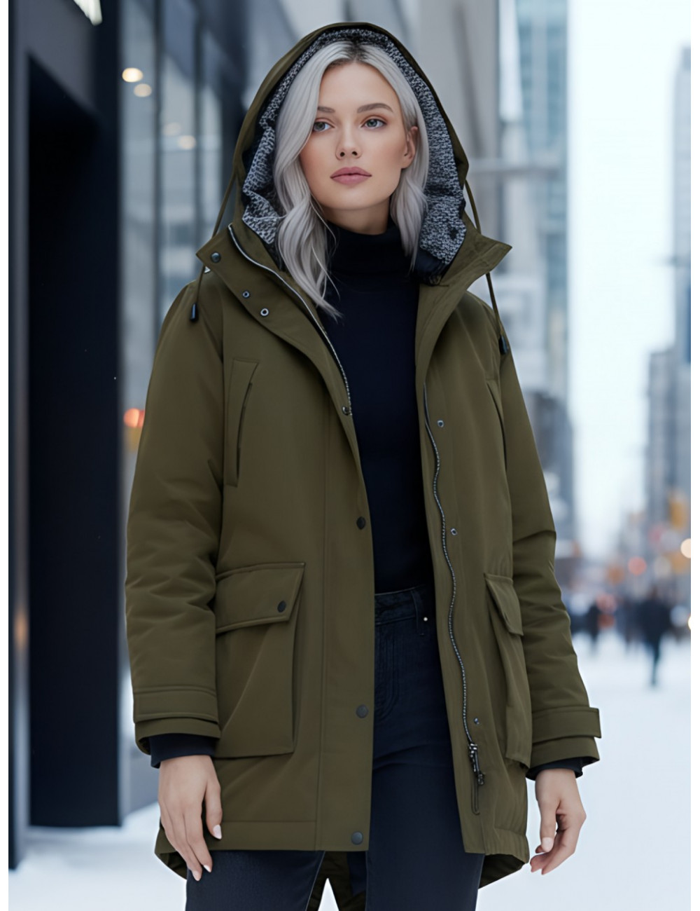 Доставка Женская зимняя парка с капюшоном, хаки, для активного отдыха. по Тюмени и Тюменской области СДЭК