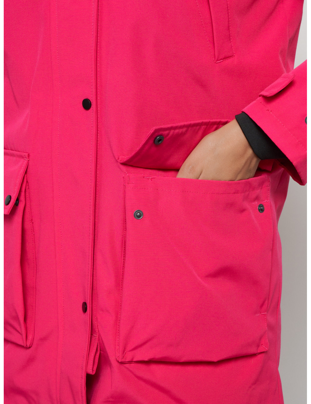 - Множество карманов. Парка оснащена девятью карманами — прорезными, накладными и внутренним карманом на молнии для хранения мелочей.