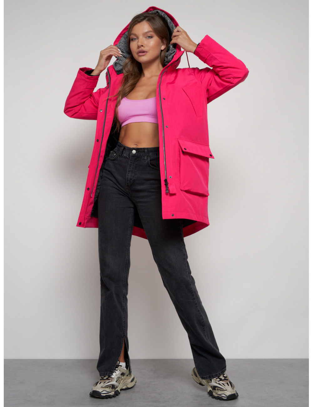 Доставка Женская зимняя парка с капюшоном, розовая, для прогулок. по Тюмени и Тюменской области СДЭК