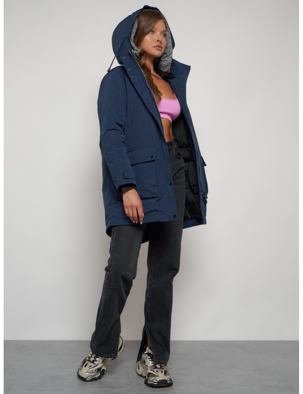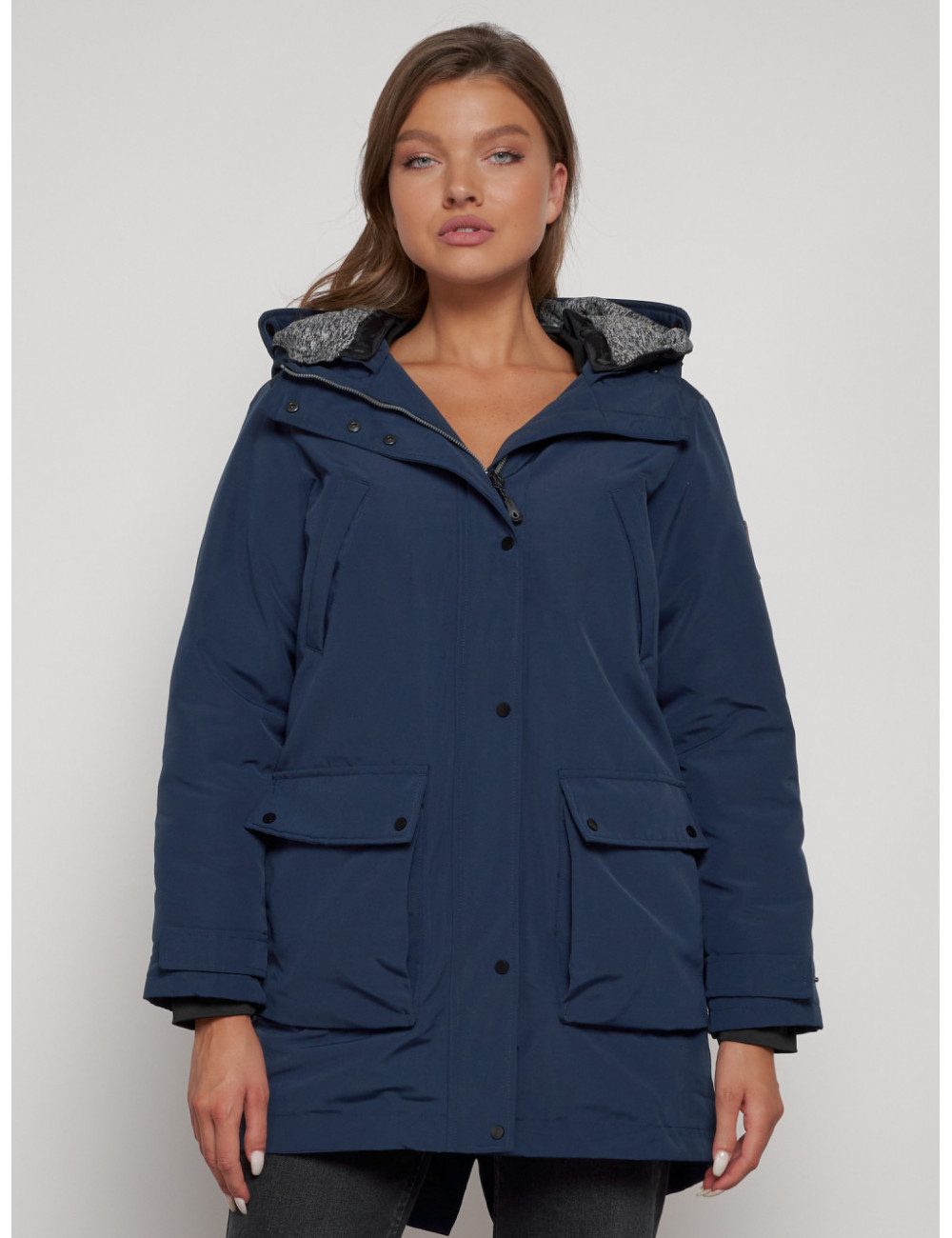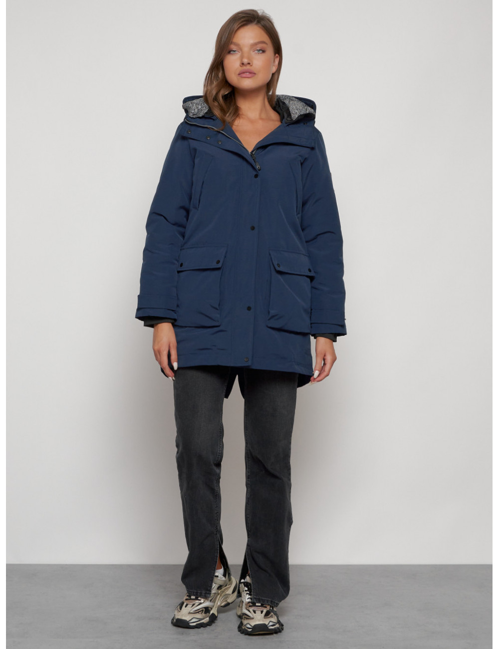 Купить за 15792 ₽ в Тюмени Женская зимняя парка с капюшоном, синяя Парка зимняя женская