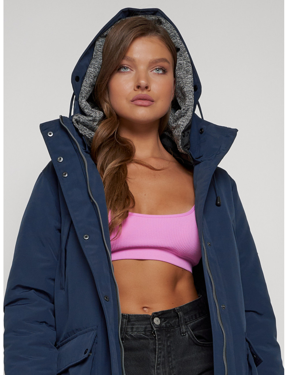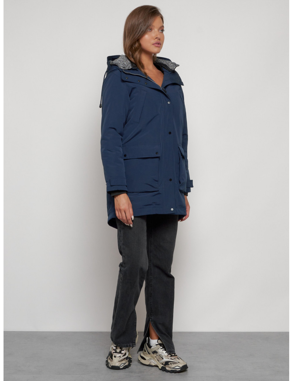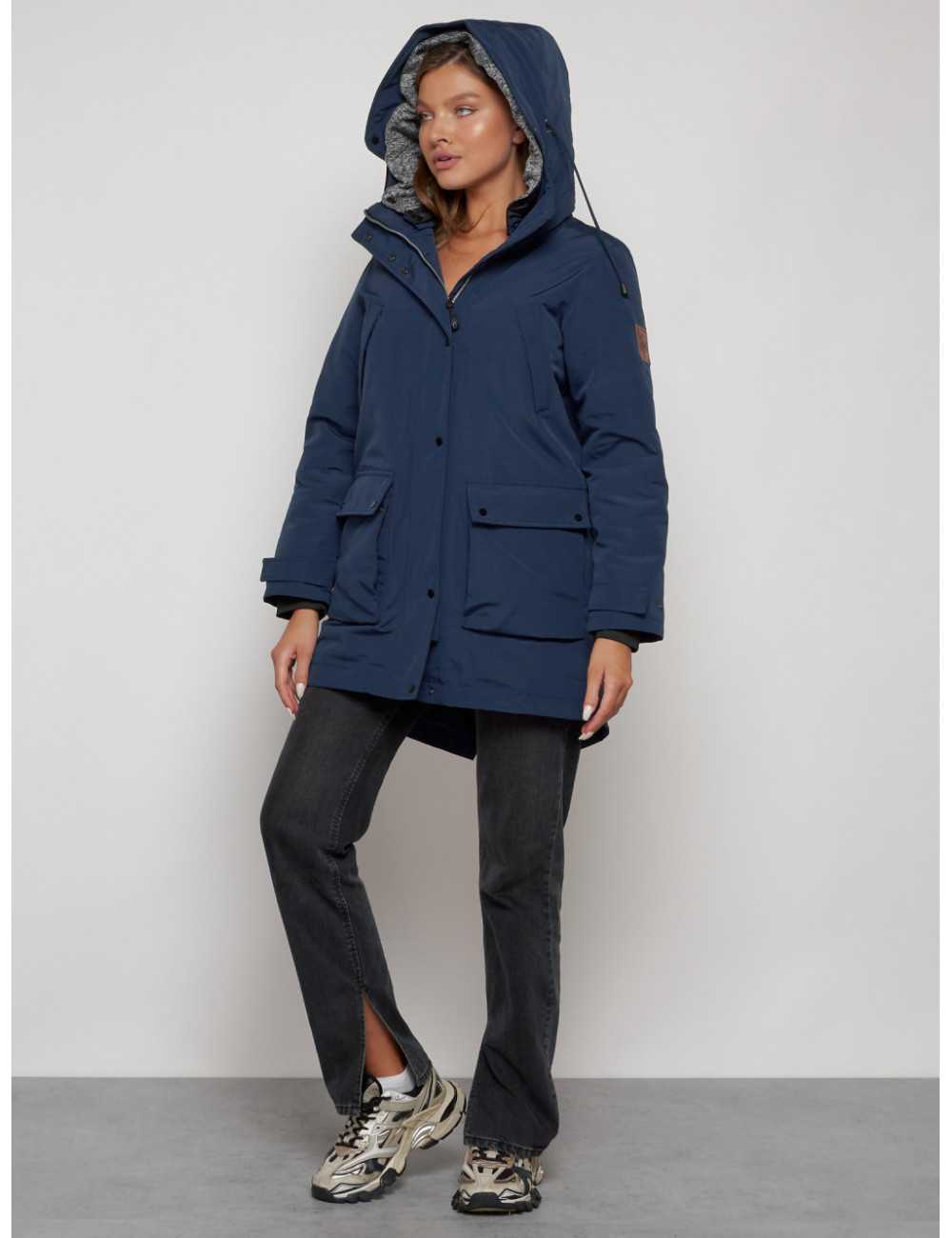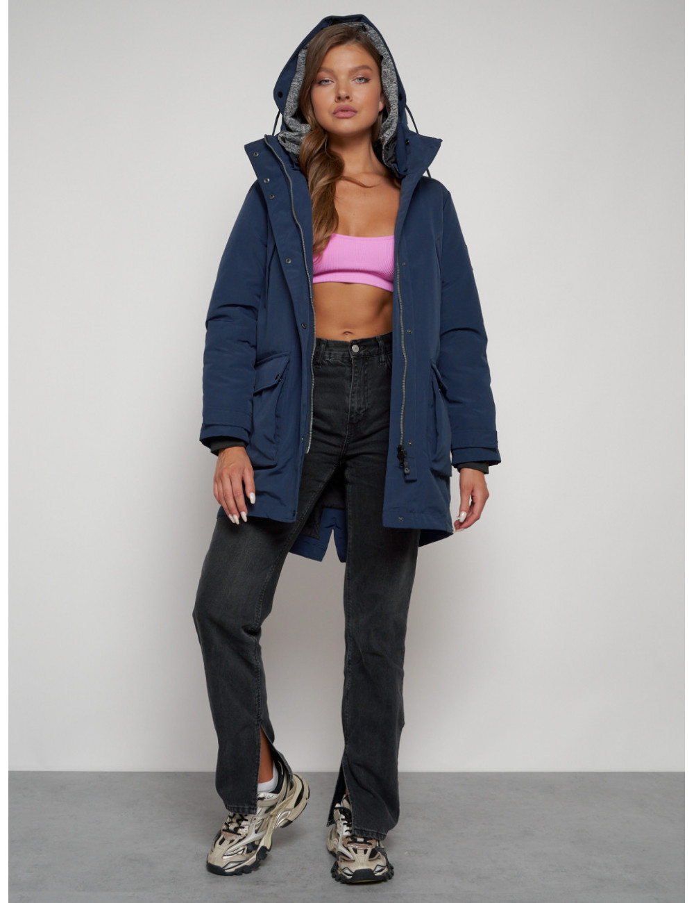 Купить за 15792 ₽ в Тюмени Женская зимняя парка с капюшоном, синяя Парка зимняя женская
