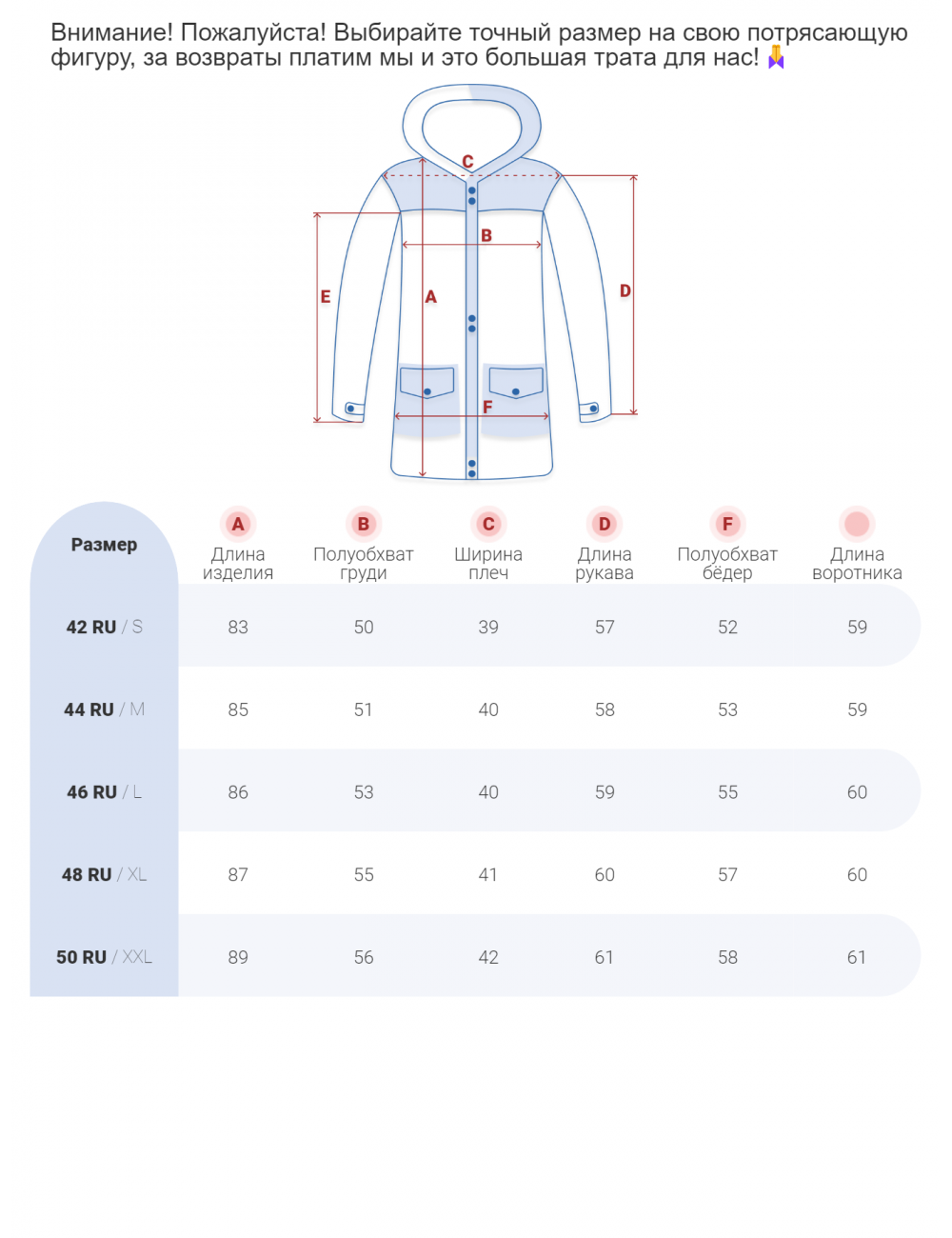 Технические характеристики Женская зимняя парка с капюшоном, синяя