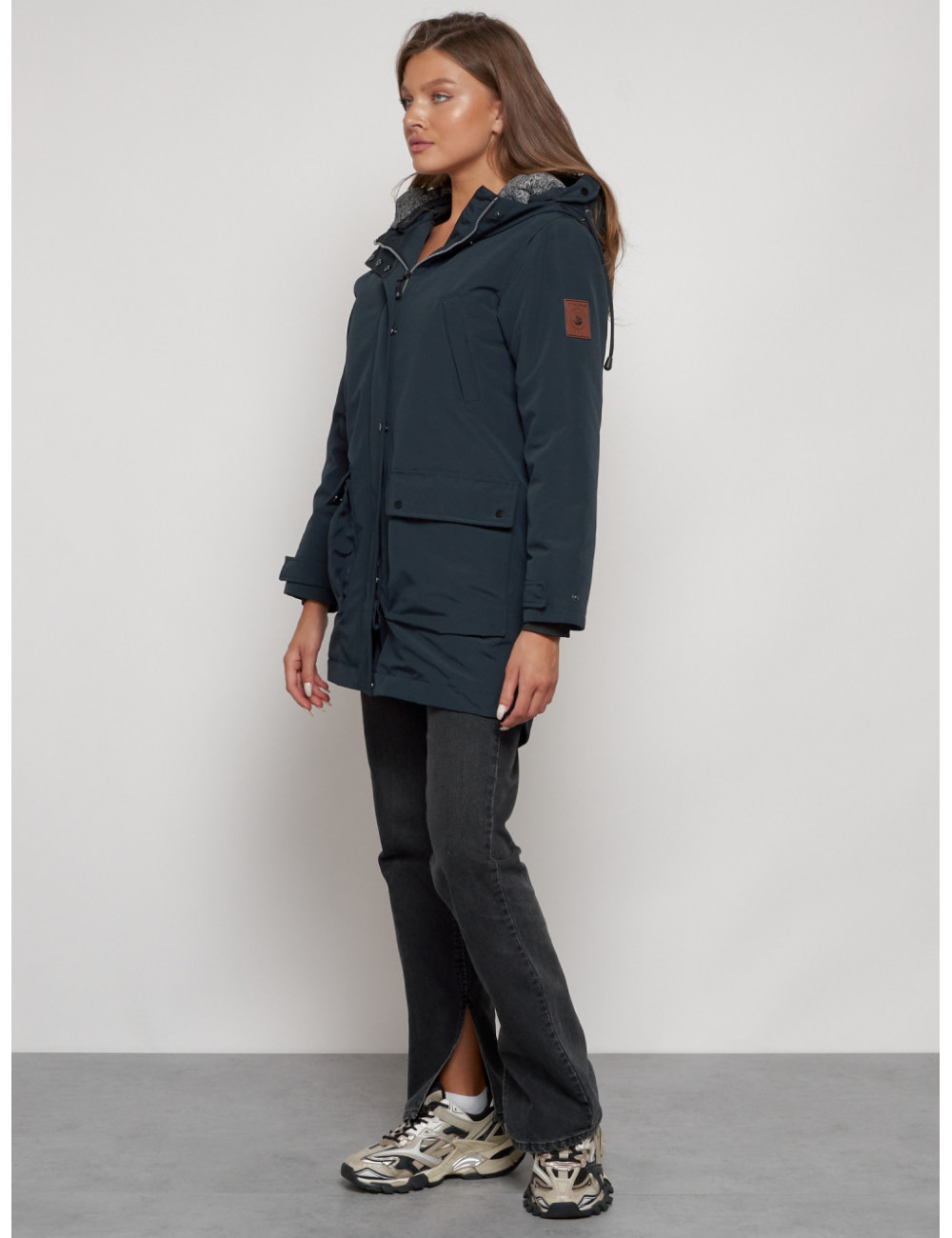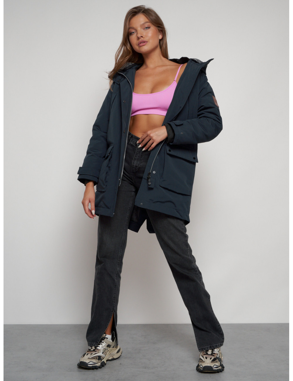 Женская зимняя парка с капюшоном, тёмно-синяя