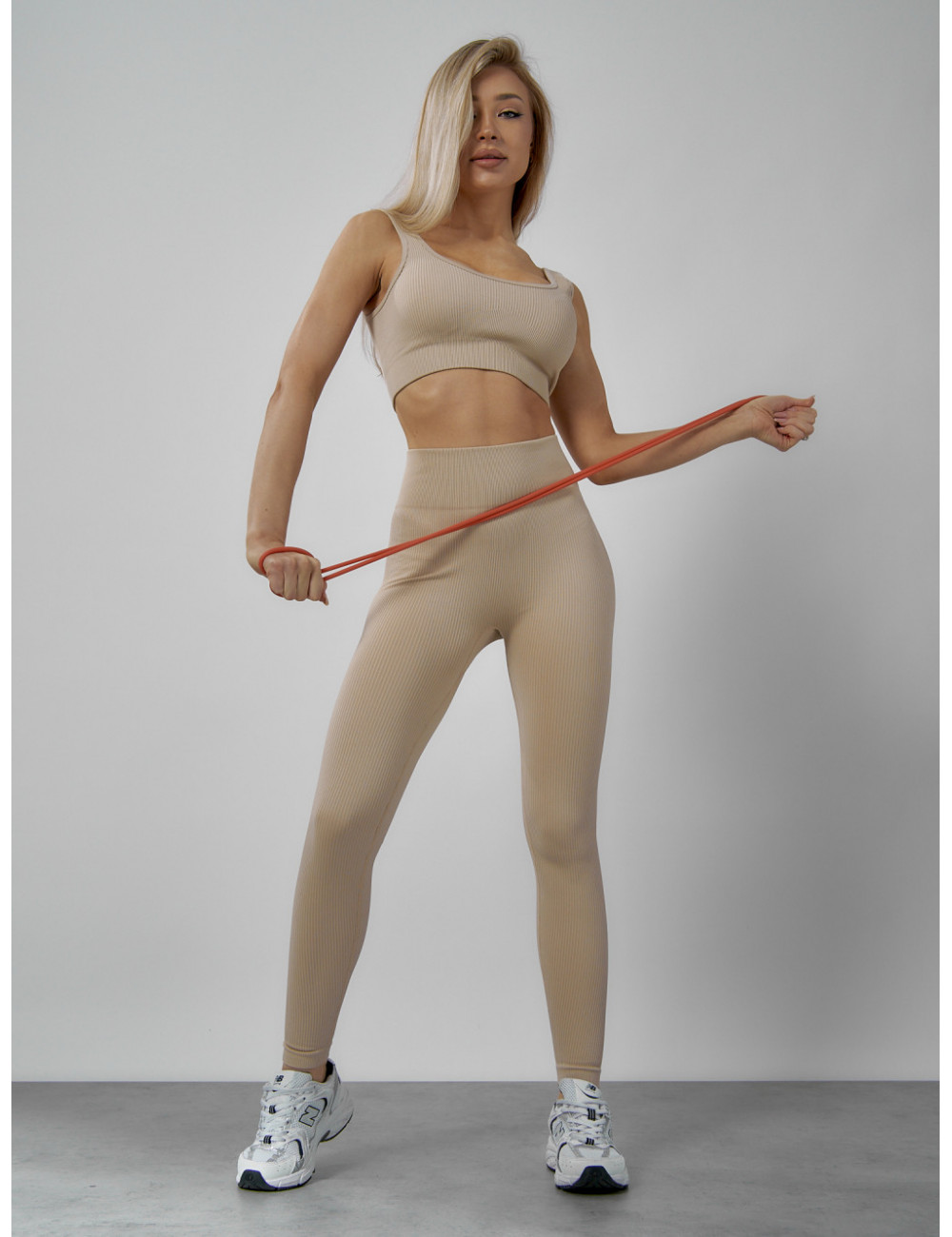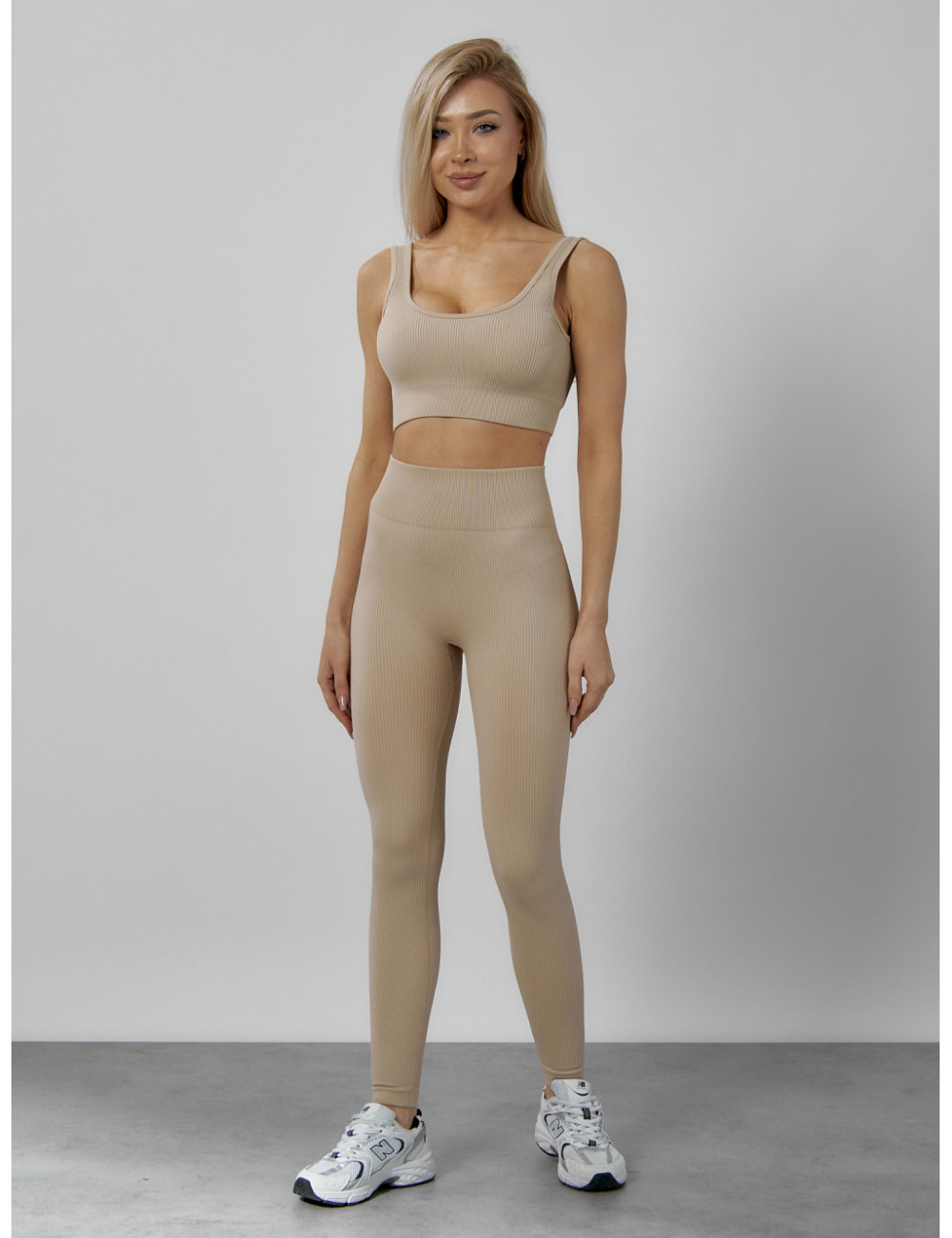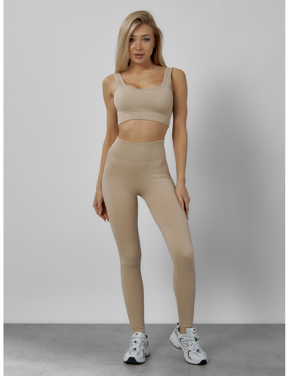 Костюм можно сочетать с различными аксессуарами, например, с фитнес-банданами, повязками на голову или спортивными сумками. Он будет отлично смотреться как с кроссовками, так и с лёгкими кедами. Доставка по Москве и Московской области Женский спортивный костюм для фитнеса бежевый
