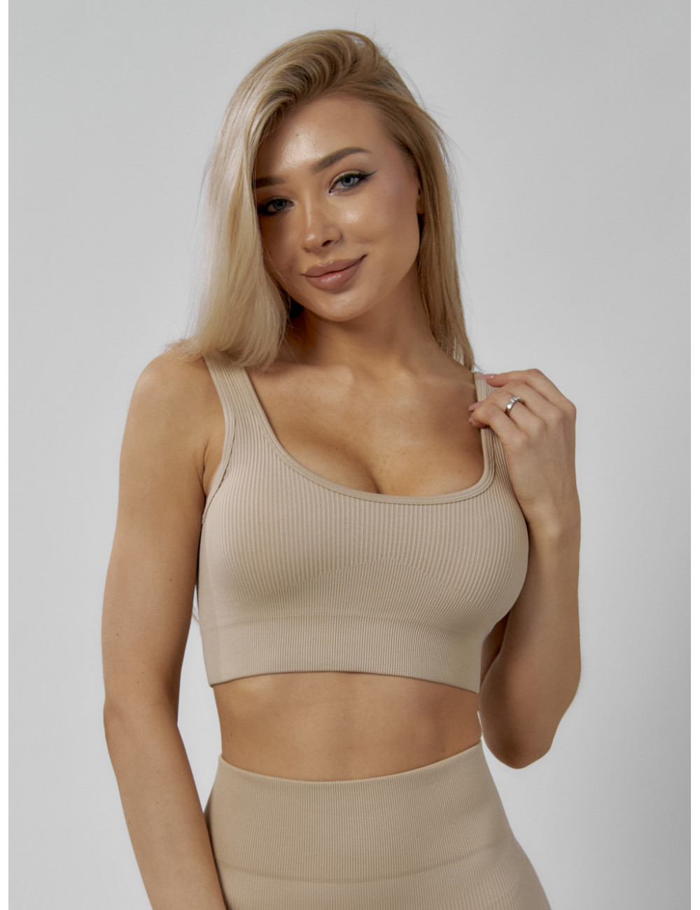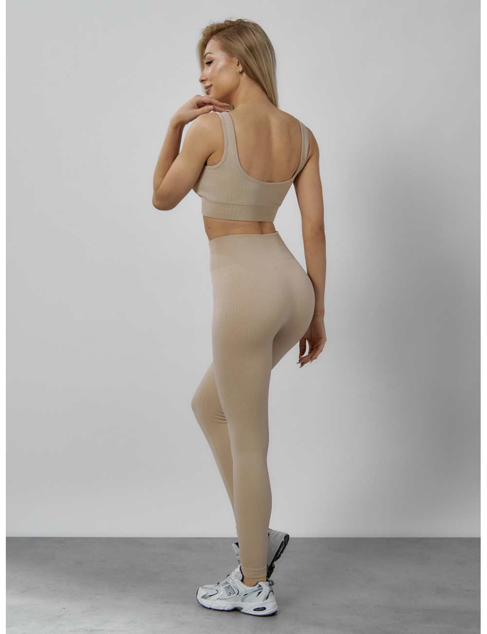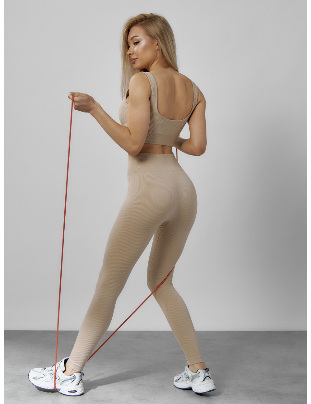 Костюм можно сочетать с различными аксессуарами, например, с фитнес-банданами, повязками на голову или спортивными сумками. Он будет отлично смотреться как с кроссовками, так и с лёгкими кедами. Доставка по Москве и Московской области Женский спортивный костюм для фитнеса бежевый