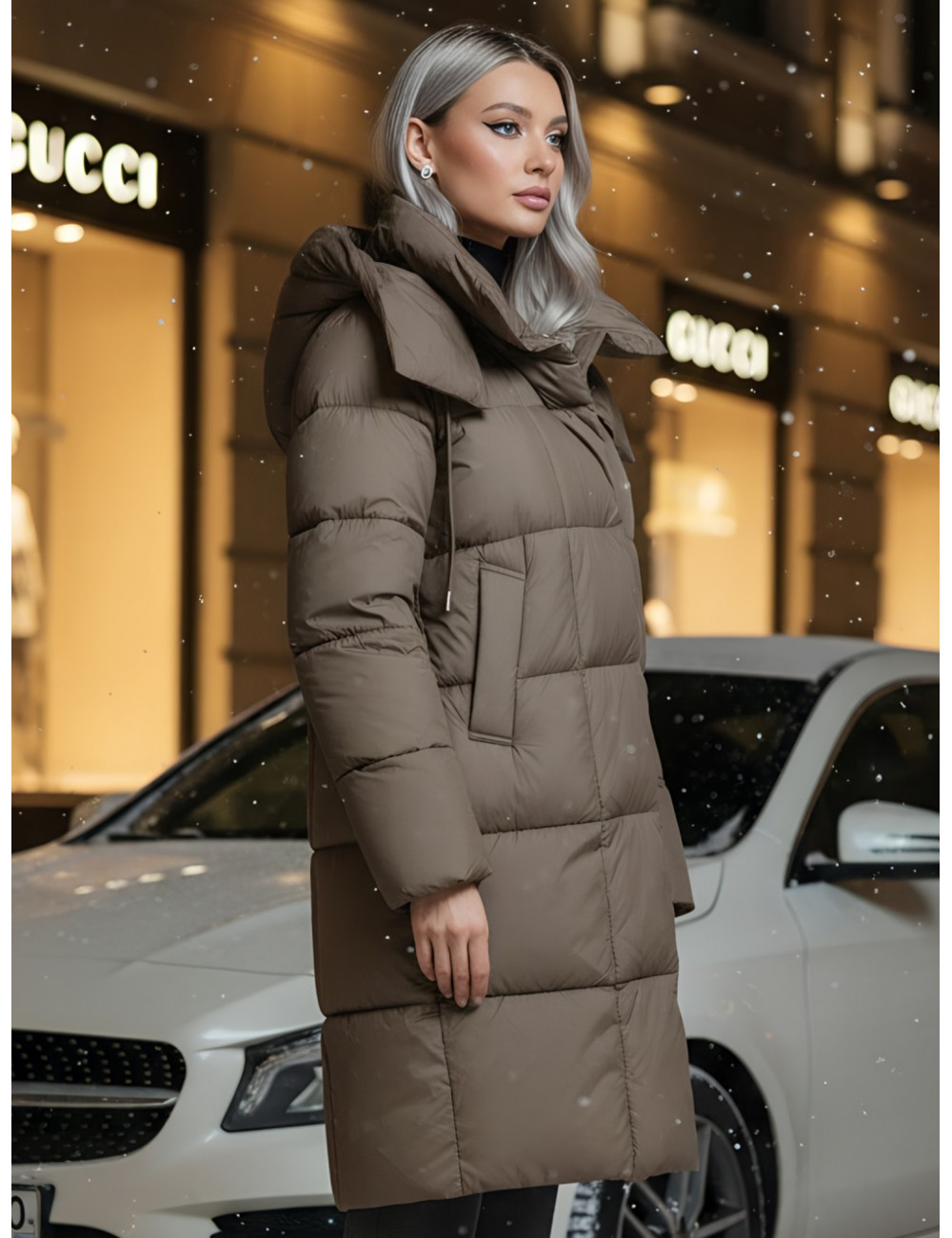Пуховик от Ketsi — это стильный и практичный выбор для зимы. Он станет вашим надёжным спутником в холодные дни. Доставка Длинный пуховик женский утеплённый с капюшоном коричневый по Тюмени и Тюменской области СДЭК