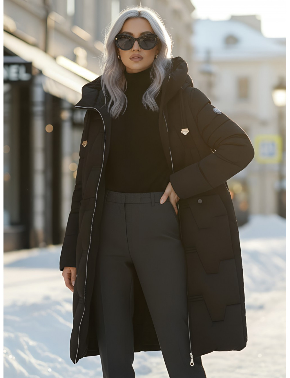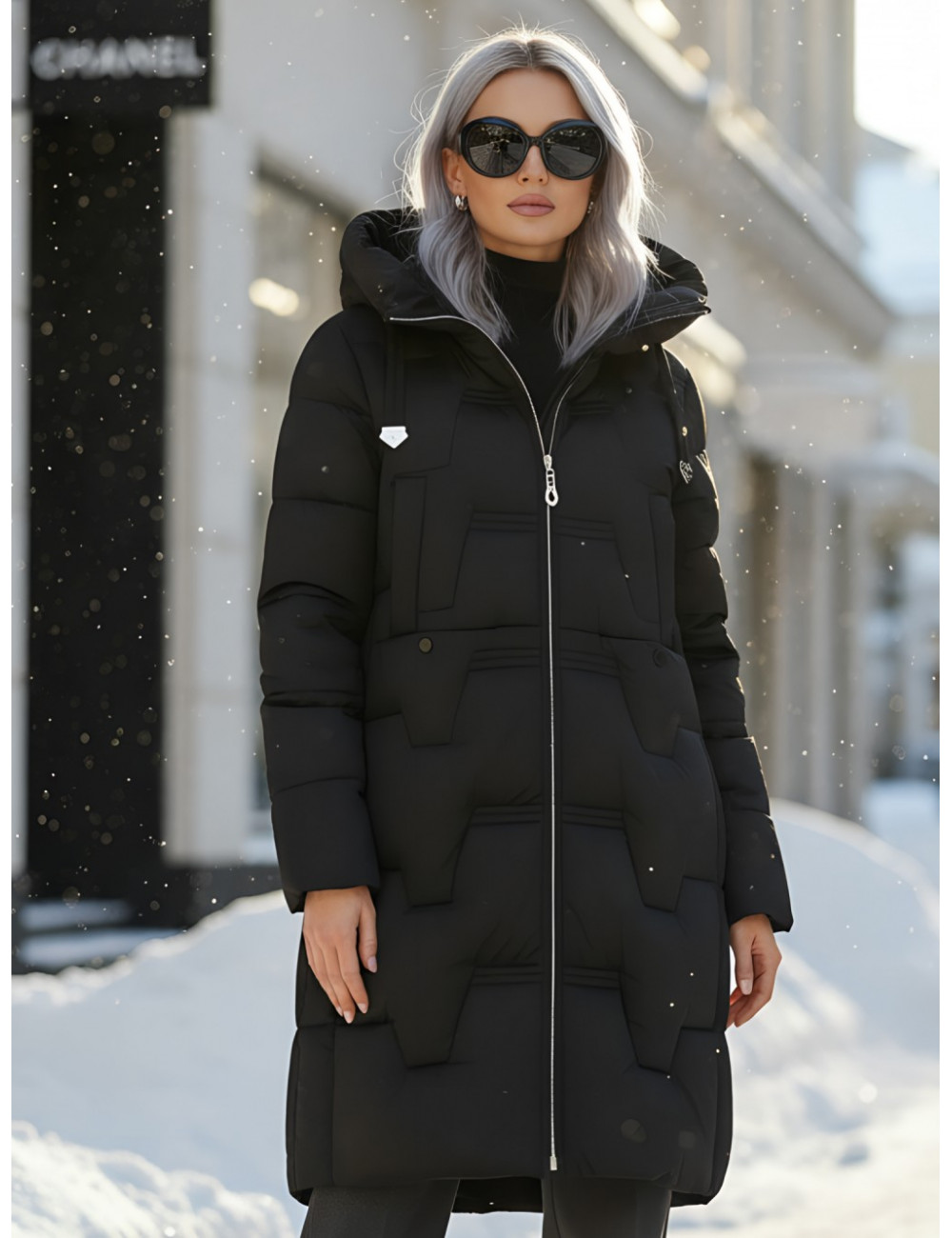 Не упустите шанс добавить в свой гардероб это прекрасное утеплённое пальто от Ketsi! Доставка Длинный женский пуховик с капюшоном, чёрный. по Тюмени и Тюменской области СДЭК