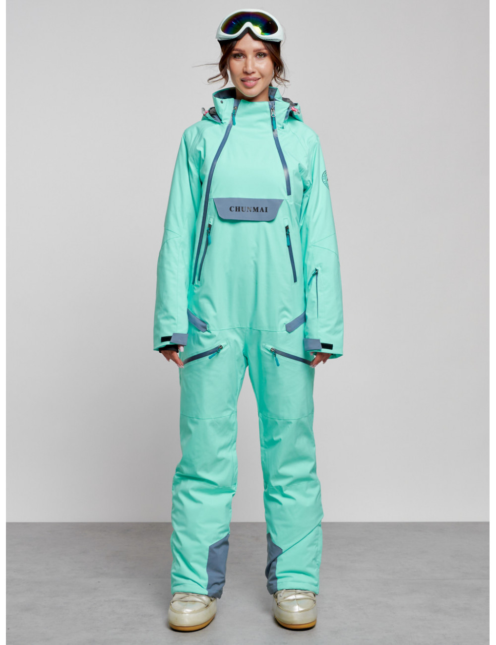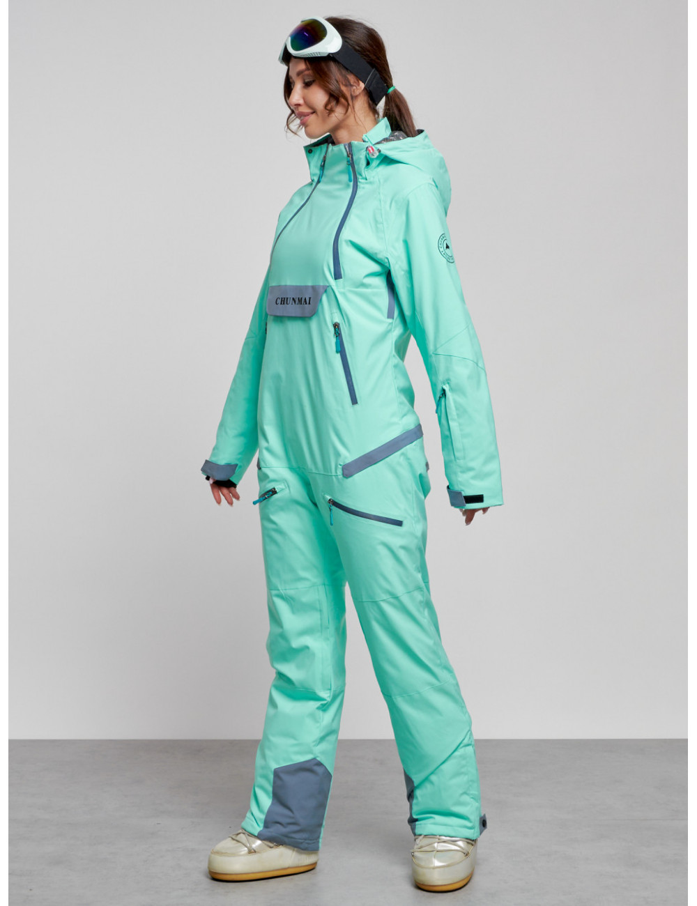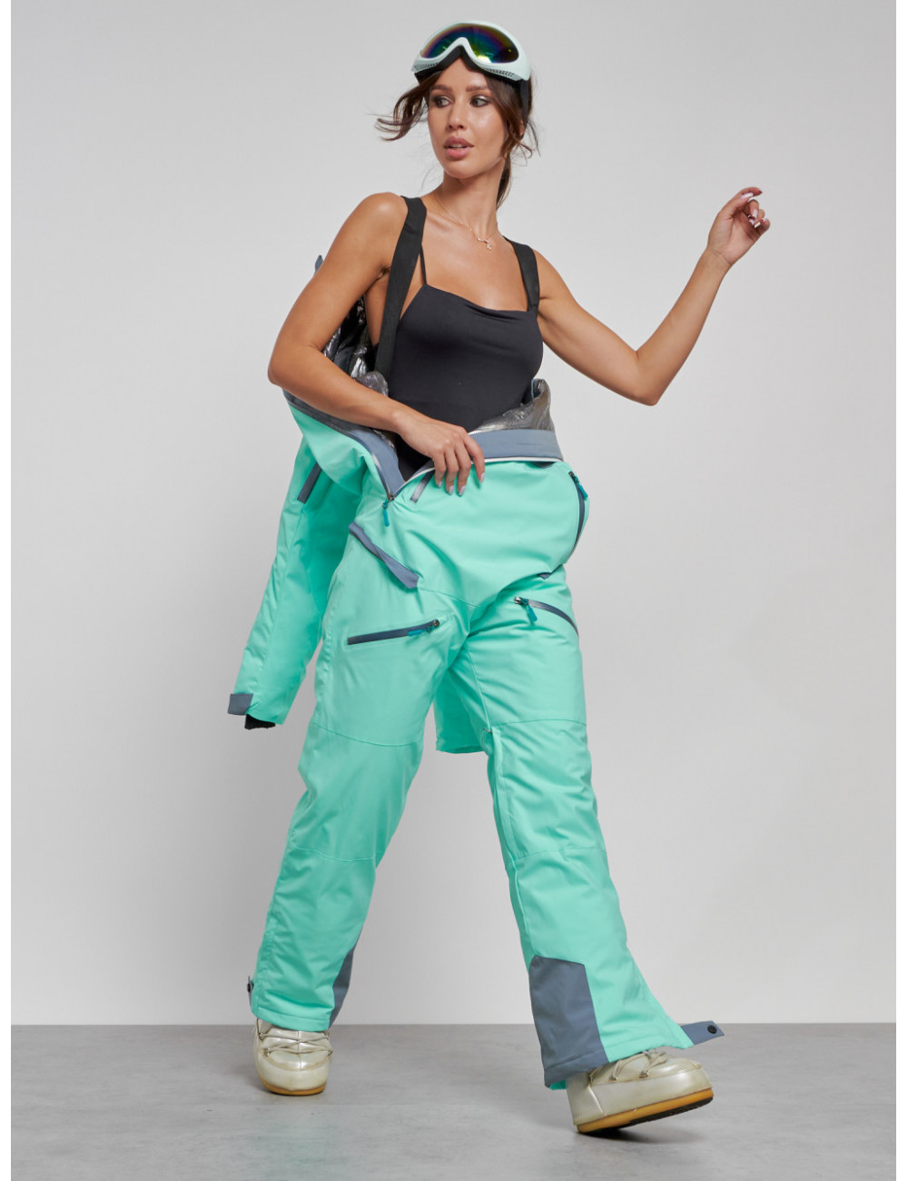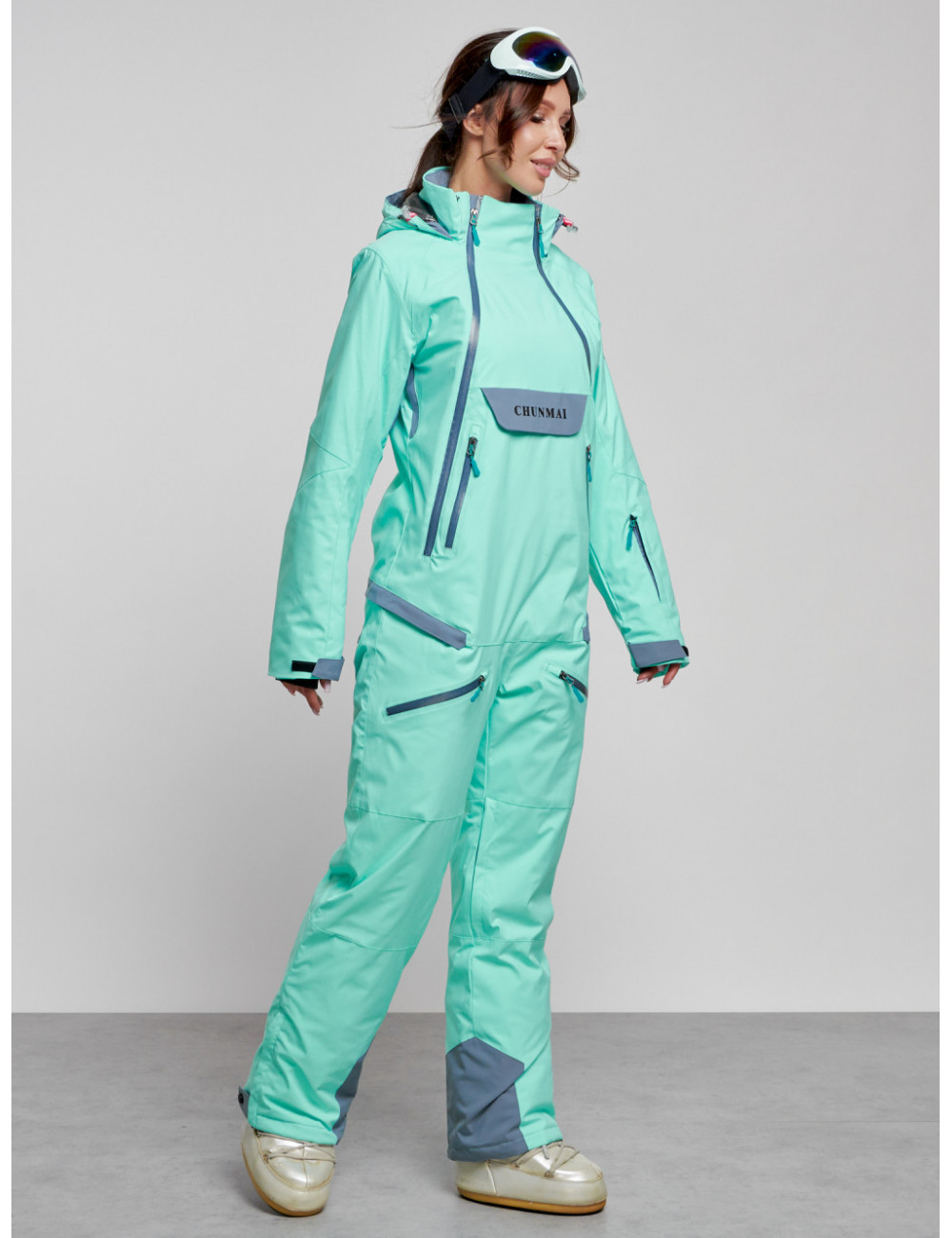 Не упустите возможность приобрести стильный и тёплый женский комбинезон для зимнего активного отдыха. Наслаждайтесь зимними развлечениями и прогулками в полной мере! Доставка по Москве и Московской области Женский горнолыжный комбинезон бирюзового цвета
