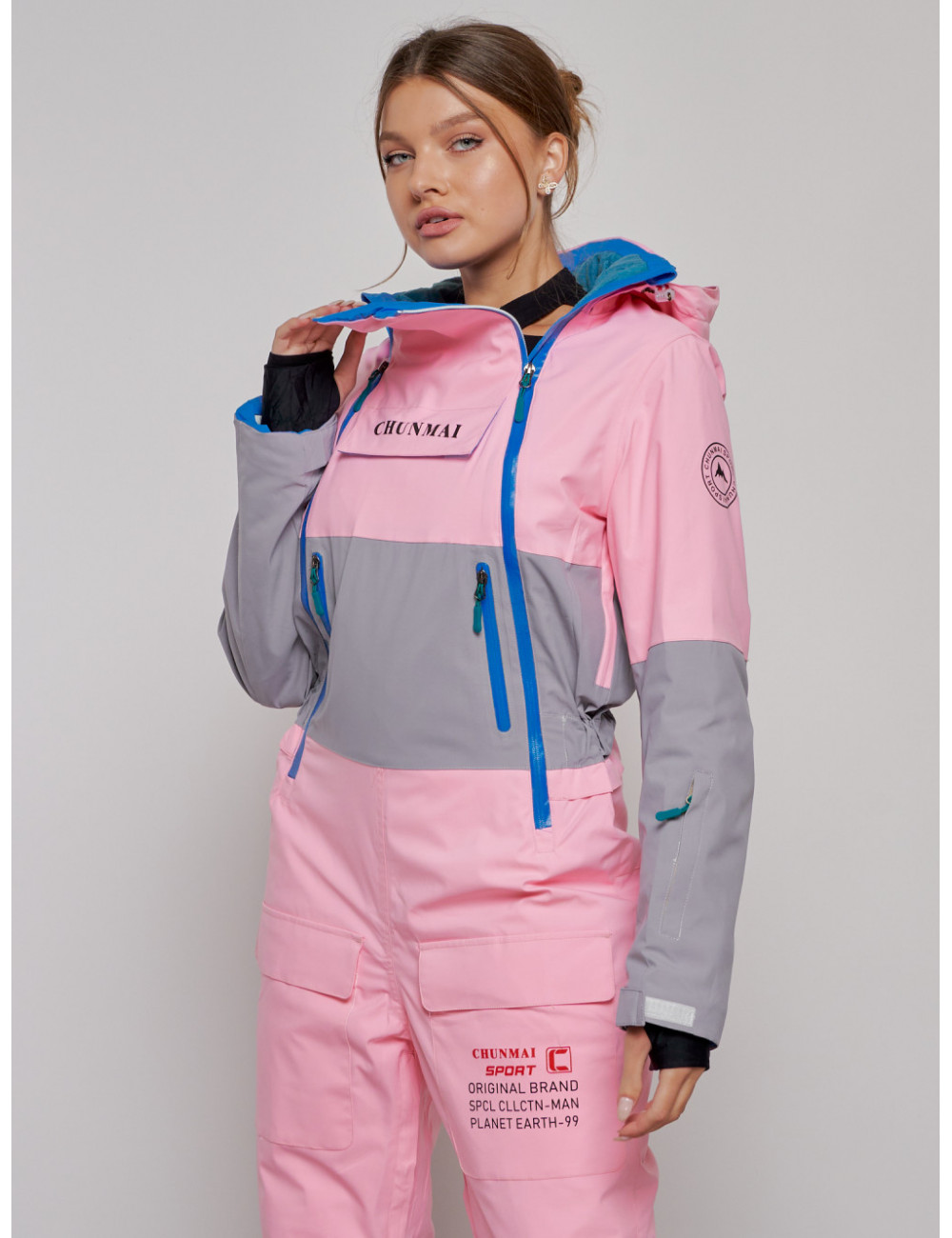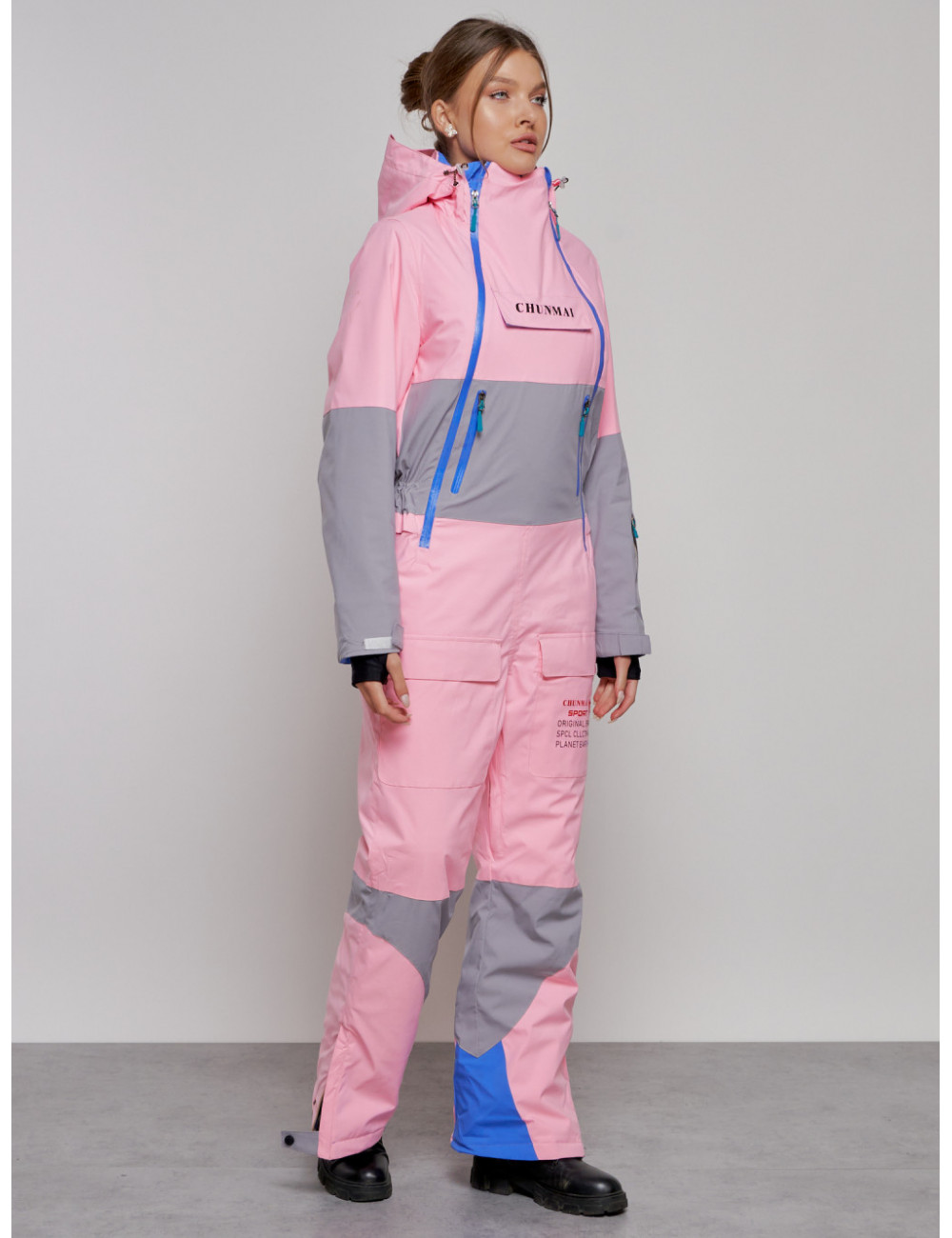 Практичный тёмный цвет делает комбинезон подходящим для частого использования. Наслаждайтесь зимними активностями, не переживая о погодных условиях! Доставка по Москве и Московской области Женский горнолыжный комбинезон розовый зимний