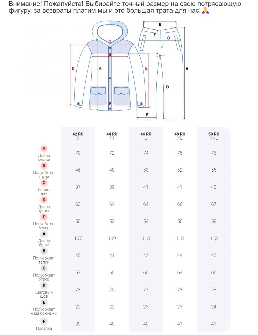 | Фиксаторы | На капюшоне, по низу куртки, на рукавах, в поясе, по низу брюк |