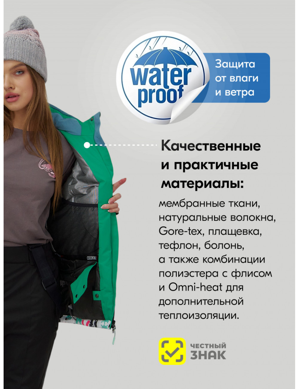 - Водоотталкивающая пропитка и водонепроницаемая мембрана защитят вас от мокрого снега и ледяного дождя.